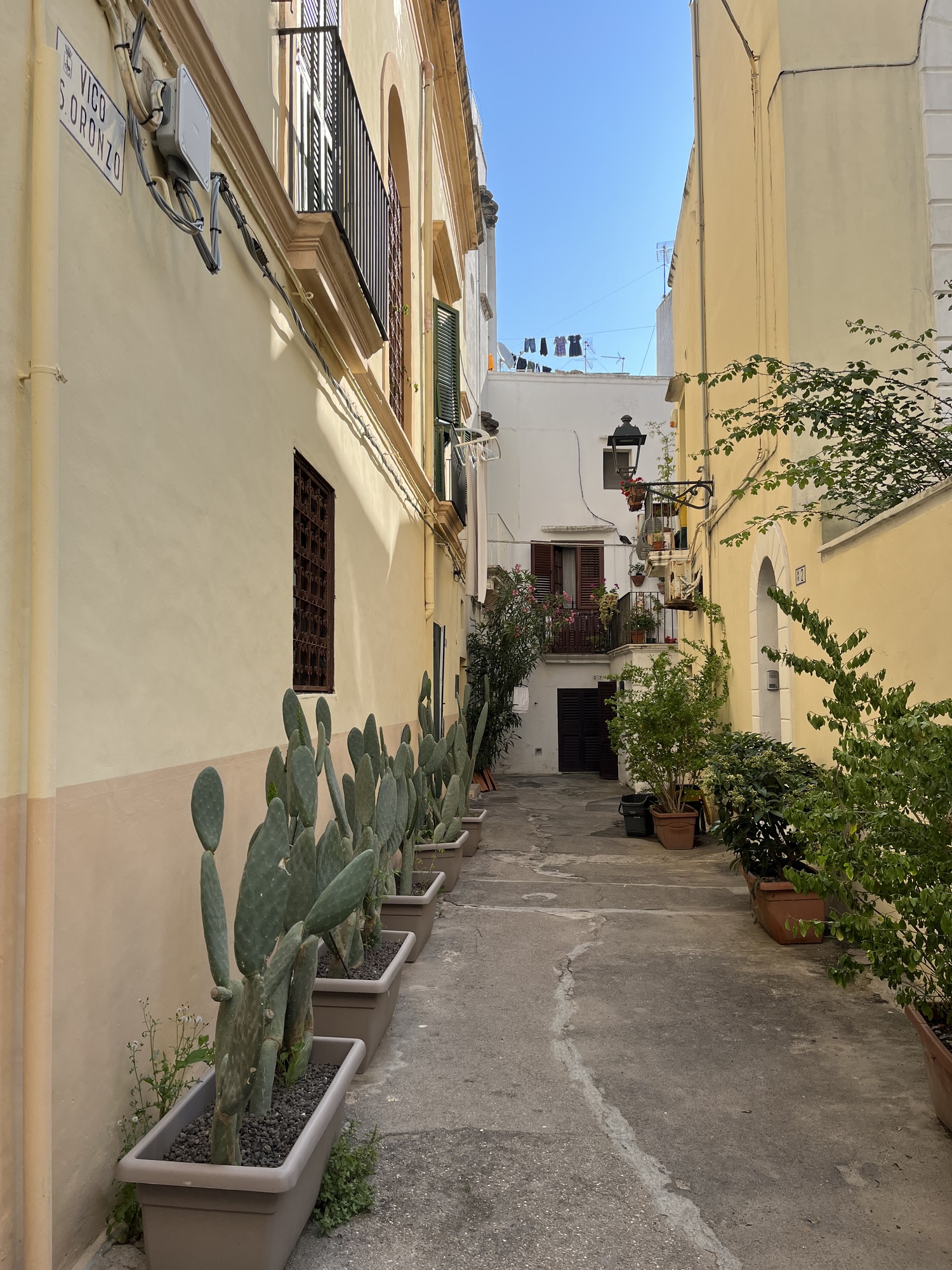 We struck up a conversation with a couple from Bergamo when I ordered some hot milk for my cereal. Mauro and Katrina spoke English and caught my error in time, explaining that latte caldo is hot milk and freddo is probably what I wanted. They are exploring Puglia on bikes too. We would meet up with them later on in the day.