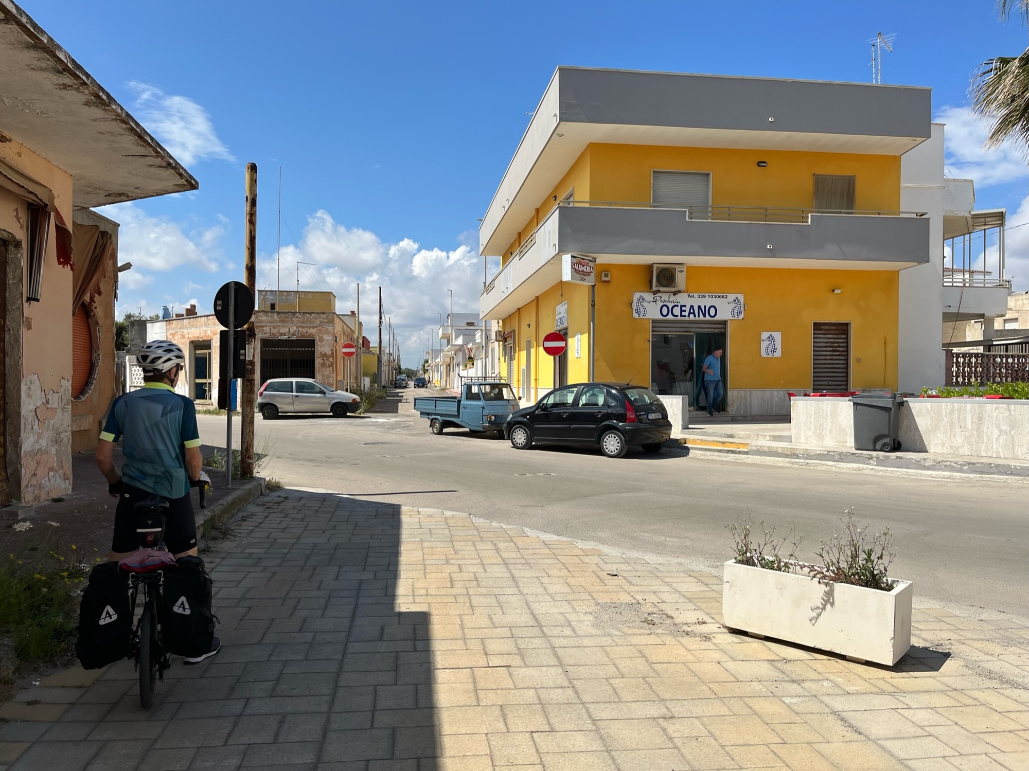 We had little difficulty getting out of Lecche and were soon on a small highway headed east to the Adriatic coast, which meant we were riding directly into a easterly headwind. We knew it would be actively in our faces for two-thirds of the ride today (any wind that is not coming from the rear feels like a headwind). It was nothing too severe, however.