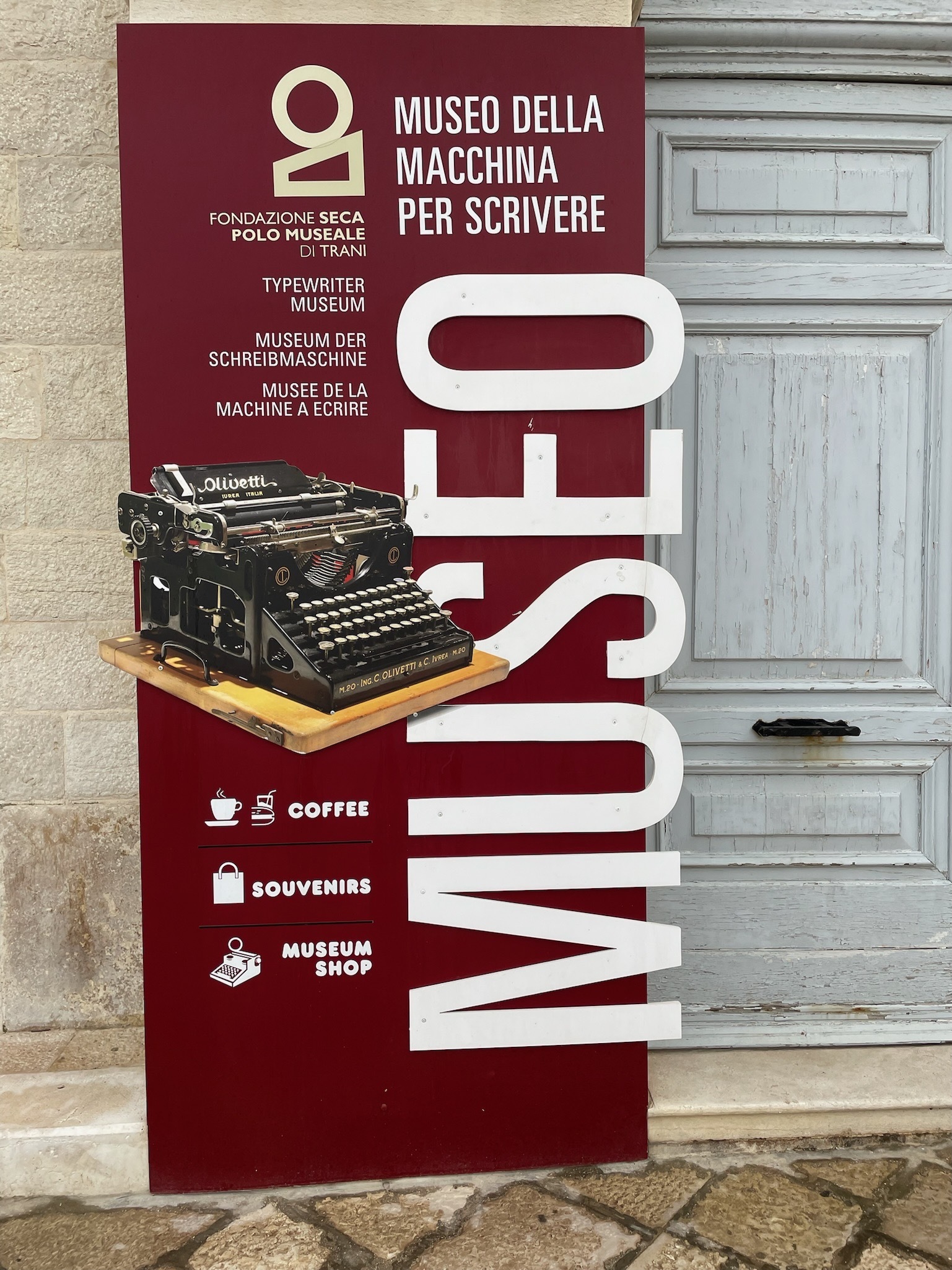 I was surprised to find a typewriter museum next to the church. Unfortunately it was closed, but I would have liked to see it. Little did I know how Italian inventions had seeped into our lives all those decades ago. I can remember plunking away on our typewriter when I was a tike and the clanging of keys from the typing classes in high school. And, who can forget the ‘ding’ every time they did a carriage return?