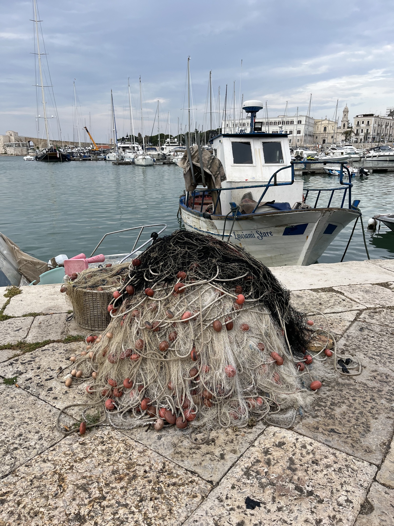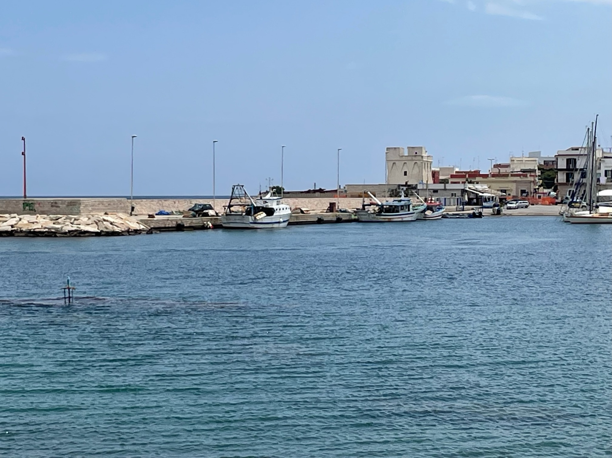 You always know when you are near a fish market and in this part of Italy, they are quite common. Fresh fish and seafood in general are staples. We passed a particularly large market on the outskirts of Bari. The boats in a marina next to the market.