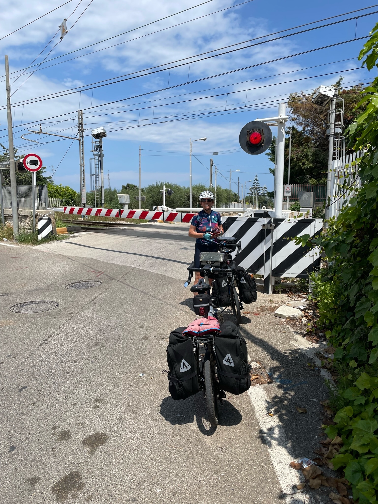 The ride through this area was a means to an end. It was a route that hugged the coastline and eventually went to Trani. Along the way we had to navigate between two airports. Traffic became more frenetic at that point and soon after that, our route came to an end where it met a swampy creek. The proposed route merged onto a freeway which was impassable for bikes. Not would we attempt such a thing, anyway.