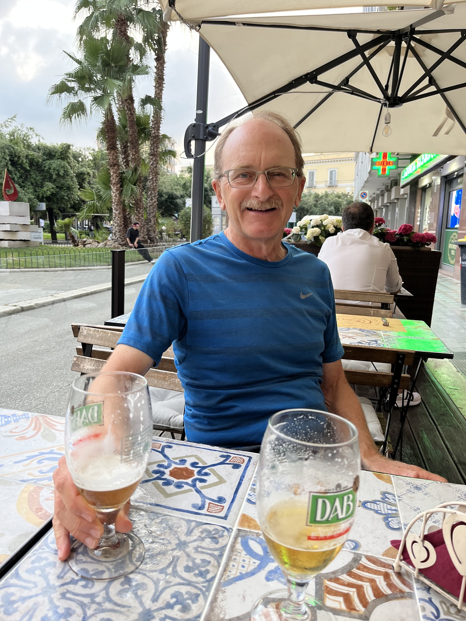 Restaurants don’t open until 8:00 in these parts unless there are a lot of tourists around. So, instead we spotted a nice bar to have a drink and pass some time people watching.