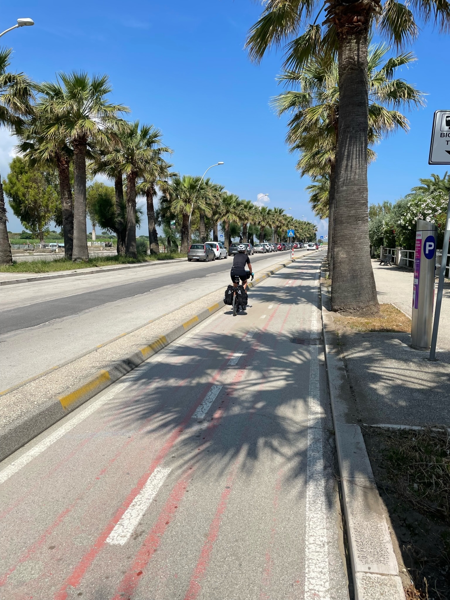 Today’s ride was more chilled than yesterday since we are out of the Bari area. The route hugged the coast all the way to Manfredonia, passing through a couple of small cities. The roadways were in good shape and the sun was shining. A light breeze from the northeast kept us comfortable.