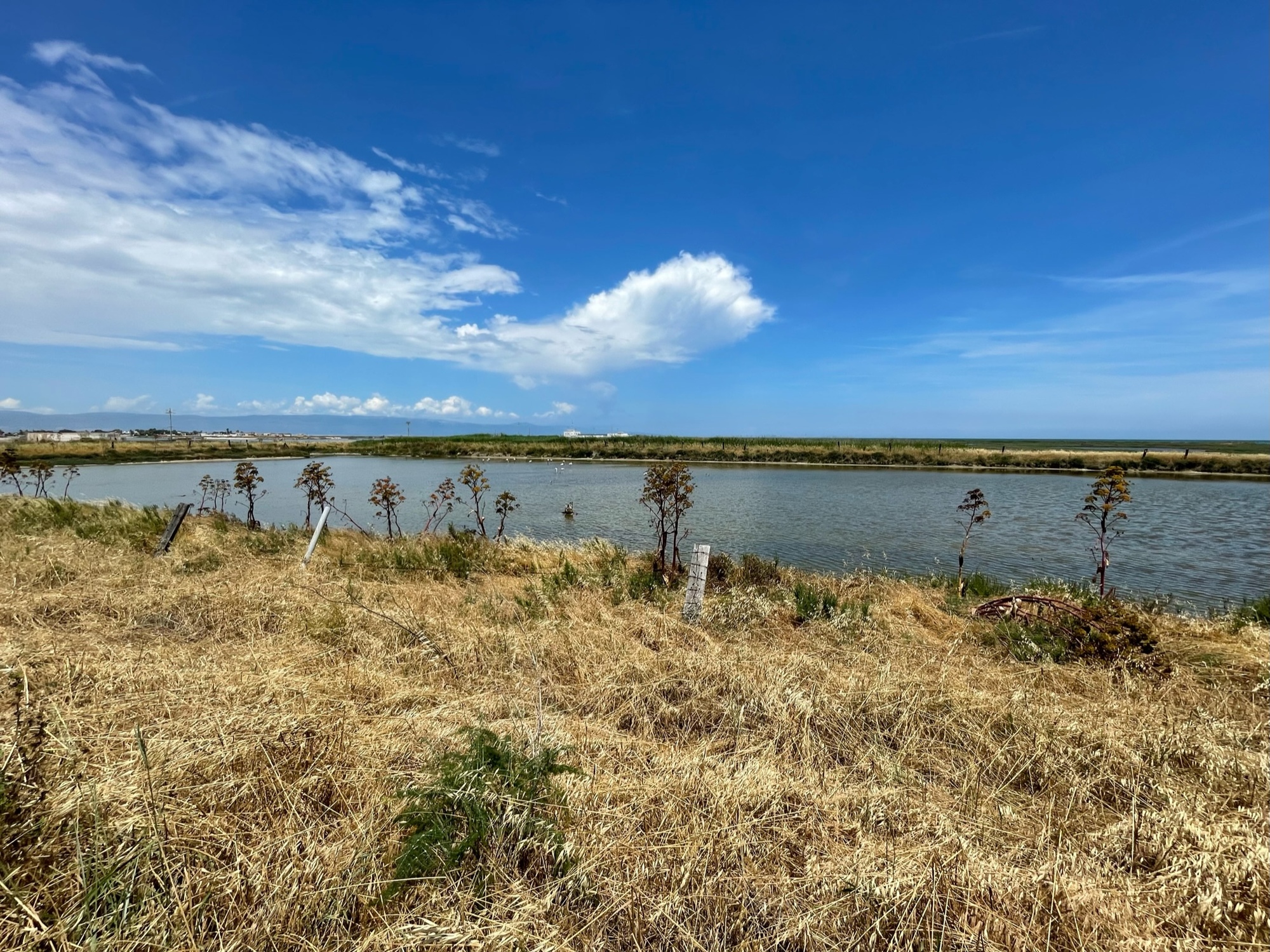 We had stopped to view the salt pans when a distinctive bird approached us. It seemed to take a lot of effort to fly but it circled toward us, then would retreat and land at a distance. Its legs hung out behind its skinny body and it really was not a great flyer. We suspect it was a black winged stilt and it had a nest somewhere nearby so we pushed on.