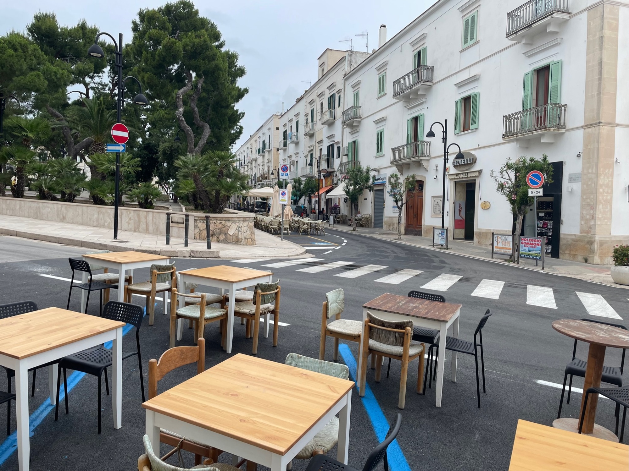 I had to get one more photo before leaving Vieste, this time a shot to show how important the street-side restaurants are to this culture. Notice how the tables in the foreground are placed to allow just a single lane of traffic? Now check the street that feeds into this one. It was recently paved and painted to allow a generous space for the cafe’s tables, plus one parking spot. And, the tables stay there all day long even when the restaurants are closed. This is one of the things we love about travelling here at this time of year.