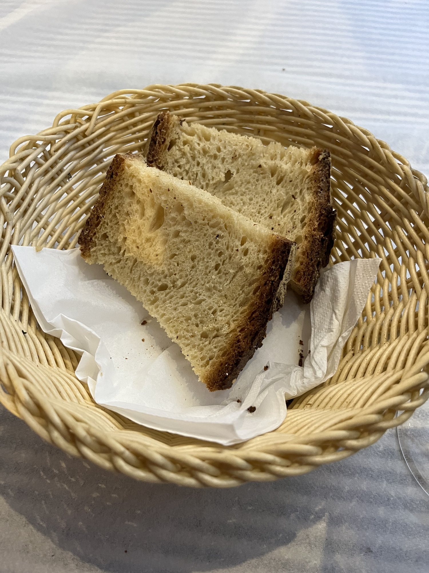 The waiter brought us some sliced bread while we waited for the first course, which is very normal here. What we didn’t expect was for it to be the most heavenly bread either of us have ever tasted. It stopped us in our culinary tracks.