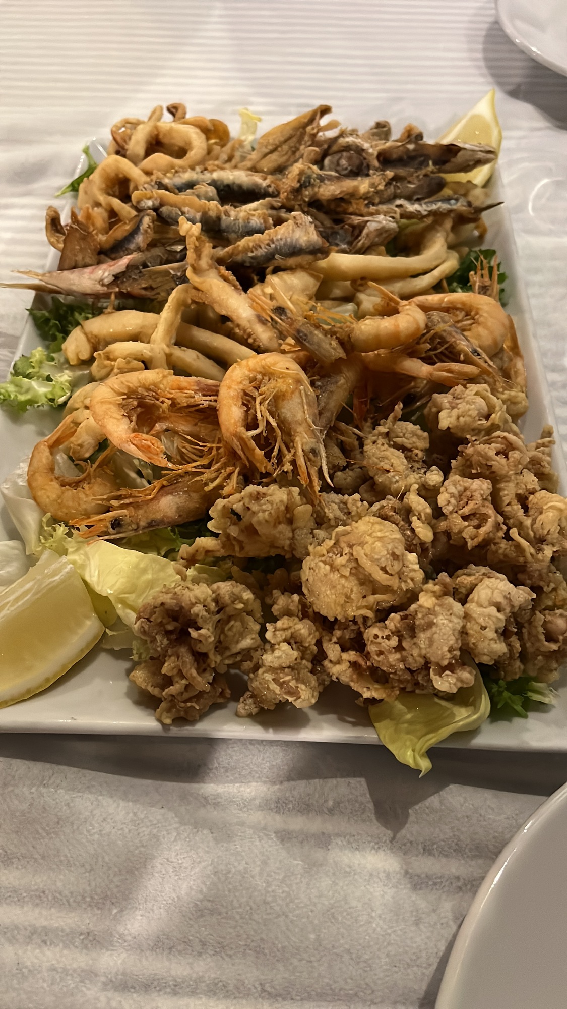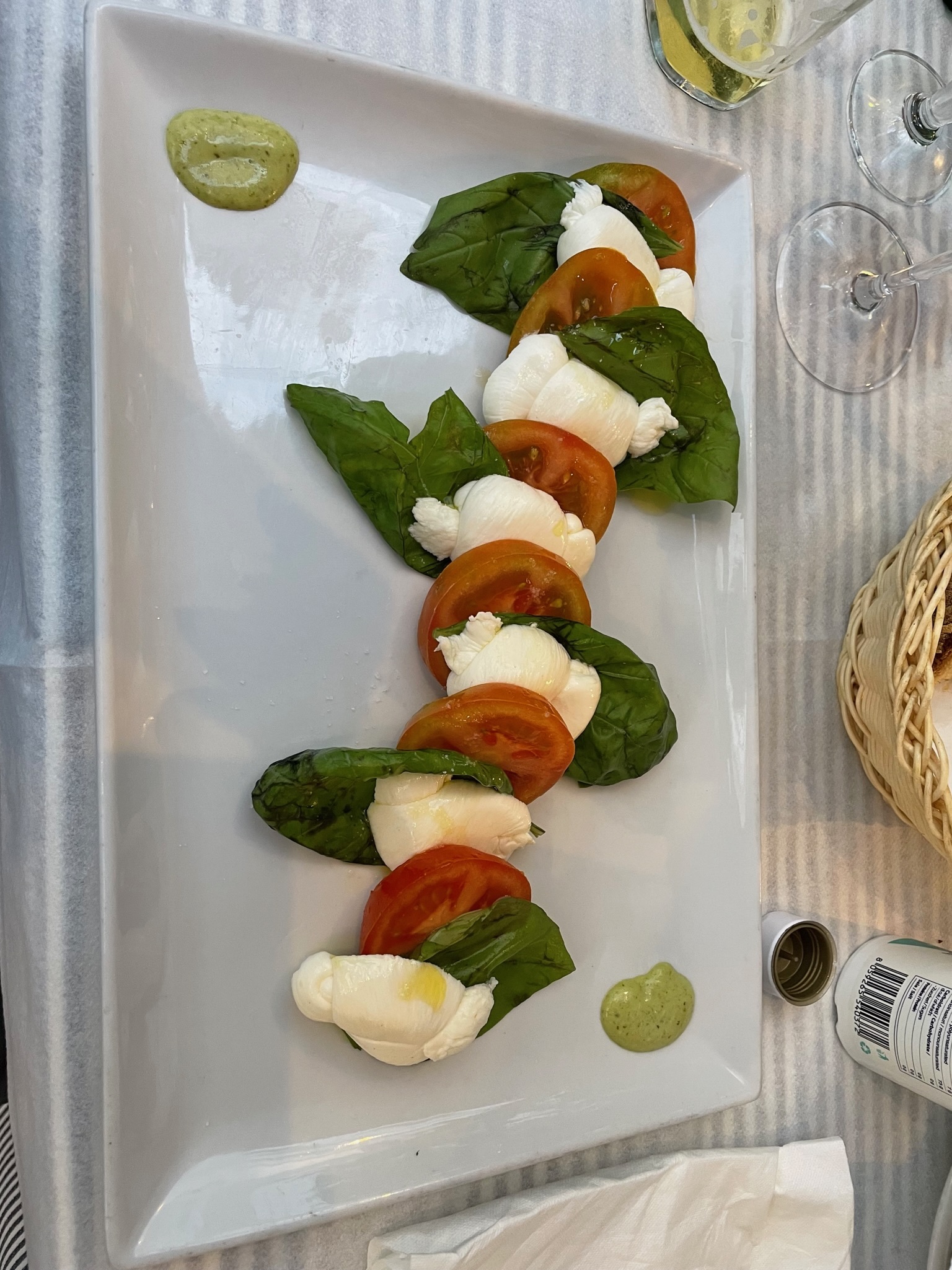 We rested for a while and lazed about until it was time to find some dinner. The restaurant was just two blocks away and we were welcomed then seated right away at an outside table. We ordered bruschettas, caprese salads and a mixed seafood platter.