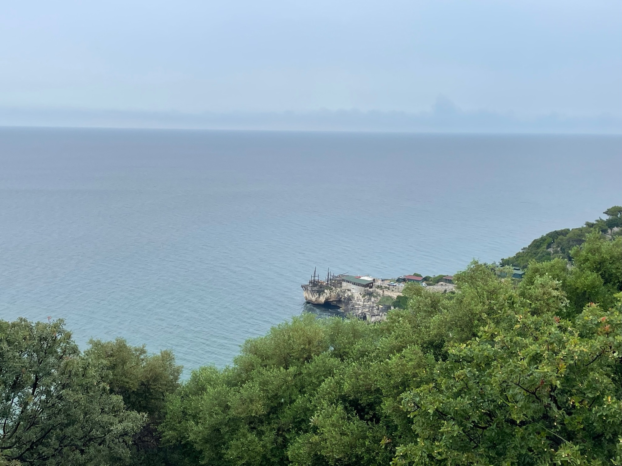 As inviting as Peschicci looked, we did not go into town. Instead, we carried on past a sandy beach and then up and over the last hump. From the summit of this hill, we had a view over the Monte Pucci trabucco.