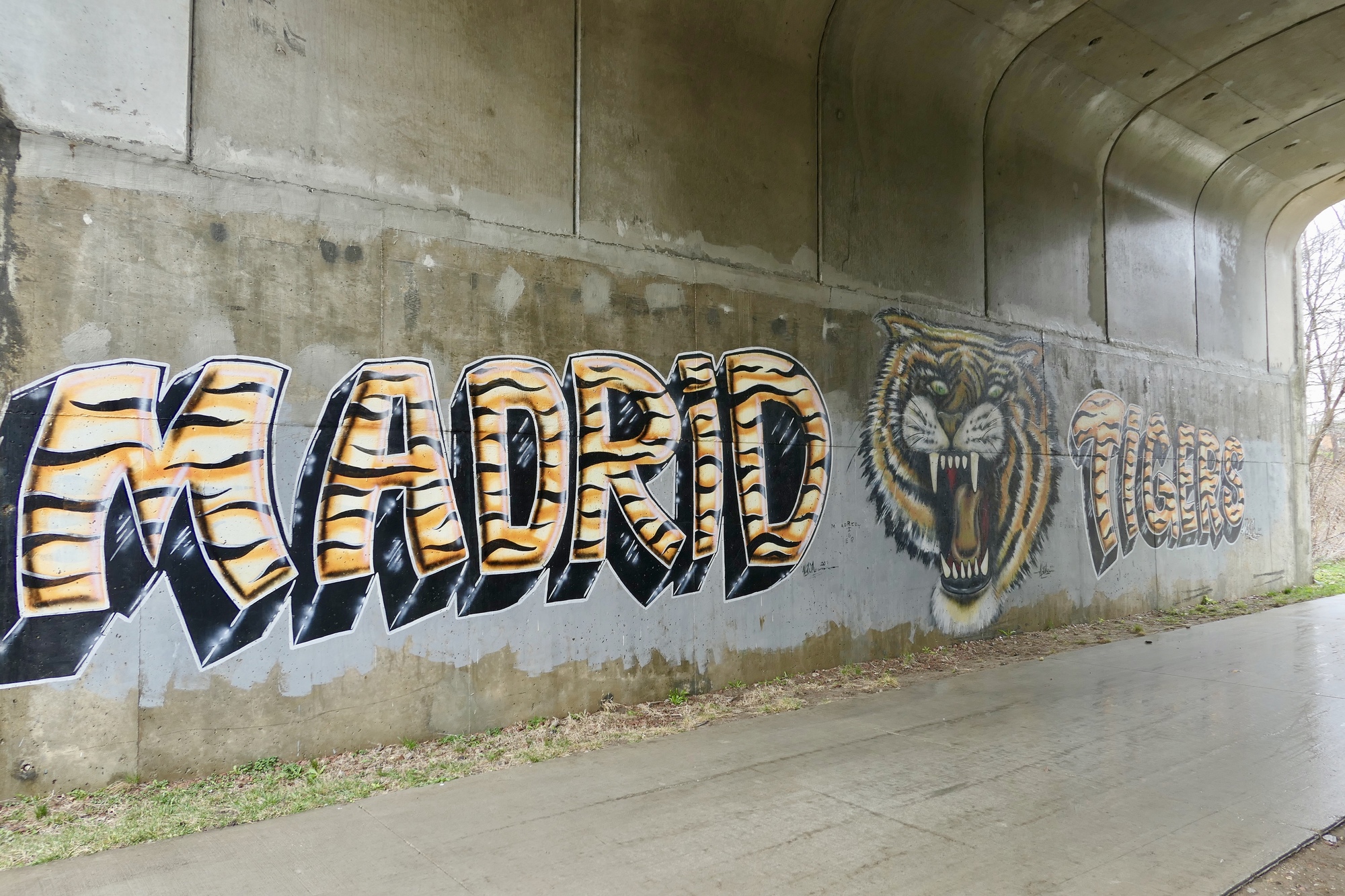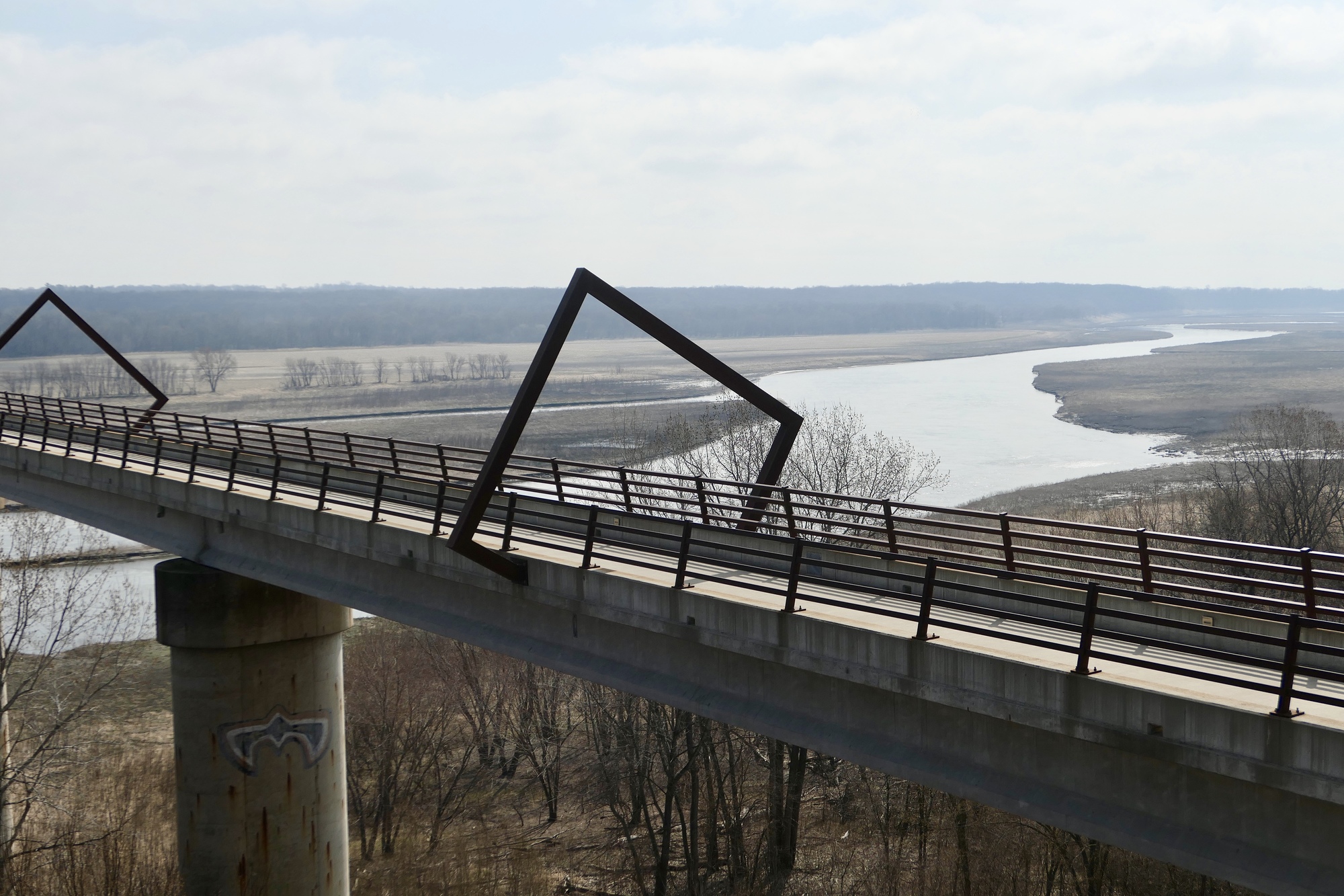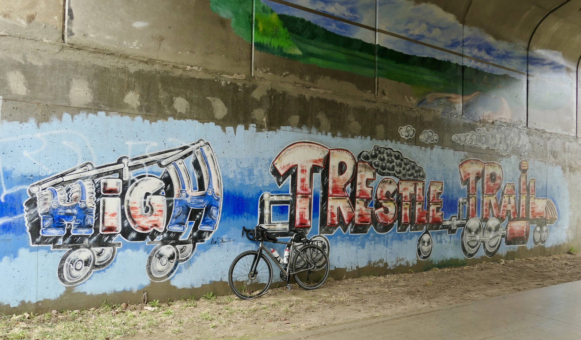 Just beyond Madrid is a spot that always brings a smile to my face – the underpass artwork honoring the High Trestle Trail and the Madrid Tigers. The 130-foot gateway pillars of the Bridge soon appeared, and once again I was floating along high above the Des Moines River. The sun was trying to break through, but the clouds persisted and my stops for photos were few and brief.