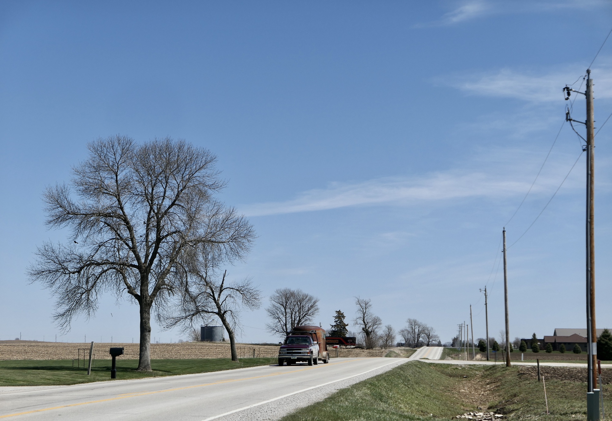 Leaving Ames, I zig-zagged west and north on a familiar route toward Roland. I had planned on heading first to Story City, but found that my road north was gravel. I was not keen to take Stella down a gravel road into the wind, so the plan for the day became an out and back to Roland. I continued east on E18, a nice county road with just the whisper of a roll. Traffic was light, mostly farm vehicles or pick-ups, and the cross-winds were pretty manageable.