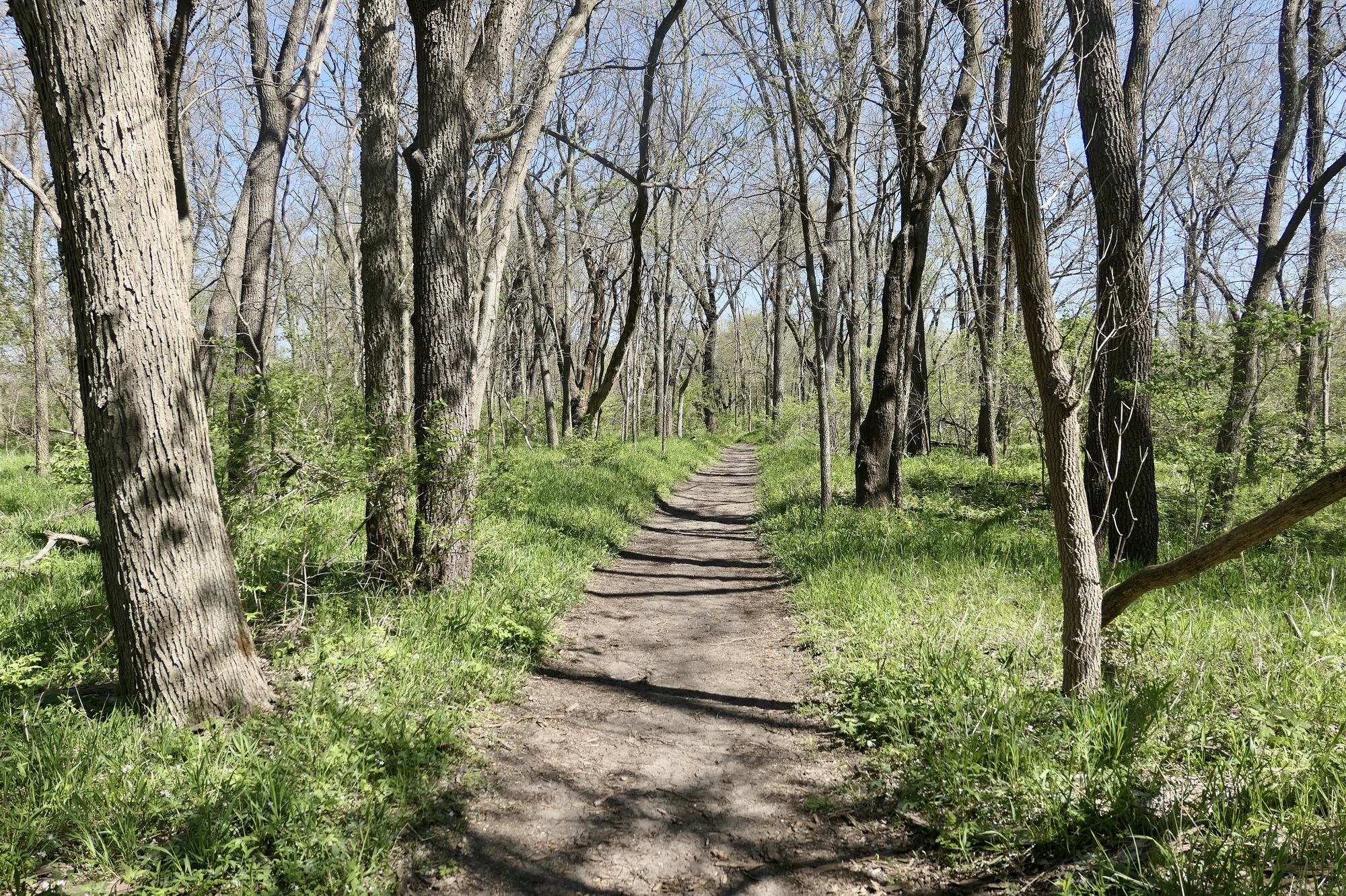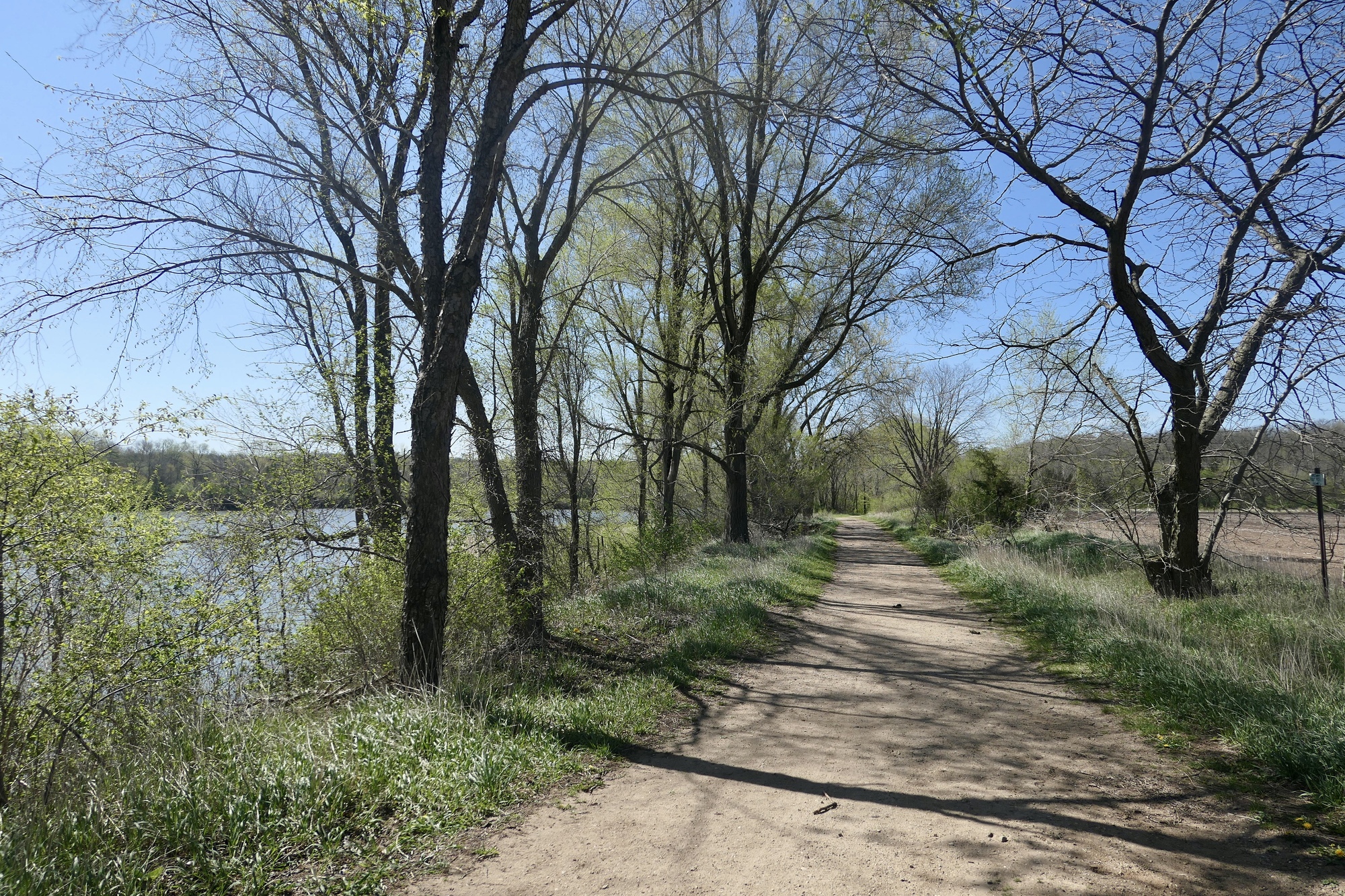 Leaving Ada Hayden, I skirted the residential areas of northeast Ames before reaching the entrance to West Peterson Park, located on the west bank of the Skunk River. I’d not been here in years, back when I would bring my dog out for long walks or cross-country skiing. The gravel road passed by fields and a small prairie before arriving at the 31-acre Peterson Lake, where many local residents enjoy swimming and fishing. Today, geese were the only ones sunning on the beach or enjoying a swim in the lake. The areas beyond the parking lot were accessible only by trail, which started off wide and well-packed but narrowed as it entered the woods surrounding northern and eastern sides of the lake. The surface quality varied as well - sometimes grass and sometimes softer dirt or sand. The experience flooded me with memories of the Canal du Midi (without the threat of falling into the canal) and other route (mis)adventures during my first self-contained tour of France. It was a nervous excitement that left me wanting more. Due to time constraints, however, I was hesitant to explore the full network of trails so I just circled the lake to the west side of the prairie and back to the park entrance.