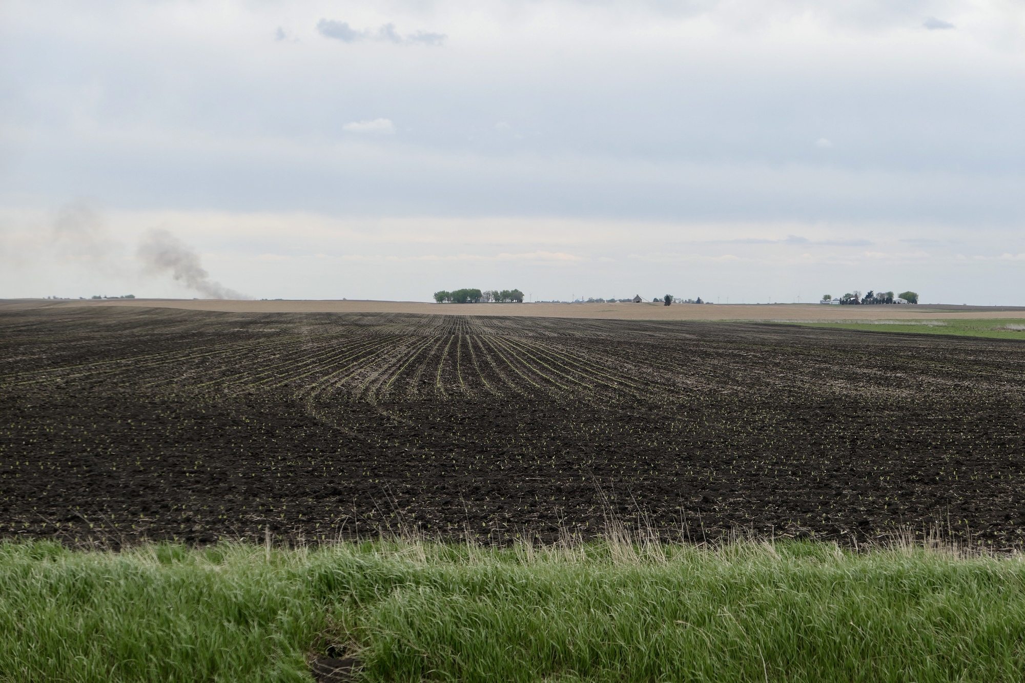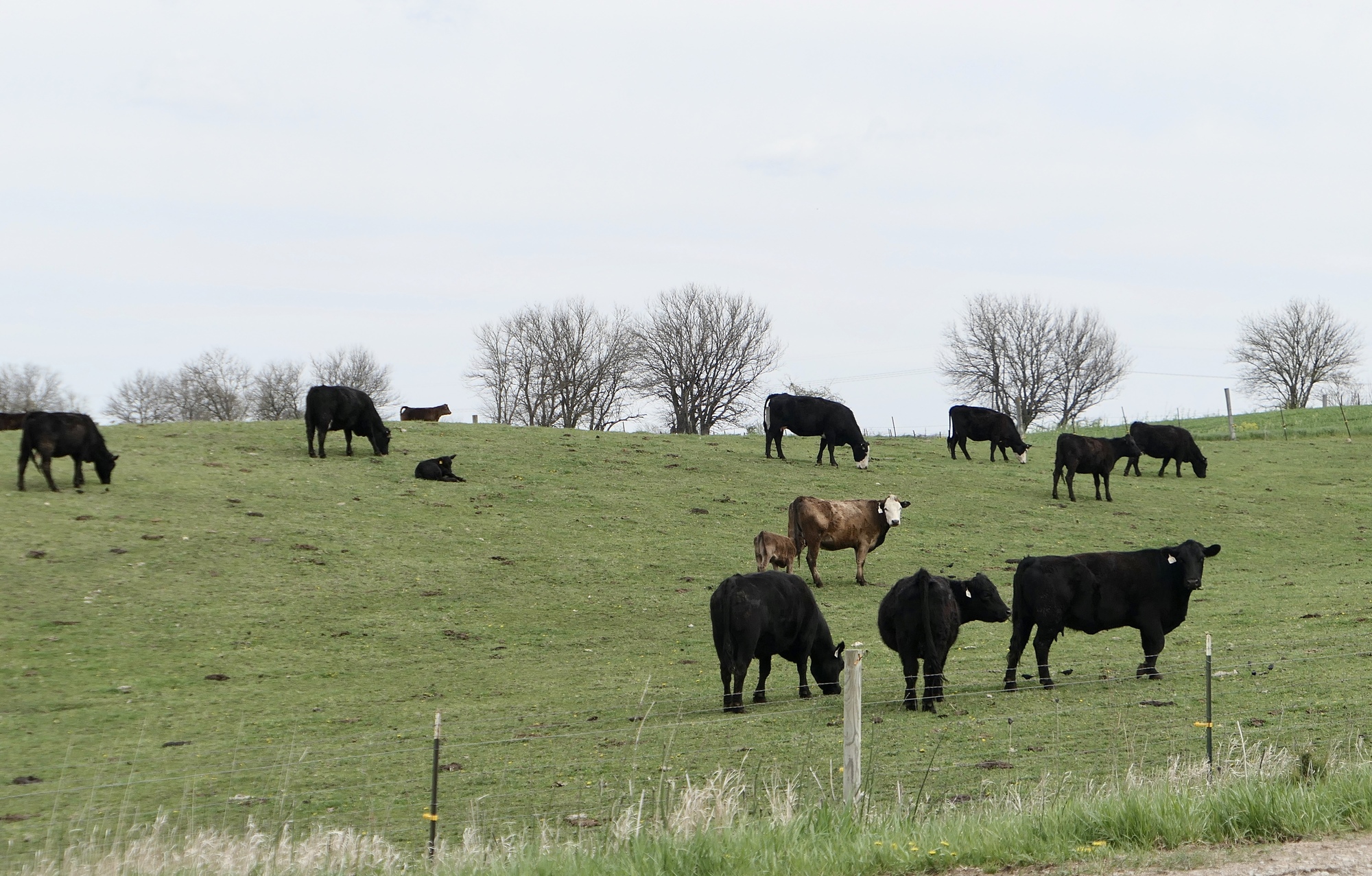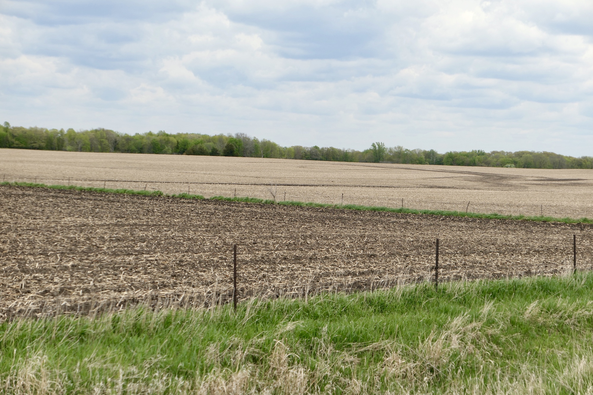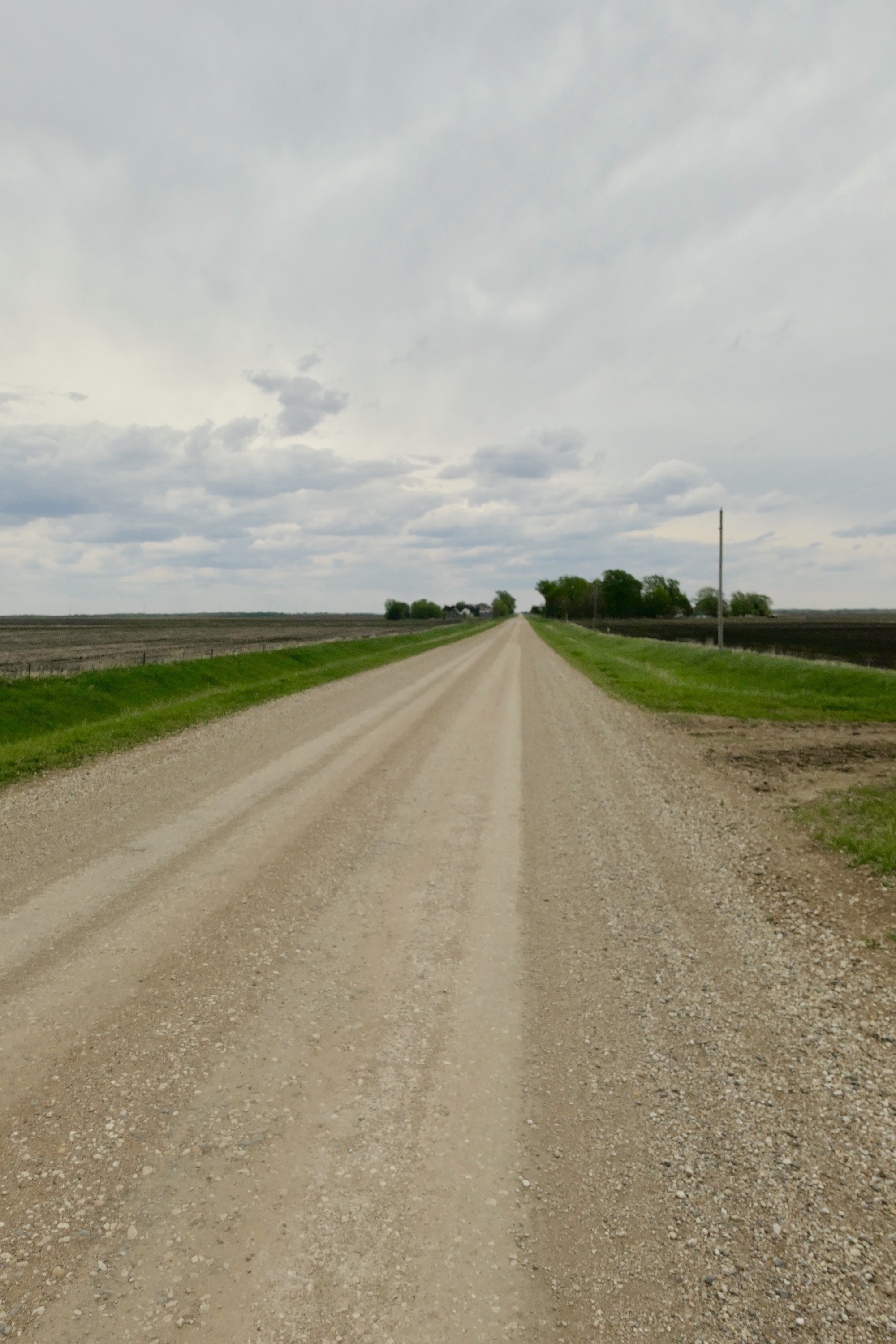 It was a somewhat pleasant riding day - overcast with temperatures around 60°F. Westerly winds were fairly light, but were forecast to pick up as the day wore on. I drove out to Don Williams Recreation Area, about 25 mile WNW of Ames, and headed north along county highway P70. The terrain to the east, toward the river, was mostly pastures dotted with cattle while farm fields stretched out to the west. After four miles, I turned east toward the small town of Pilot Mound and, as the signs indicated, Twister Hill. Pilot Mound (pop 170) is a conclave of small residents and empty storefronts just off E18, a primary east-west county highway. The Moundview Motel(?) seems to function more as an apartment complex than as place for visitors. After a quick look-see around town, it was time for Twister Hill. Before I could start my descent however, I had to stop and look at the corn – yes, small sprouts of corn in evenly spaced rows. This corn had been planted early, in the risky shoulder season, but I welcomed the seedlings as another signal of seasonal change and the greening of the Iowa landscape.