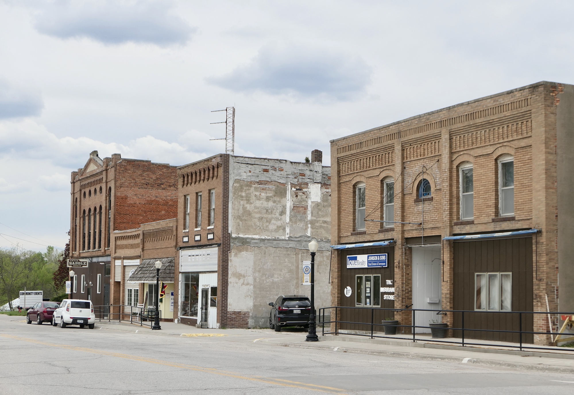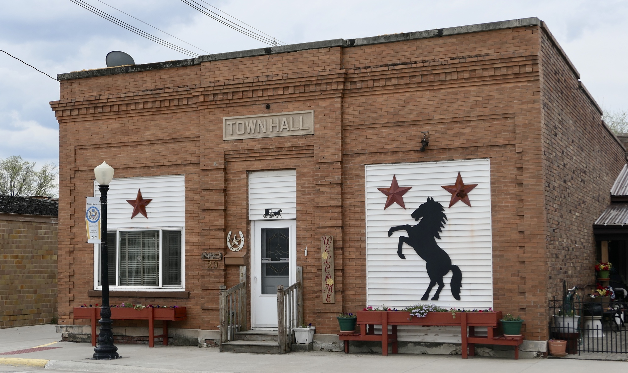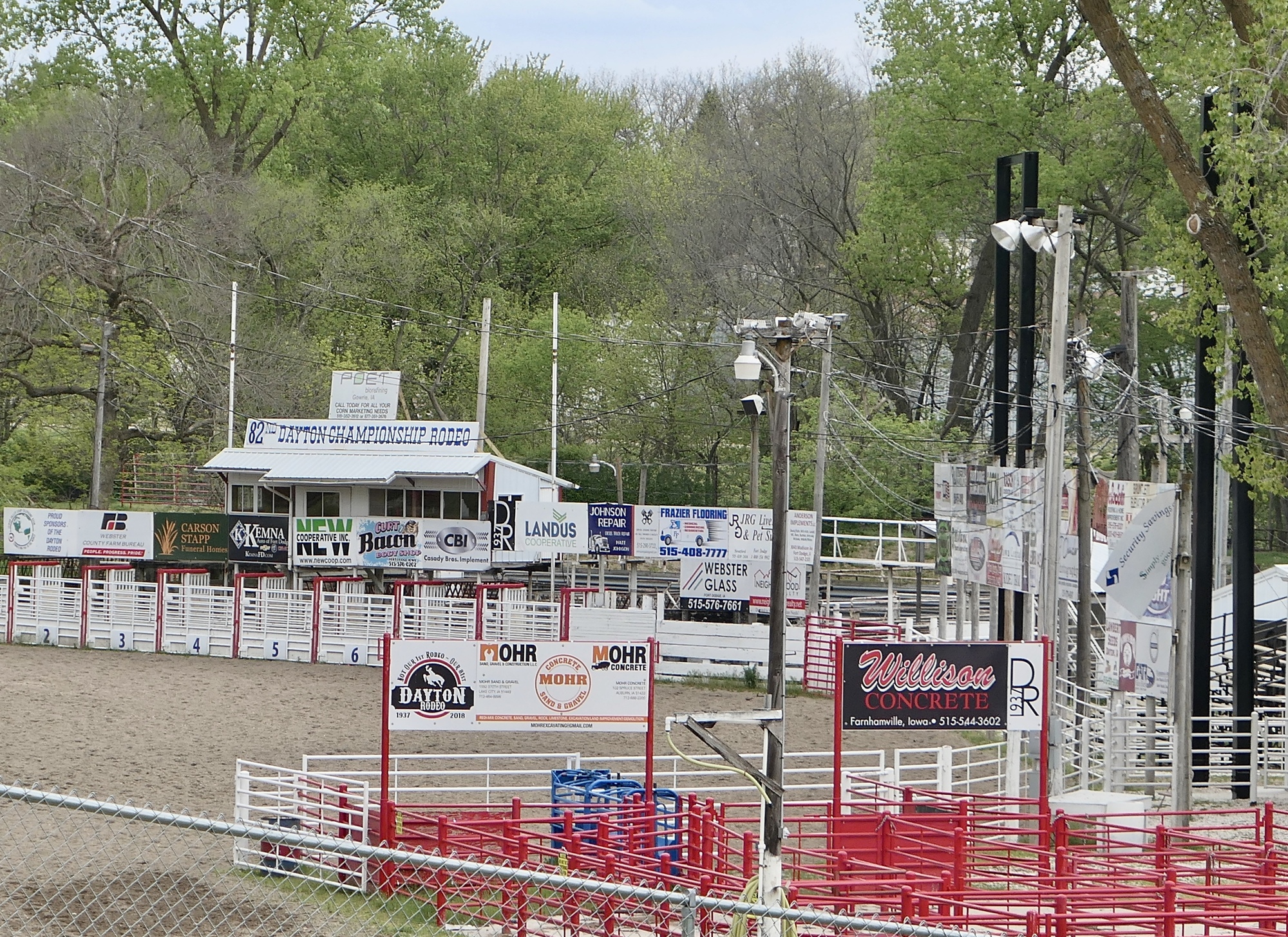 County highway D54 travels north from Stratford and makes one large sweep to the west as it crosses the Des Moines River, then a second sweep to the north on the climb up. The grades are more gradual than Twister Hill and the traffic was light, making for a carefree river crossing. Another zig-zag to the west and north was followed by a straight line to the west, past farm fields and homesteads. After five miles, I turned south on P73 toward Dayton, another of the memorable towns from my 2012 century ride. I stopped at the local grocery for chocolate milk and water, then wandered around the town a bit. Across from the grocery is a large mural depicting some of the town’s points of pride – the water tower, fire station, and rodeo. The Dayton Rodeo, a nationally sanctioned event, was started in 1937 and attracts more than 10,000 spectators over a Labor Day weekend celebration that includes a large flea market and parade. While exploring town, I struck up a conversation with Jeff, who was up on the roof of an abandoned downtown building. I never did figure out what he was doing up there, but we had a fairly extensive chat about Covid, science, and religion – all in the spirit of Iowa Nice.