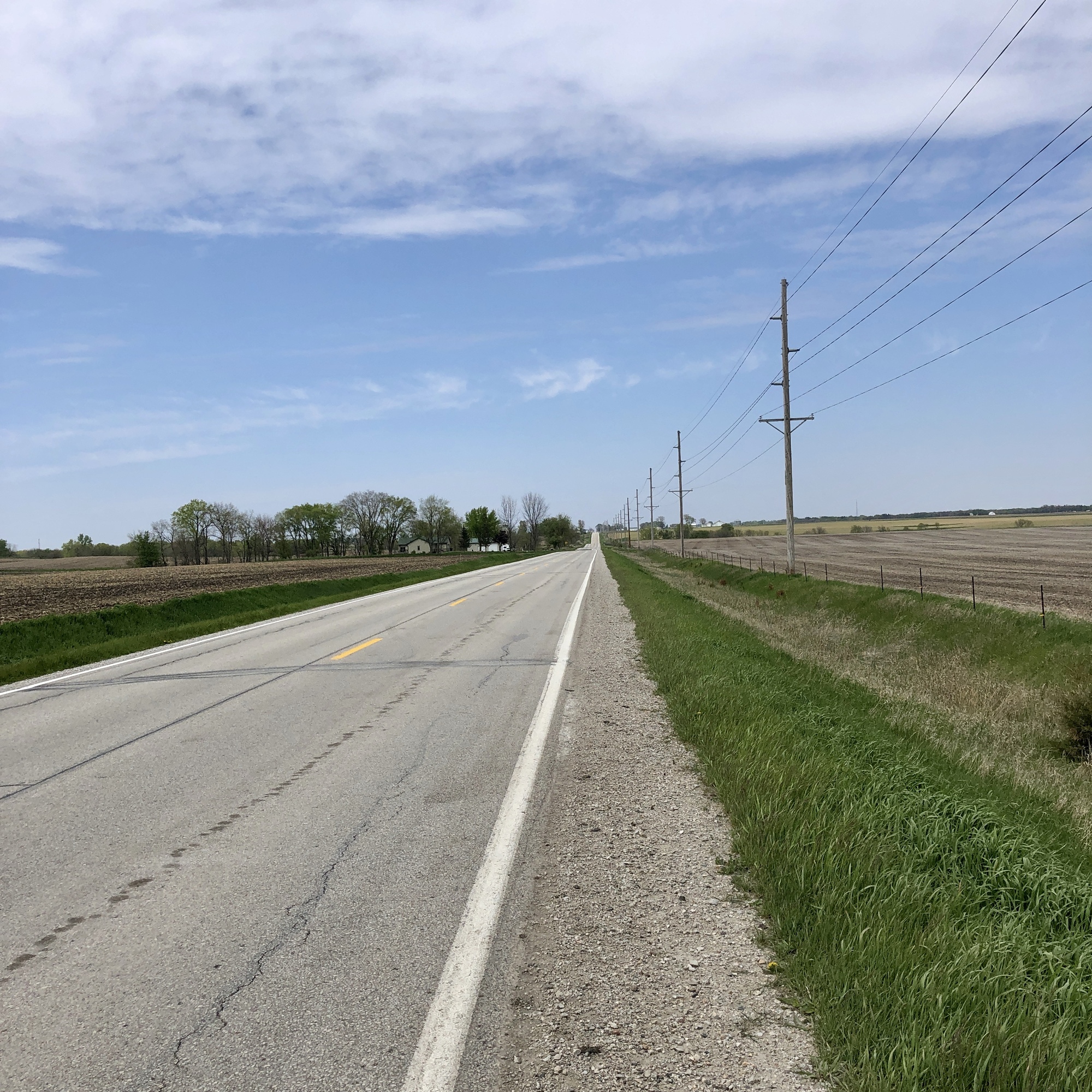 I shortened my planned route around the park, and headed south on a gravel road. My plan was to work my way back west, looping south of Nevada and up to Ames on a mix of gravel and paved roads. However, my route west turned out to be a Class B road, one of those maintenance-free paths of thrills and adventure. Not today. I continued south and devised an alternate route that turned out to be the most delightful riding of the day, zig-zagging north and west through a rolling landscape of fields and pasture. By the time I found myself back on S27, the westerly winds had pick up and I opted for the most direct way back home – via the Lincoln Highway.