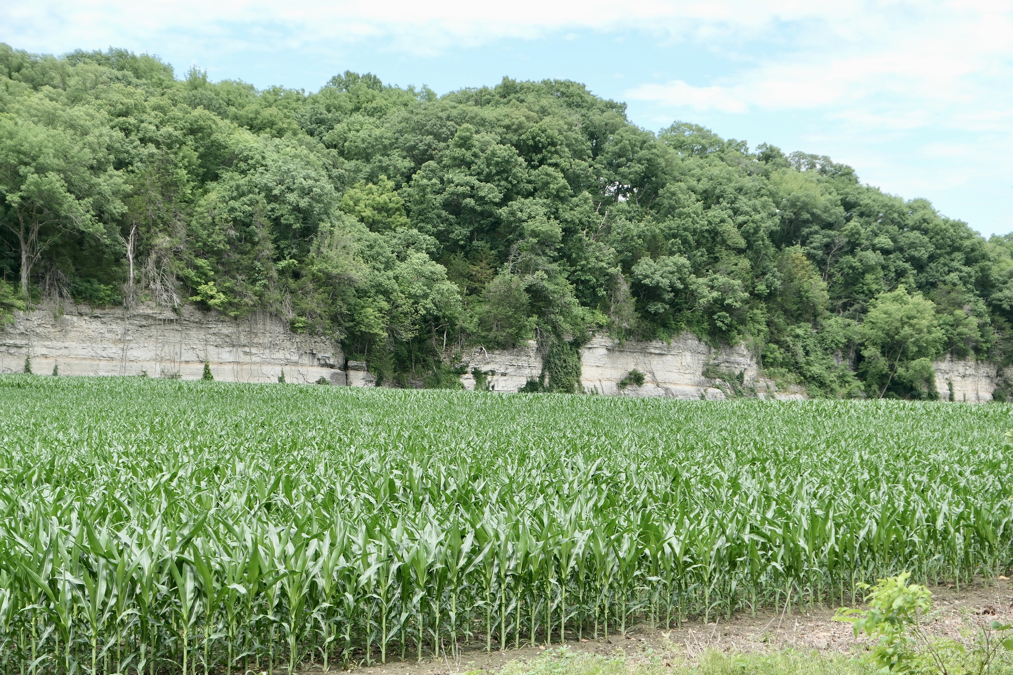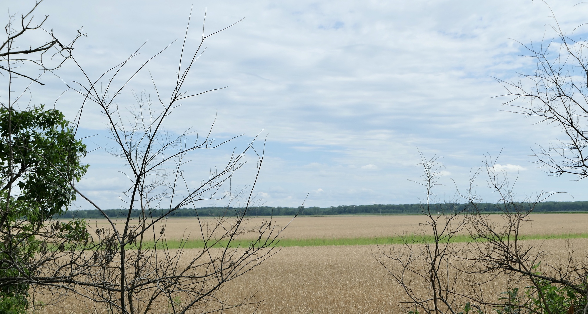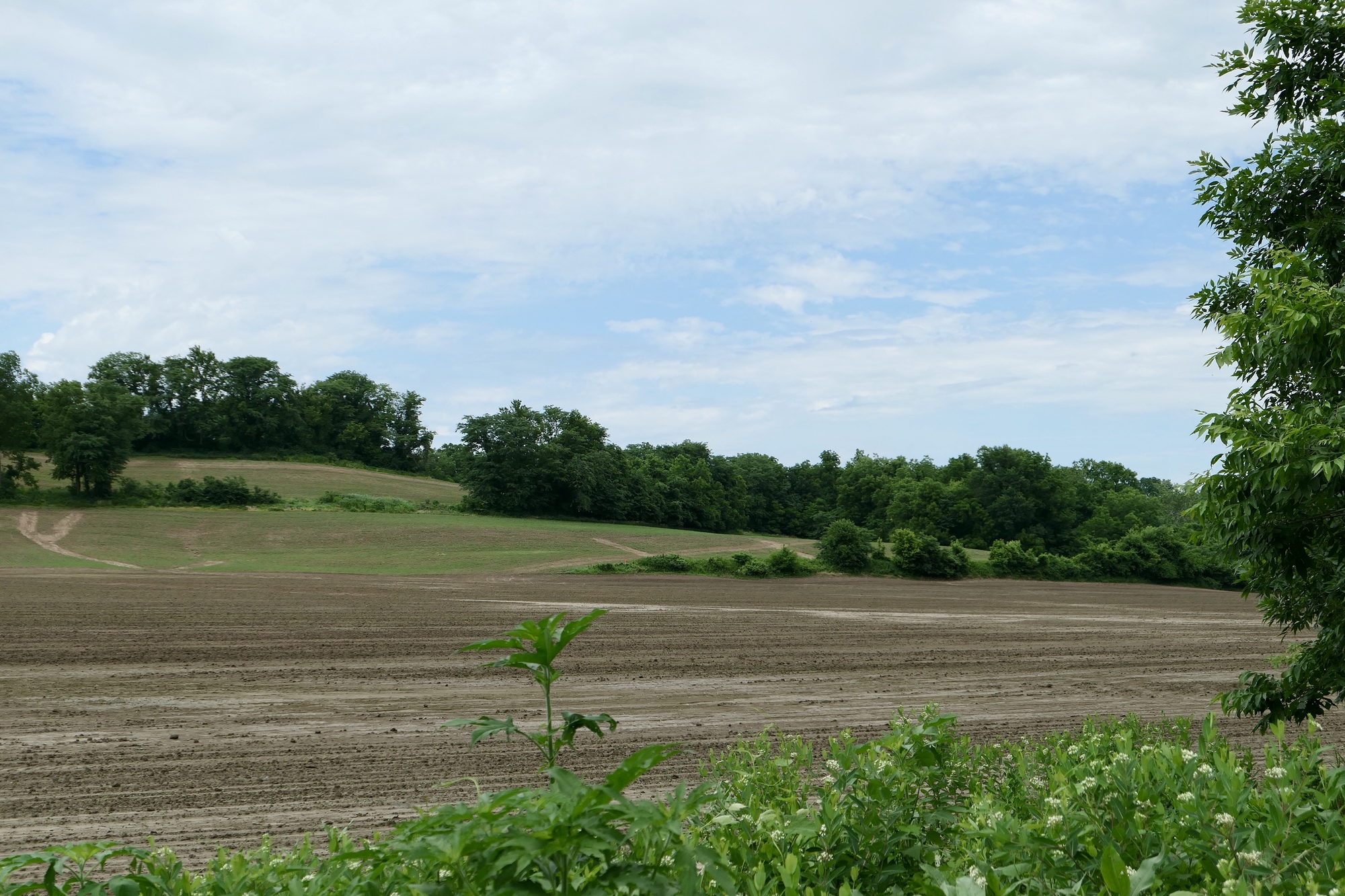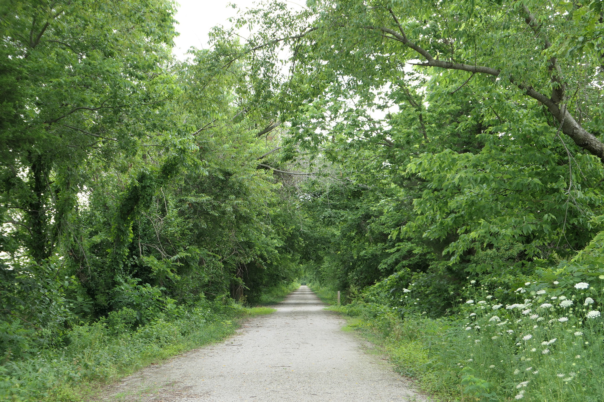 After crossing the river, I headed north and east through Missouri River bottomland. For the first few miles, standing water lingered in the adjacent fields and the trail surface was thick with a recent freshening of crushed limestone. The surface improved a bit after turning east at Franklin, and bottomland crops of corn and wheat appeared to be thriving.