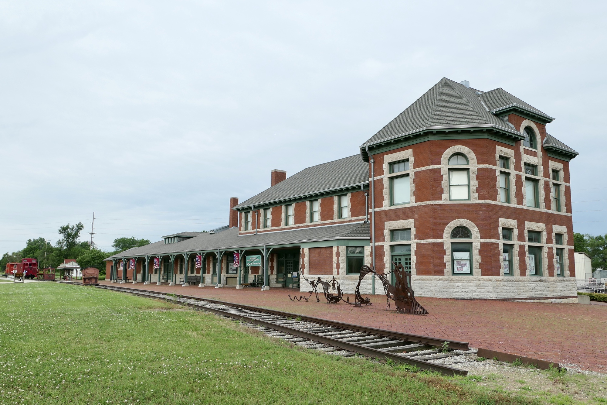 My first day on tour! Rain was forecast for this afternoon so I wanted to get an early start for Rocheport. Vivien George and Vincent were waiting in the lobby when I went downstairs, as was my breakfast sack of yogurt and a poptart – a Covid substitute for the breakfast buffet. I opted for a latte and a blueberry scone at the Ozark Coffee Company and Roastery – a great cup of joe! It was a little before nine when I arrived at the Katy Depot, the historic station along the Missouri-Kansas-Texas Railway (the MKT). It was there I met Ray, a cyclist traveling from Saint Louis who was in search of coffee. I directed him to Ozarks and got some info on trail conditions before we headed off in opposite directions.