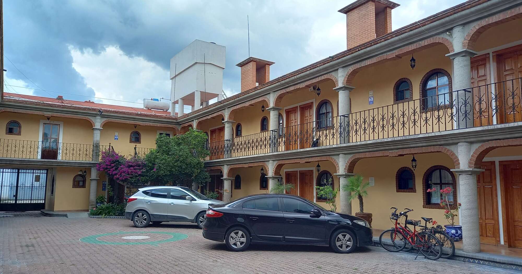 We are in the Hotel Real San Nicolas for the night, selected because it has a safe place for the bicycles inside its courtyard. It's nothing special but at M$440 for the night we are more than satisfied.
