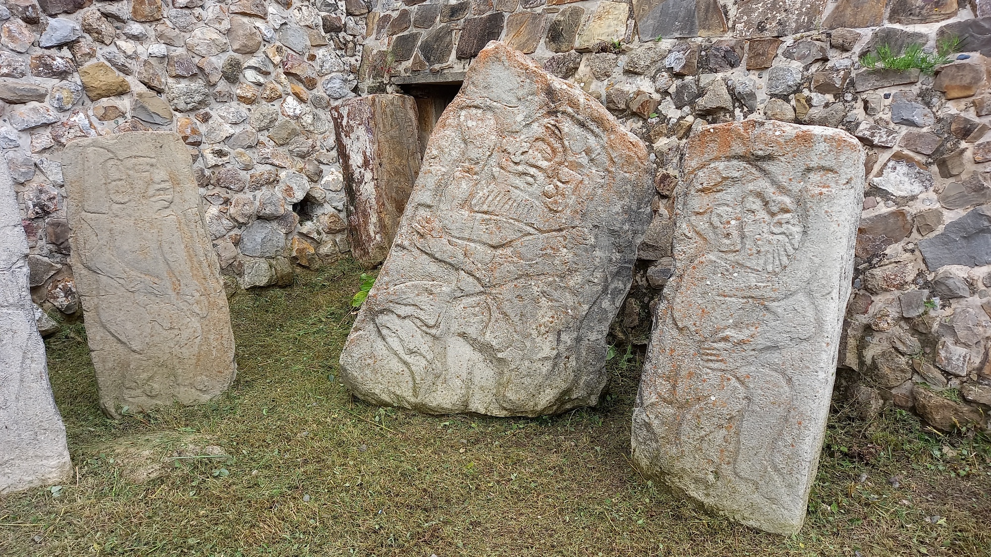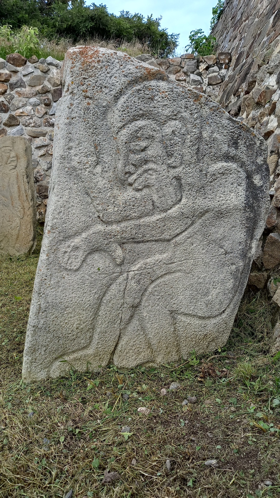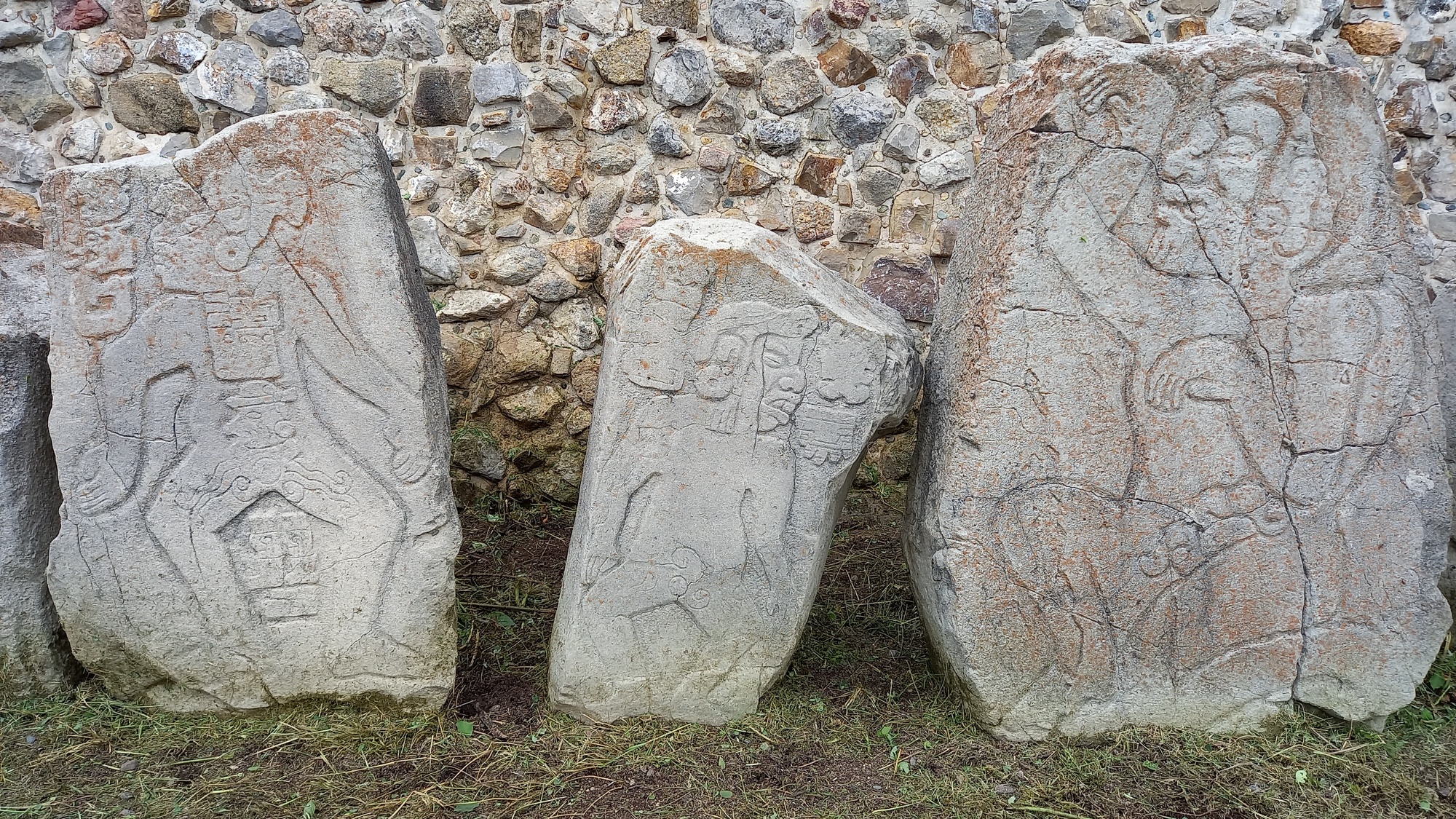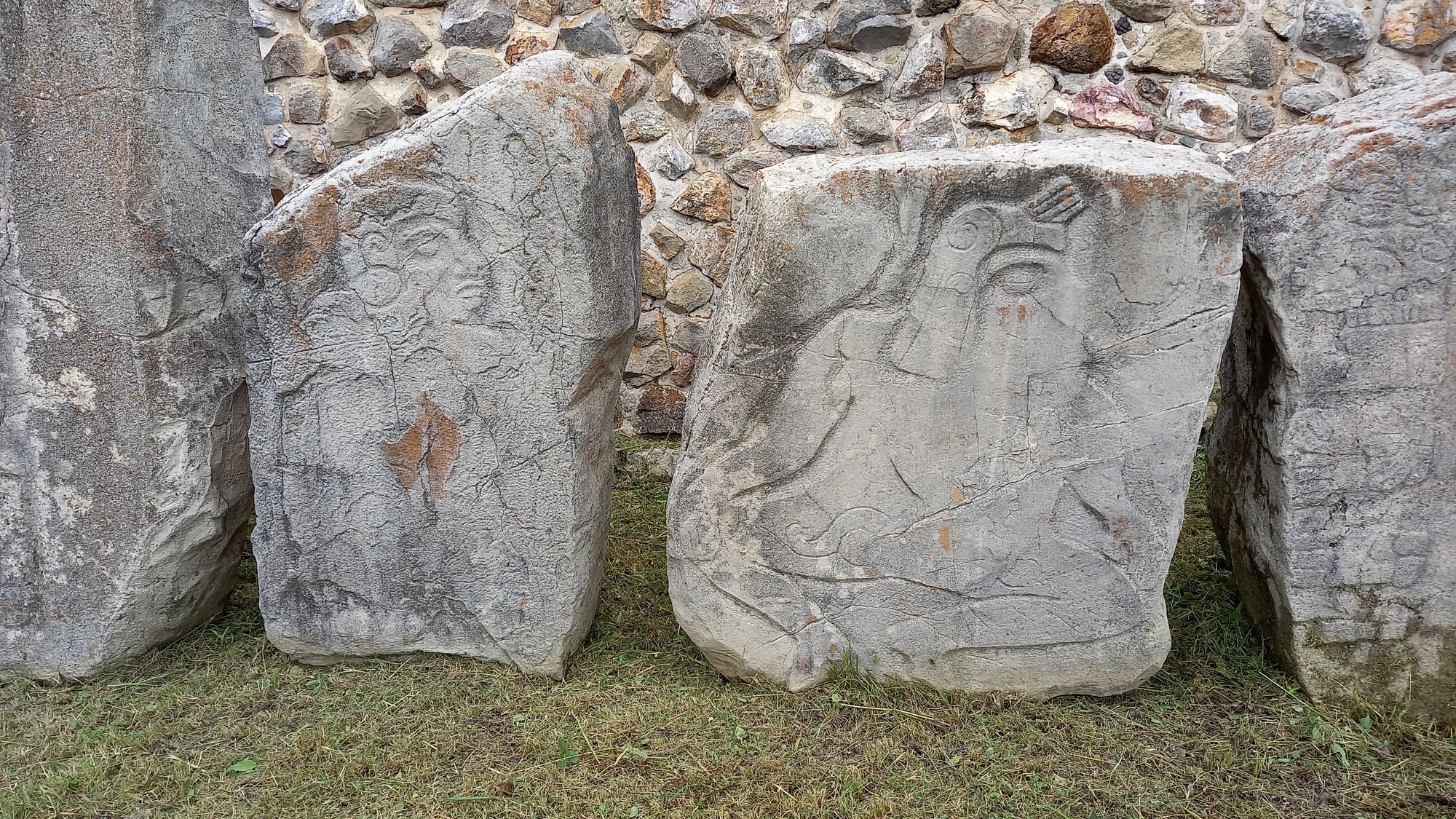 The series of carvings of naked men below apparently represent Olmeca leaders whom the Zapotecs captured and used as human sacrifices - the thick lips identify them as Olmecas and their portly stature as leaders !