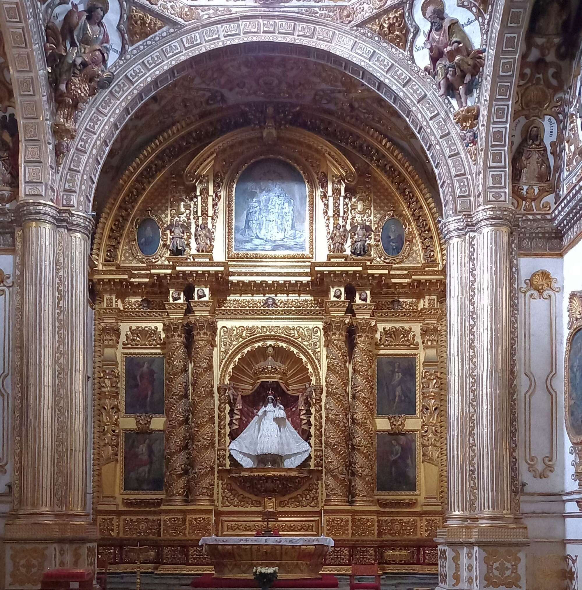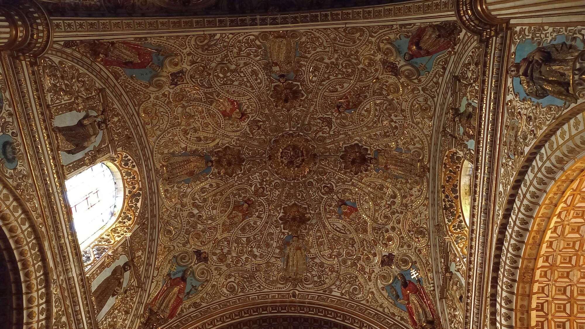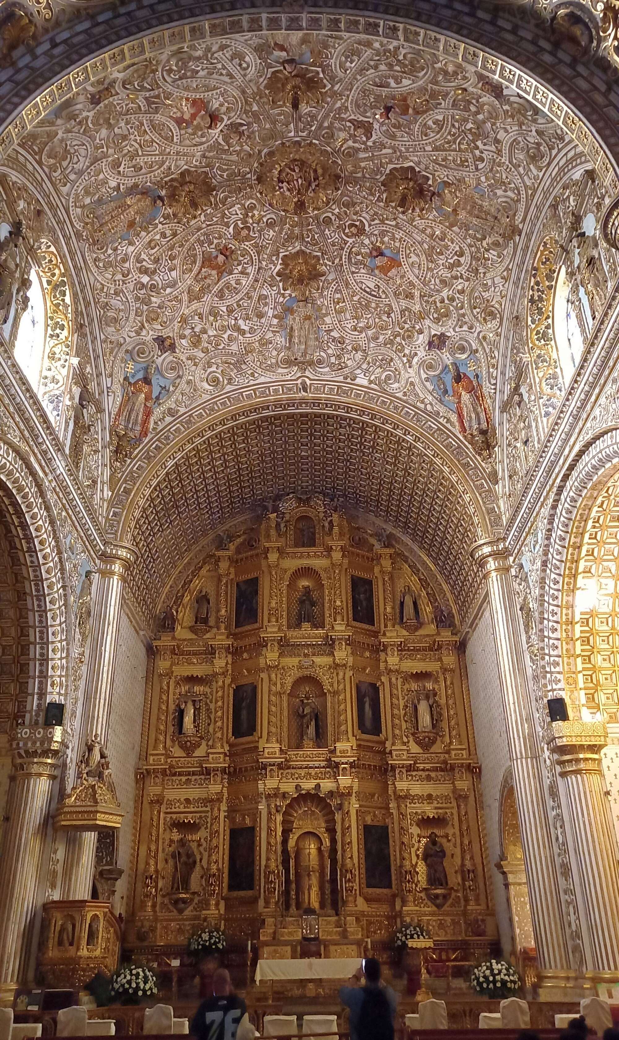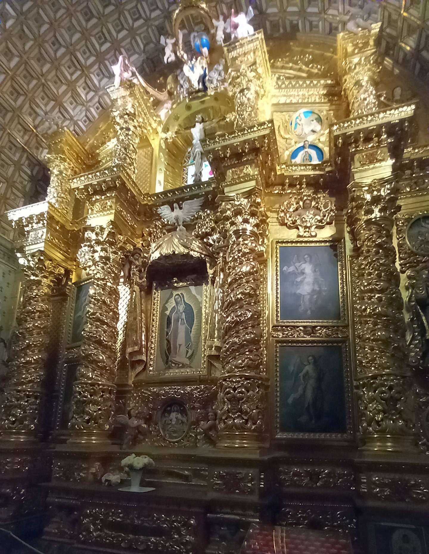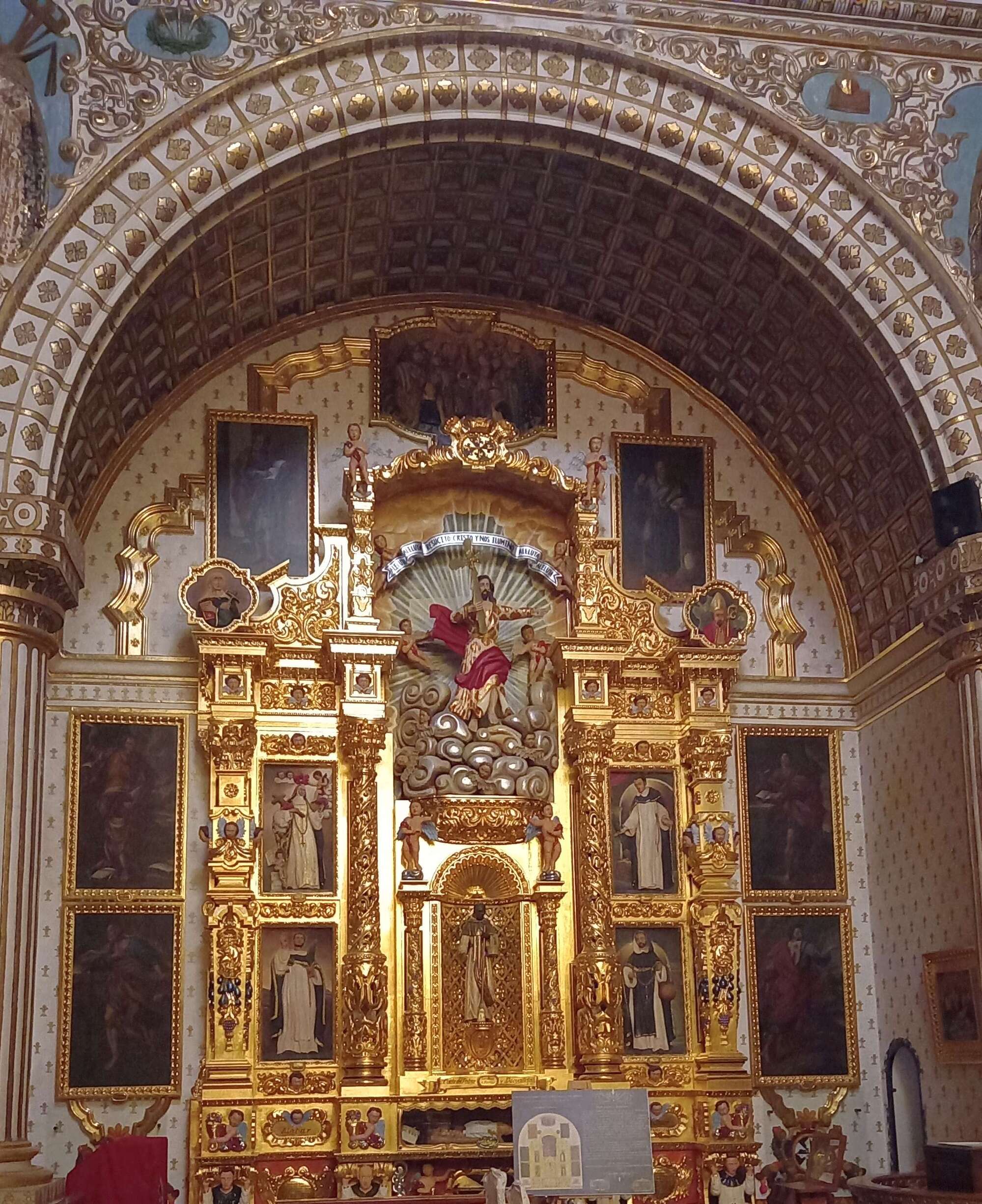 At about four in the afternoon we made it into the Templo de Santo Domingo de Guzman just before the thunderstorm broke. It is as elaborate as the cathedral is austere.