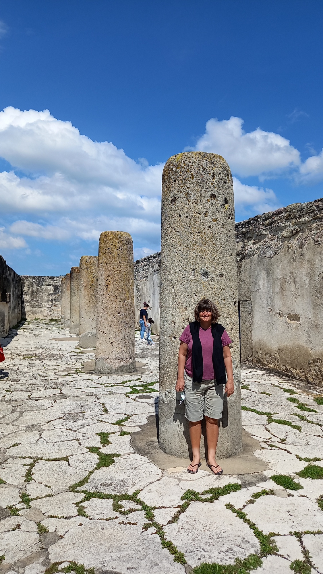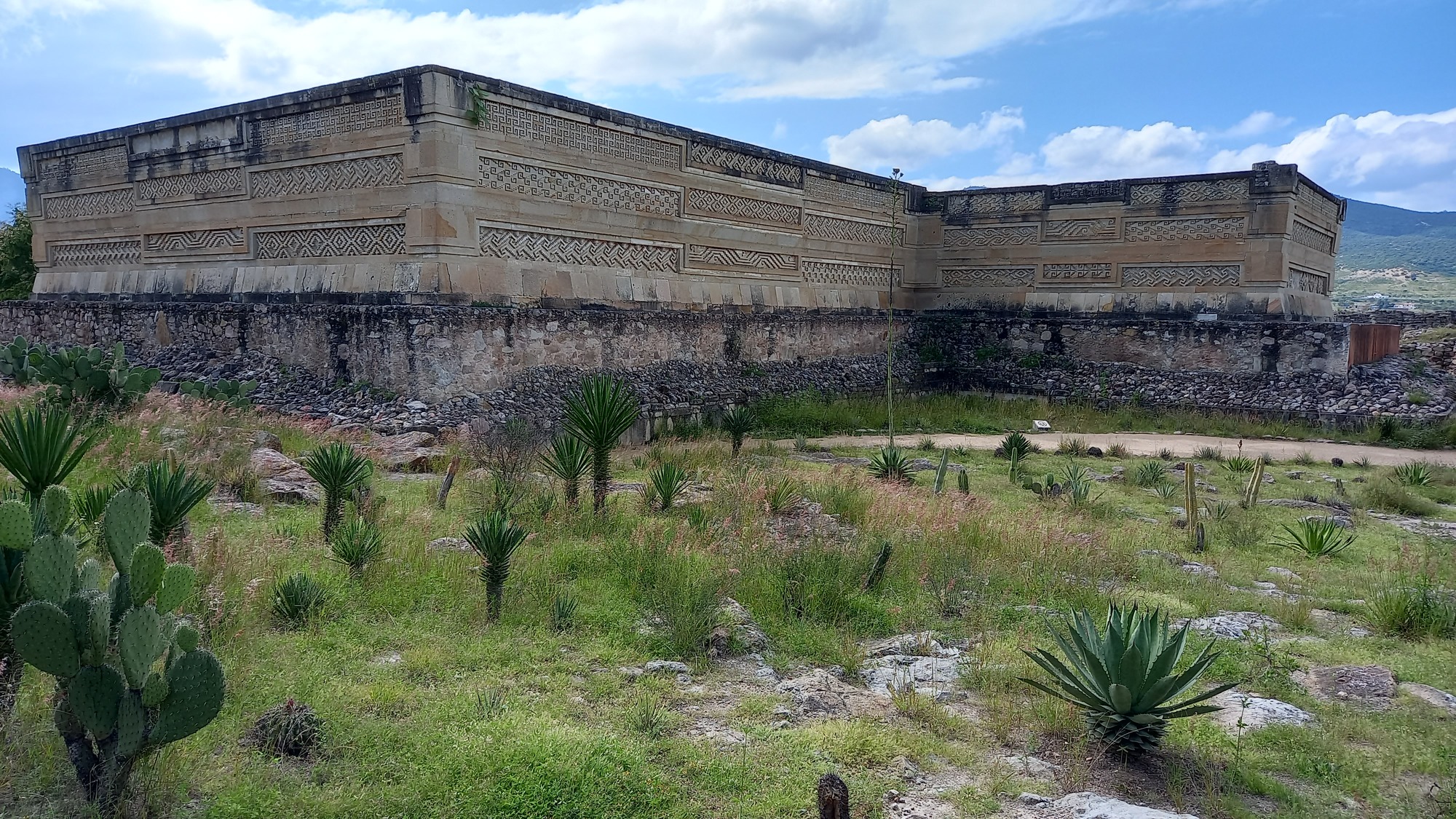 We left Teotitlan about ten, taking the better road back to Route 190. We had another short day today, just thirty kilometers or so but we had things to do along the way. First of all, a quick detour into Tlacolula to draw some cash - I am always scared of running out of cash particularly in areas where we suspect credit cards won't be accepted. Then we spent a couple of hours at the remains of the Zapotec city at Yagul, just outside Tlacolula. After that it was a short ride on to Mitla. We will need to spend two nights here because the archeological site is closed today. This also means we can avoid for one more day the tough climbs that we will have to deal with to get to the Pacific coast over the next few days.