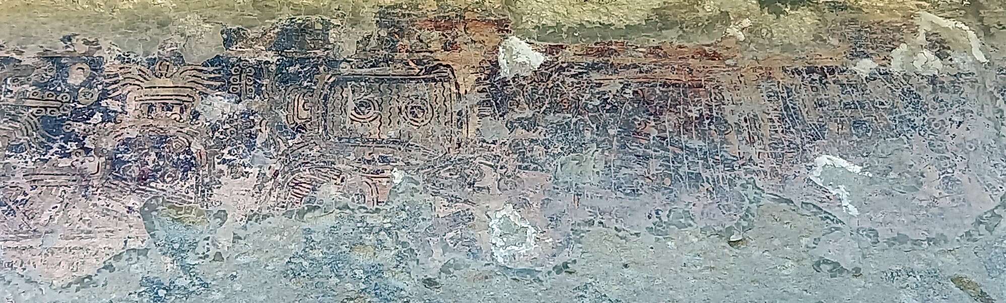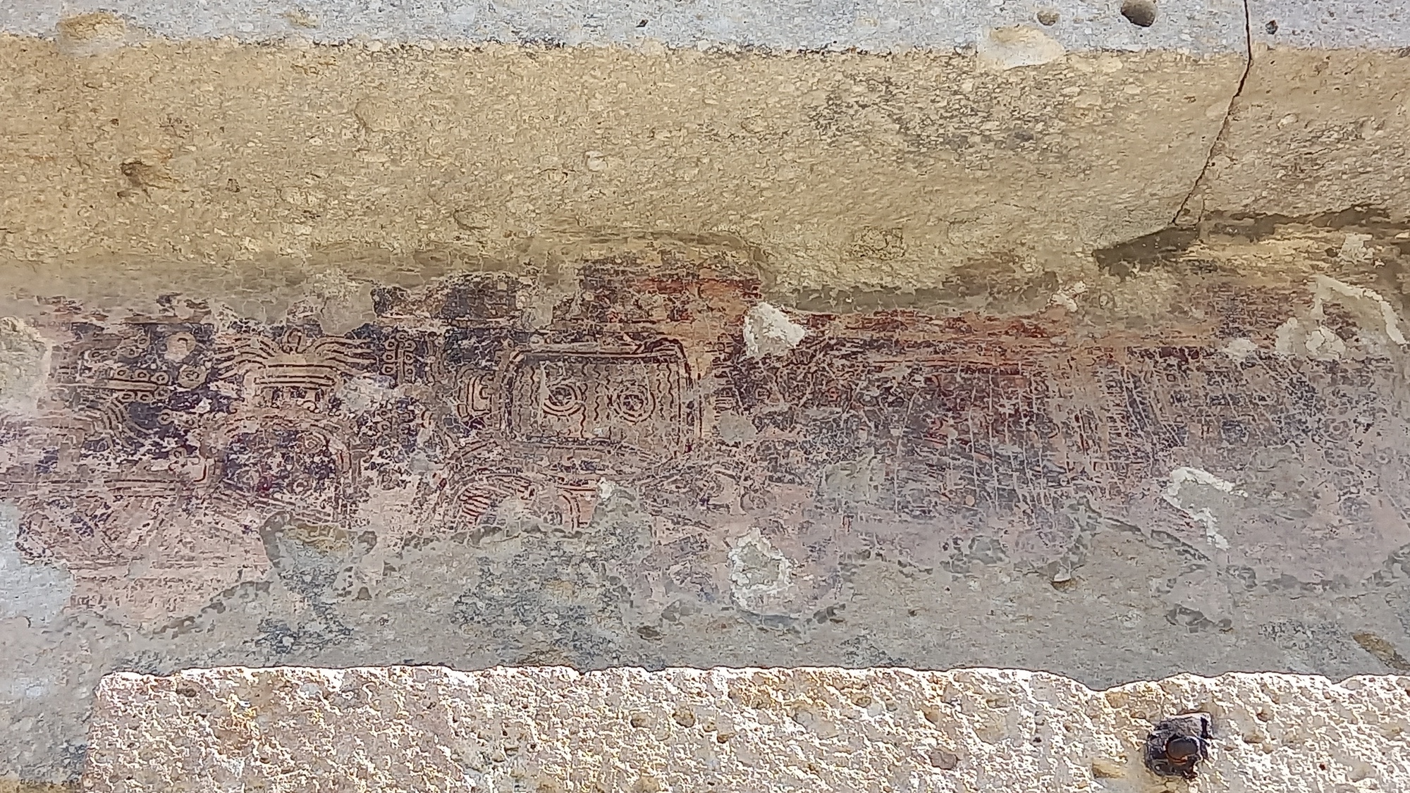 Mitla's main attraction is its archeological park. That's why were came here. There is no point in trying to compare one Mesoamerican historical sight with another because it seems that each has something special to offer. In the case of Mitla it is a few remaining murals, some lovely fretwork and some impressive pillars. What is sobering is the fact that much of it was destroyed by the Spanish in the mid sixteenth century to build a church in their attempts to ompose Spanish religion and culture on the Zapotecs.