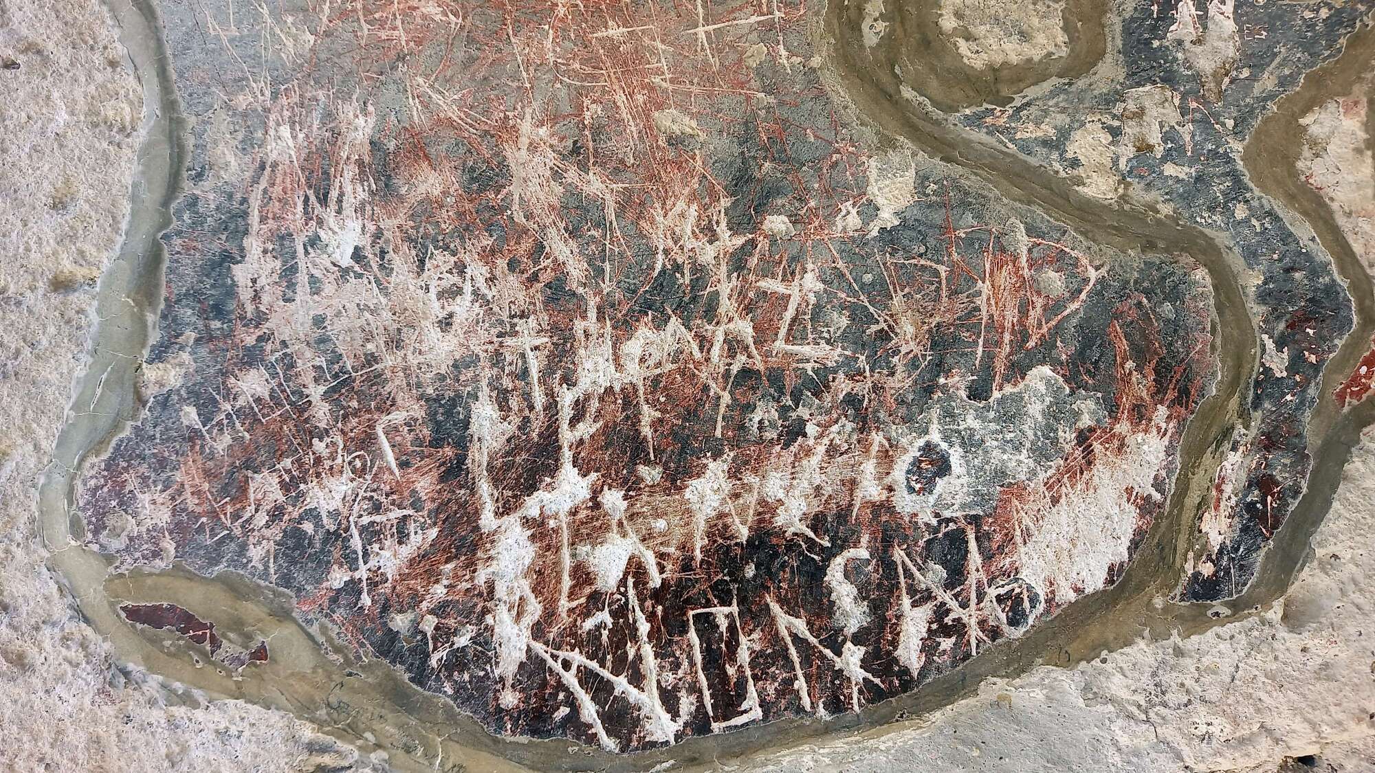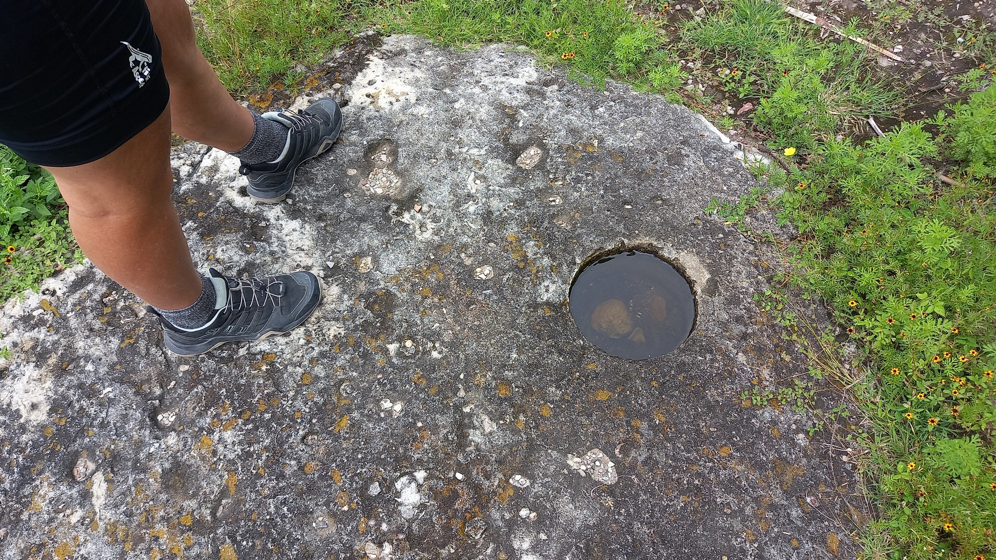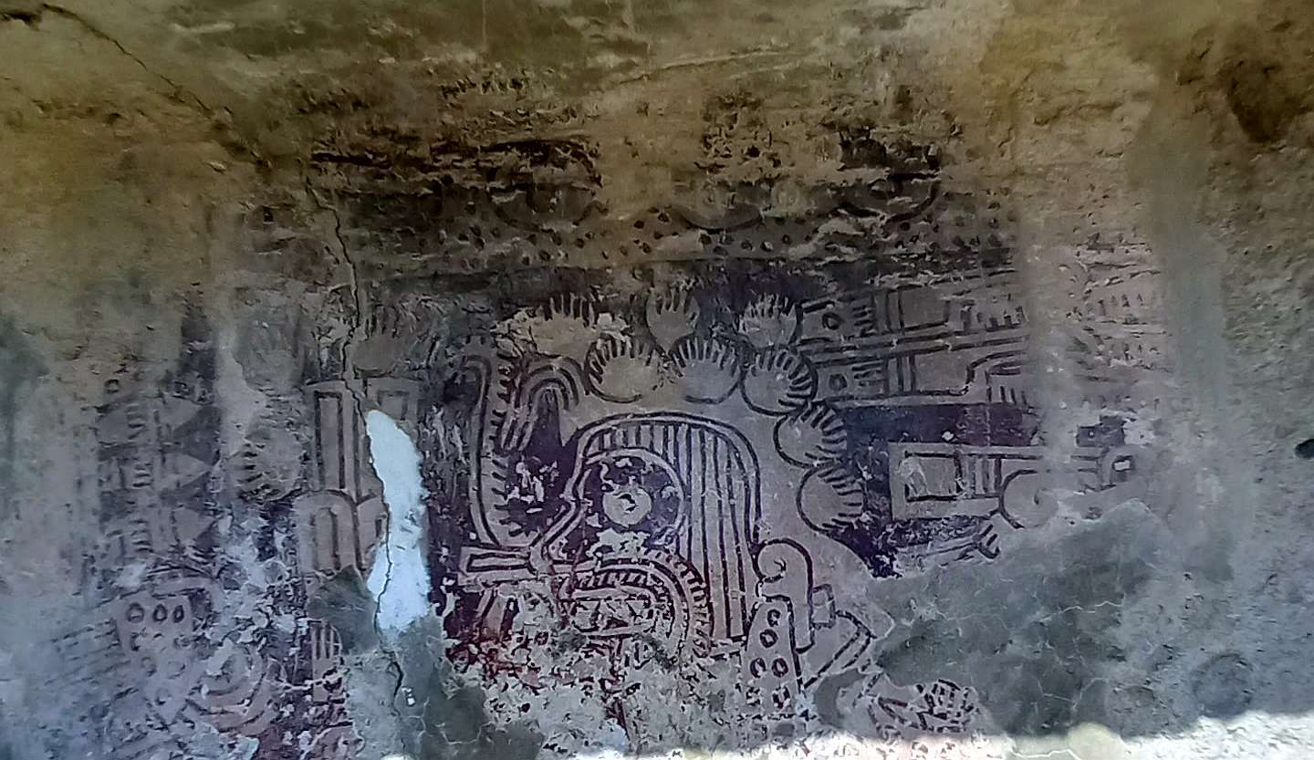 A guide at Yagul told us to be on the lookout for petroglyphs outside the gate to the archeological area. This was the only one we could find, some distance away on a small cliff face.