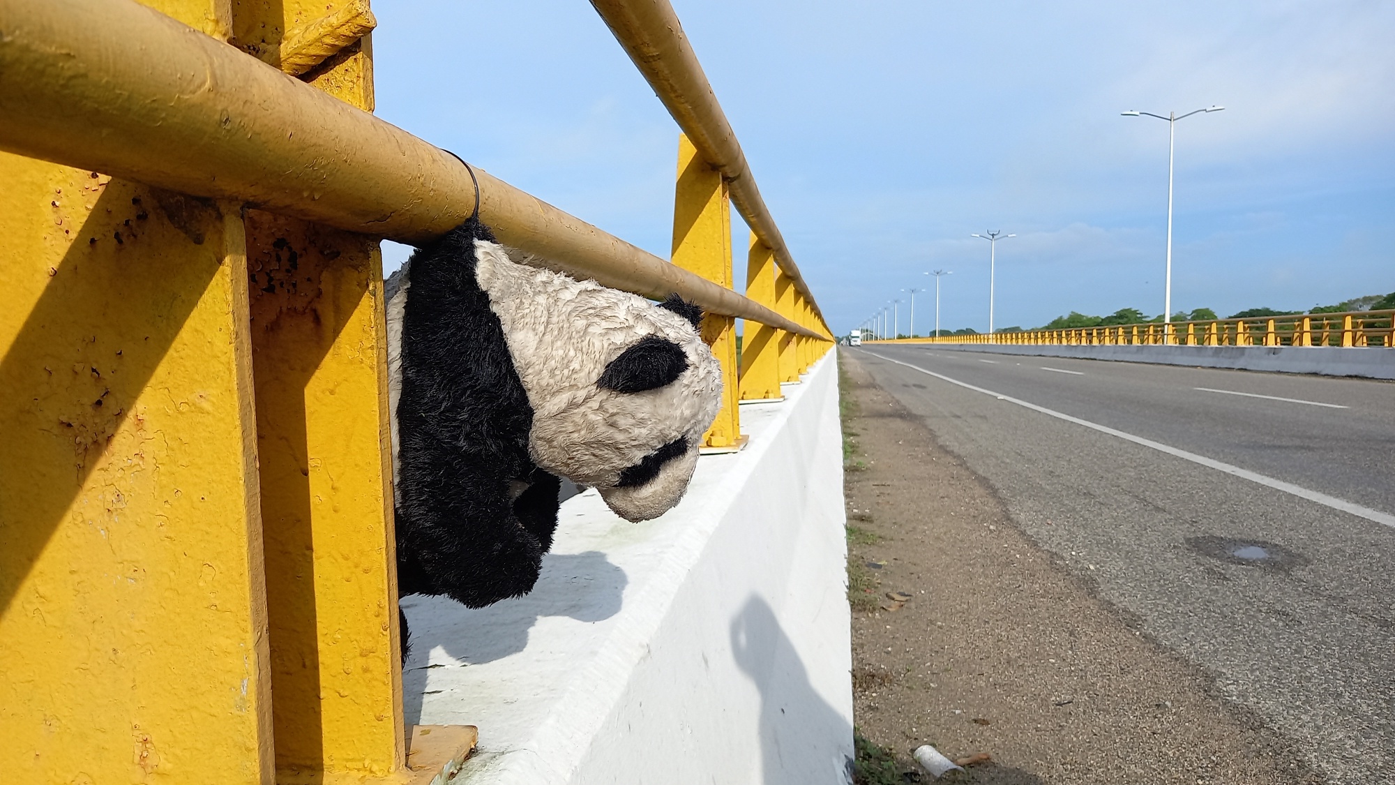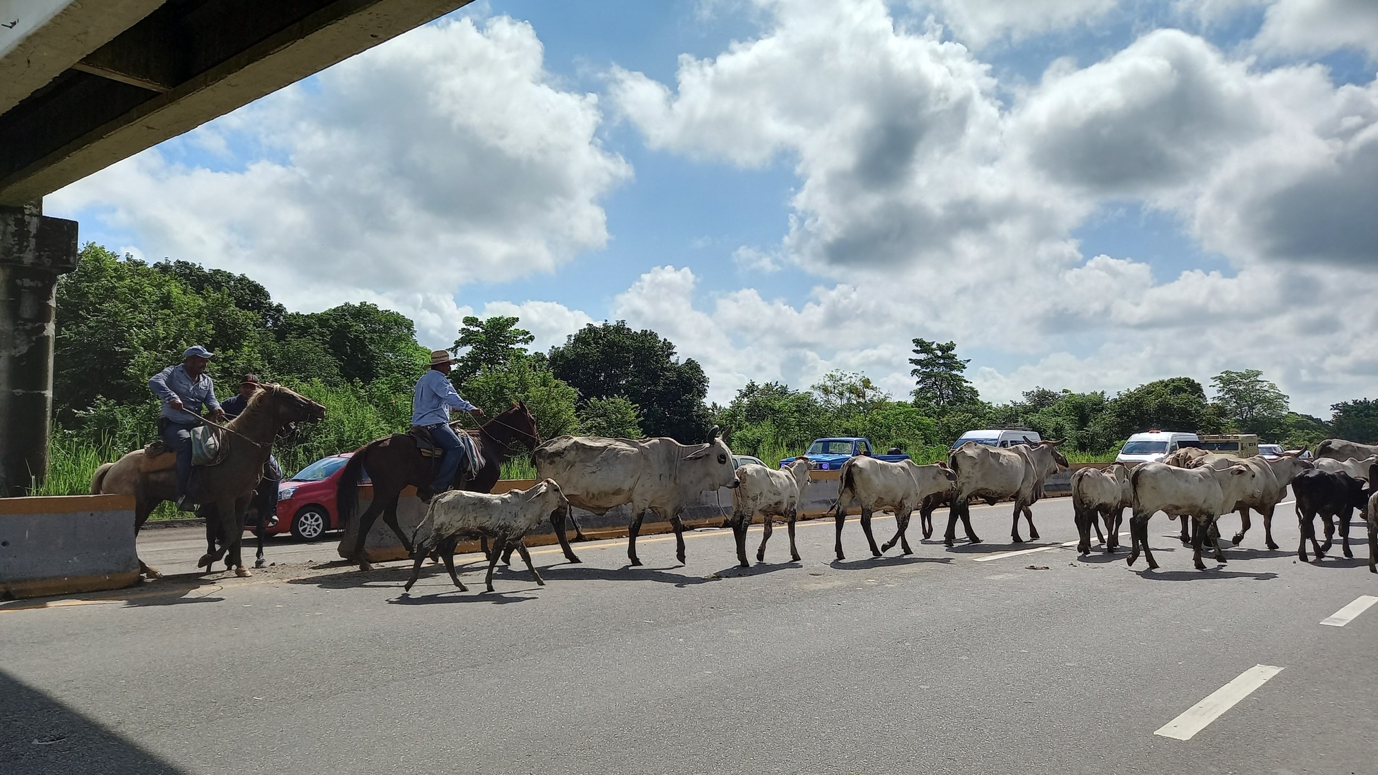 Then it was another boring ride along a somewhat busy road to the rather anonymous town of Macuspana. There wasn't much along the way to grab our attention, apart from a child's toy tied to a bridge, some cattle being herded and and a photo opportunity once we reached out hotel.