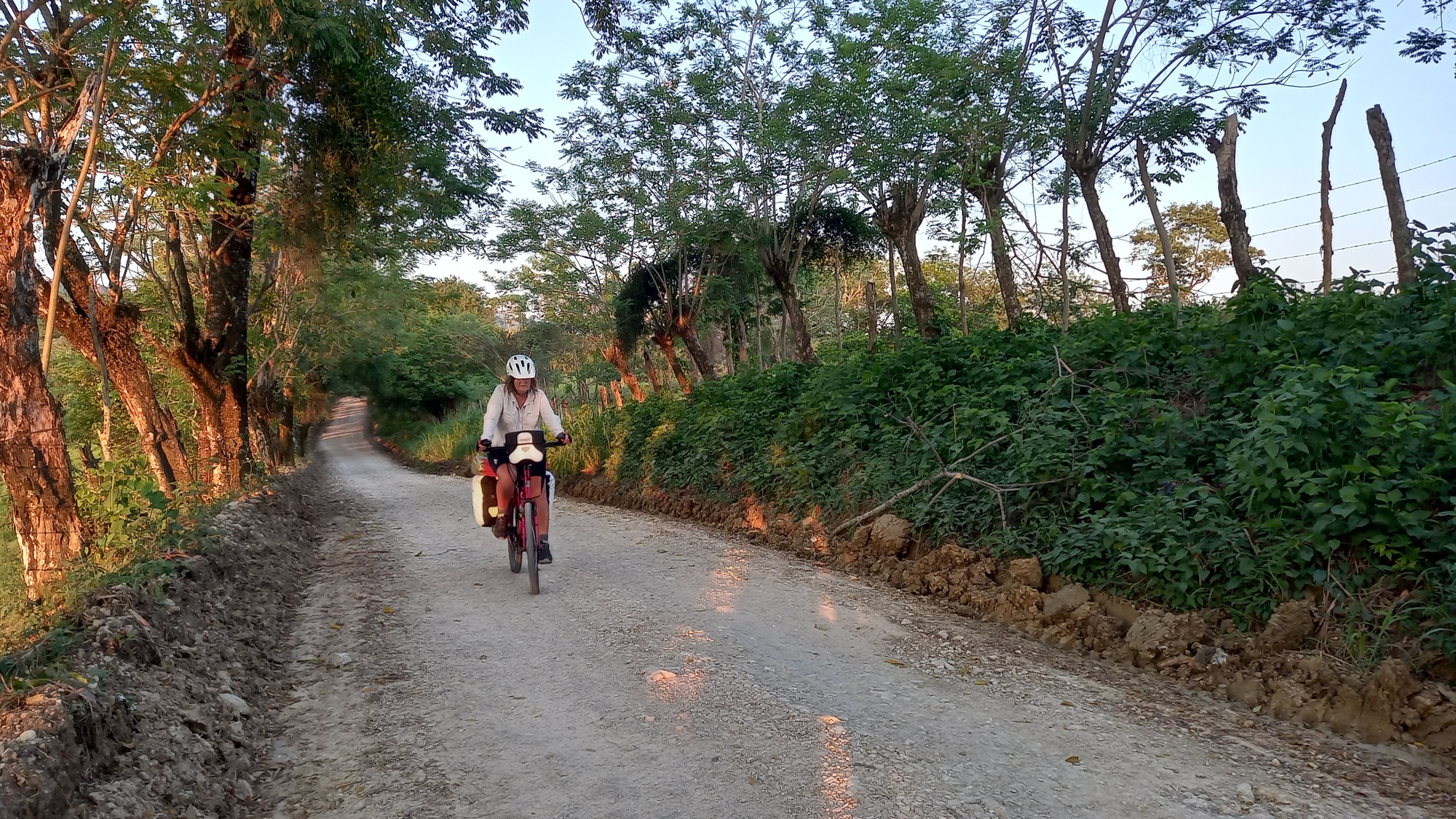Once back on the main road we battled the traffic and stiff climb until the road split with the one half of the fork going to San Sebastian and the other towards Guatemala. At this point the traffic got a bit lighter and we enjoyed some great cycling with a good surface and lots of shade. With more than an hour spent on our diversion, T now seemed a long way given how hot the day was predicted to become. The alternative was to split the journey into two days and spend tonight at Rio Chacamax where the accommodation option was limited to an apparently grotty hotel