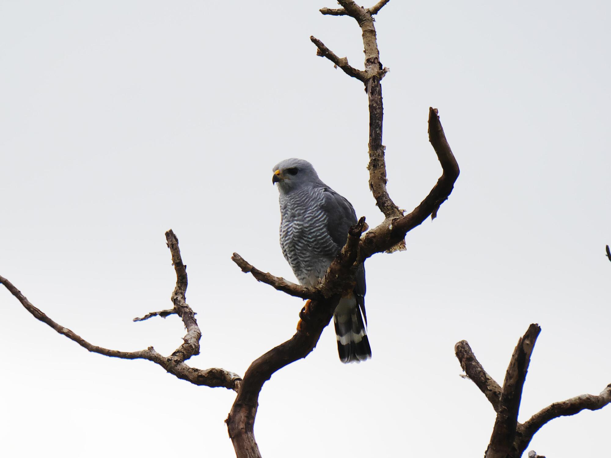 There was quite a bit of bird activity today but we weren't really up to it. The grey skies made photography difficult but we did pick up a new bird in Grey Hawk (Buteo plagiatus).