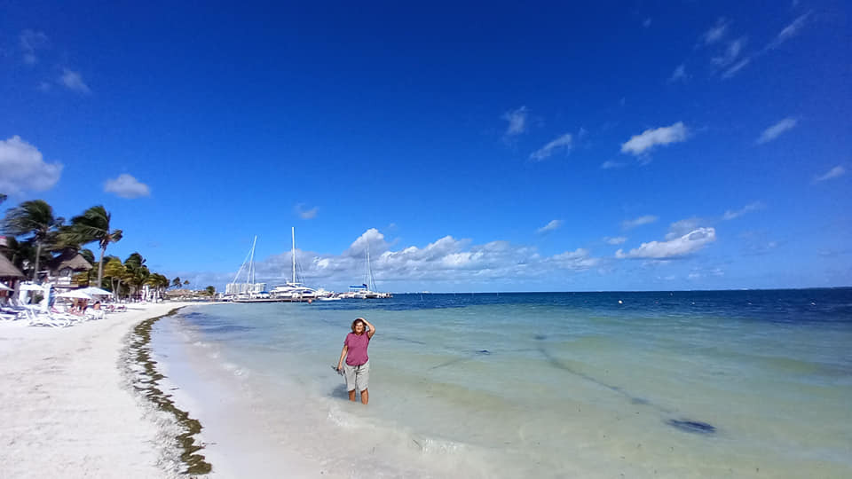Leigh had to dip her toes into the Caribbean.