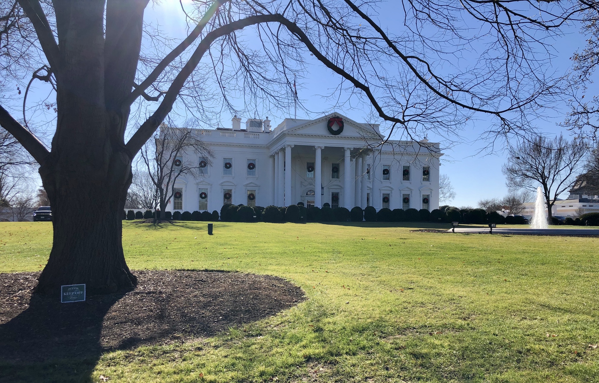 After leaving the visa application center, I grabbed a bite to eat and headed for the White House and the National Mall. I must say that our nation’s capital was eerily quiet on this Monday before Christmas. There was little traffic and I could easily cross streets against the light. The sidewalks were empty of the large school groups in matching T-shirts that I’ve always associated with DC, and the street vendors were scarce, lonely and shivering on this brisk and clear December morning.