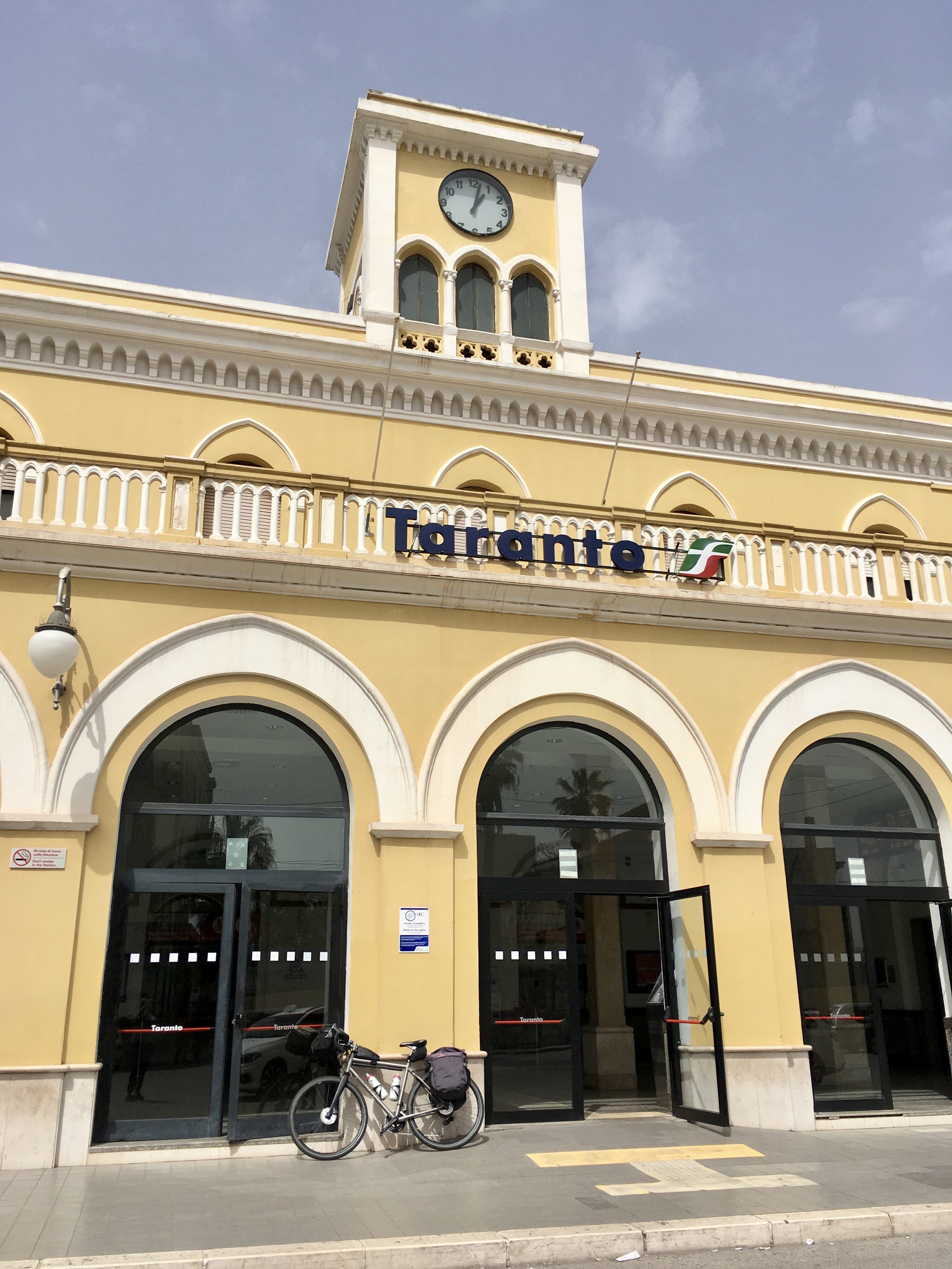 Today Vivien George and I set off for Taranto, to the start of our Puglia cycling tour. We were traveling by train and I must say it was the most stress free train trip we've taken together. Arriving at the train station, I noticed that they let folks enter the track area when they arrived at the station, before their track number appeared on the tote board. Thus, there was no mad scramble of waiting passengers to get through the ticket control point when the track number posted. In addition, I had pre-booked assigned seats in couch number 3, the bike coach, and waited dutifully under the Coach 3 sign as the train approached. Again, no frantic search for the bike logo on the side of the car, no scramble to the opposite end of the train when you've guessed wrong as to which end the bike car will be.