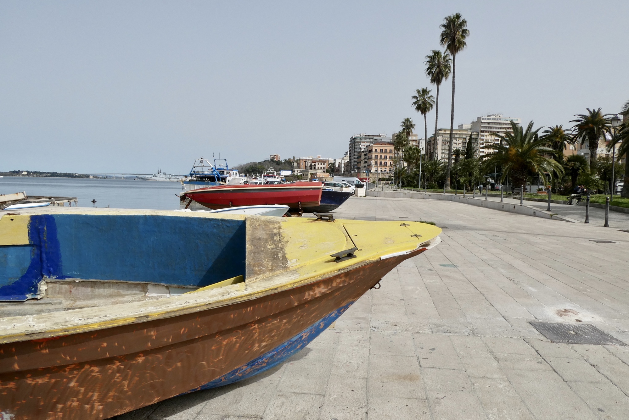 On arriving in Taranto I found that I had no internet connection - very puzzling as I just purchased a new European data plan for Italy and all worked fine in Naples. Since we've become so internet dependent, I was a little nervous about finding my hotel, where I would be able to get on WiFi and scope out the problem. But not to worry, I had a pretty good idea where the hotel was as I had mapped it onto my gps route. And it was right where I expected, easily spotted as I crossed the bridge from the train station. There was still almost an hour before check-in so I popped into the restaurant next door for what I deemed to be an excellent meal of linguini and shellfish. Later during check-in, the hotel receptionist told me the restaurant was "trash" and there were a number of excellent options along the waterfront. Okay... I quickly got the internet problem figured out and set off to explore the town.