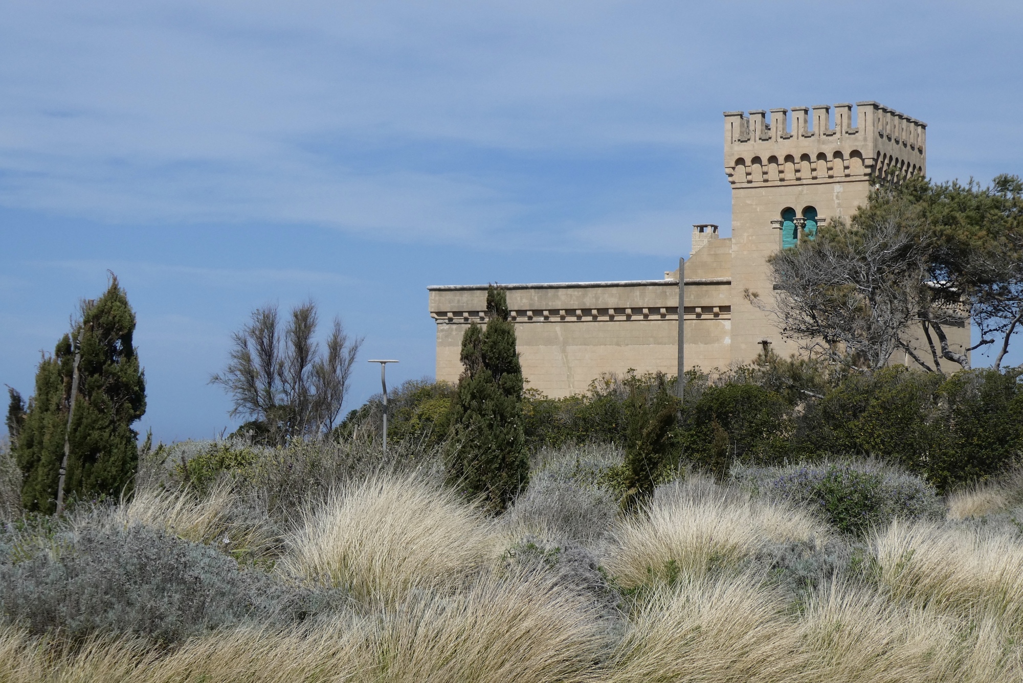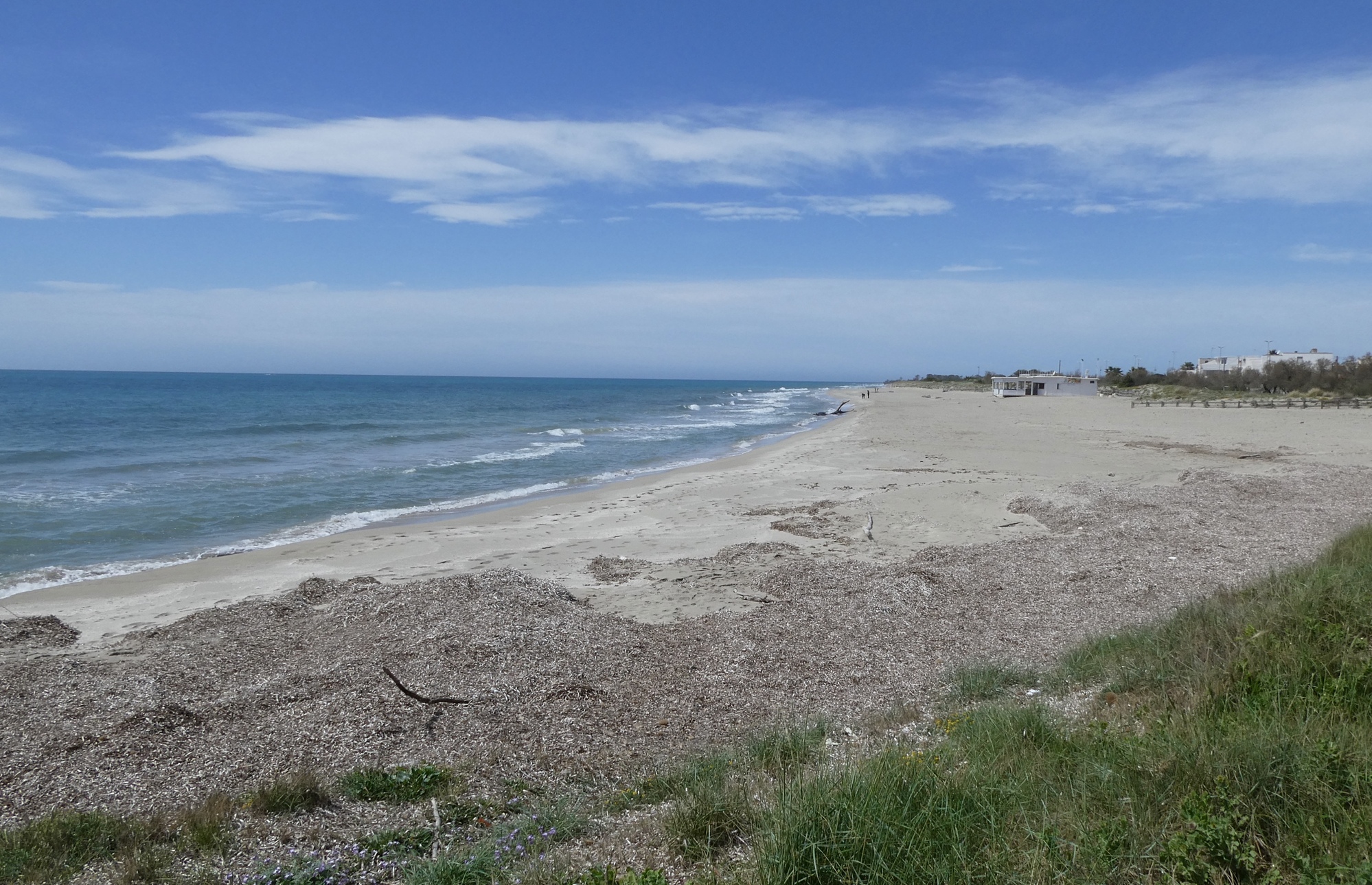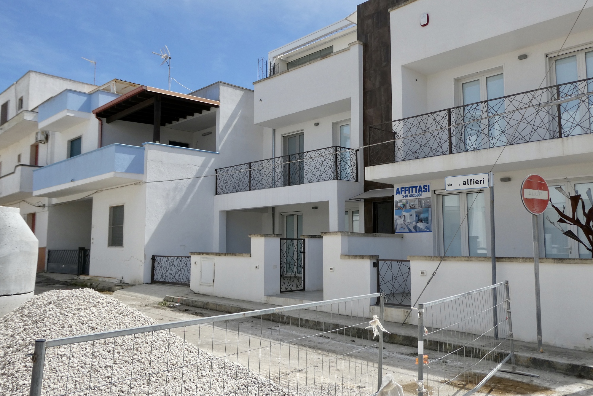 After Torre San Giovanni, the route stayed inland most of the way to Santa Maria di Leucca. The wind had picked up quite a bit and was now more southerly. The ride was becoming a bit of a slog – no lovely coastline or scenery to distract from the stiff headwind. I was in need of sustenance and a little rest, and so detoured into the small coastal town of Torre Mozza. I cycled down a small road before reaching a barrier at what appeared to be a construction site. Indeed, the whole town looked as if it had just been built – row after row of new condominiums and town houses. There were a few buildings along the shore that appeared to be longer standing, but they were all closed up. It seems to be a town awaiting a tourist boon, or perhaps a vacation/retirement spot for landlocked Italians. I found a bench by the sea, ate my ham and cheese “breakfast” sandwich, and hypothesized possible futures for this small little ghost town. A bit refreshed, I made my way back to the original route.