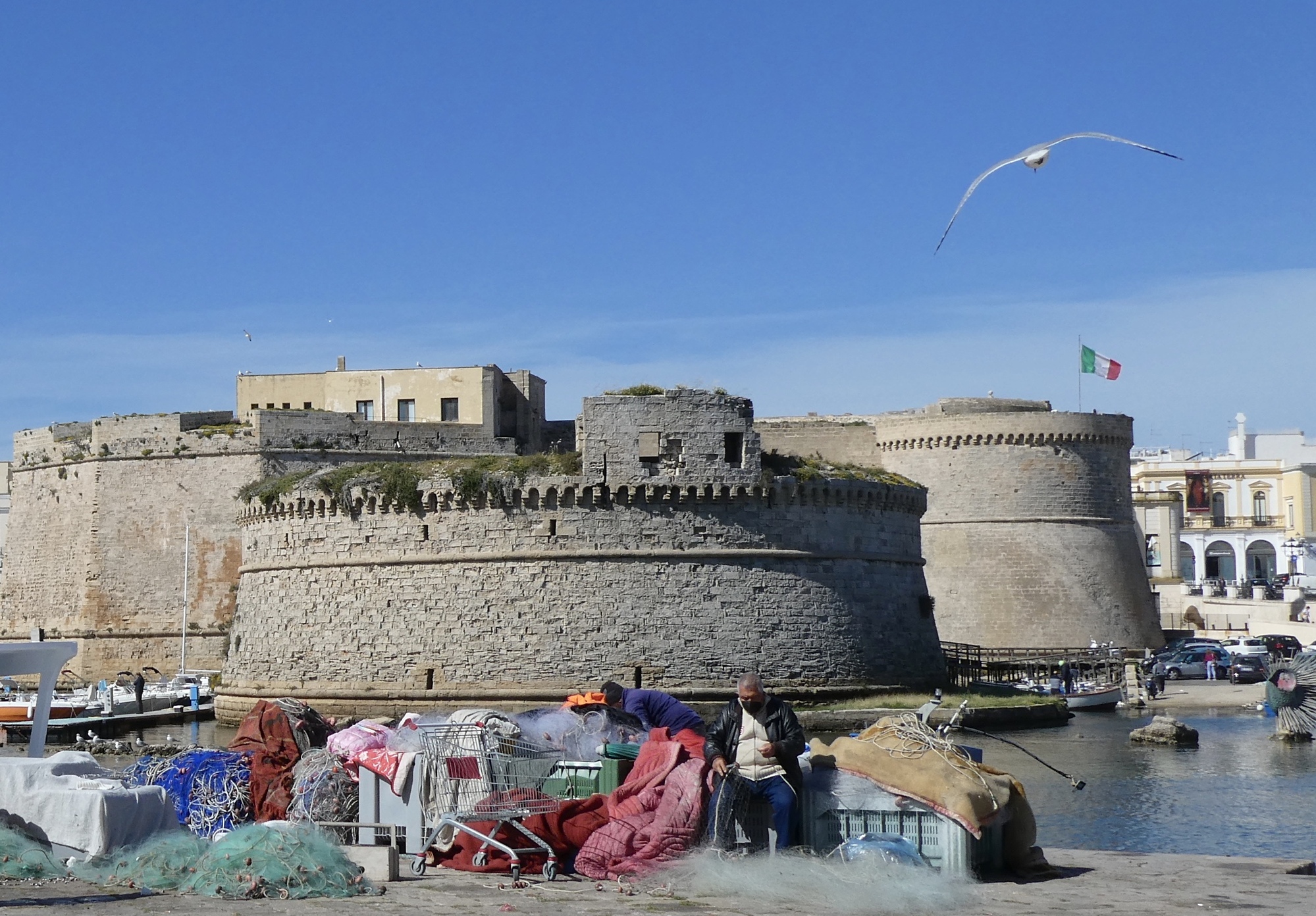 There was a lot of activity along the waterfront this morning, mending of nets, selling of fish and sea urchins, casting about for the next big one. The route started on a nice bike path as it wrapped along the coastline south of Gallipoli and then alternated between inland and coast until reaching Torre San Giovanni, about 15 miles south of Gallipoli.