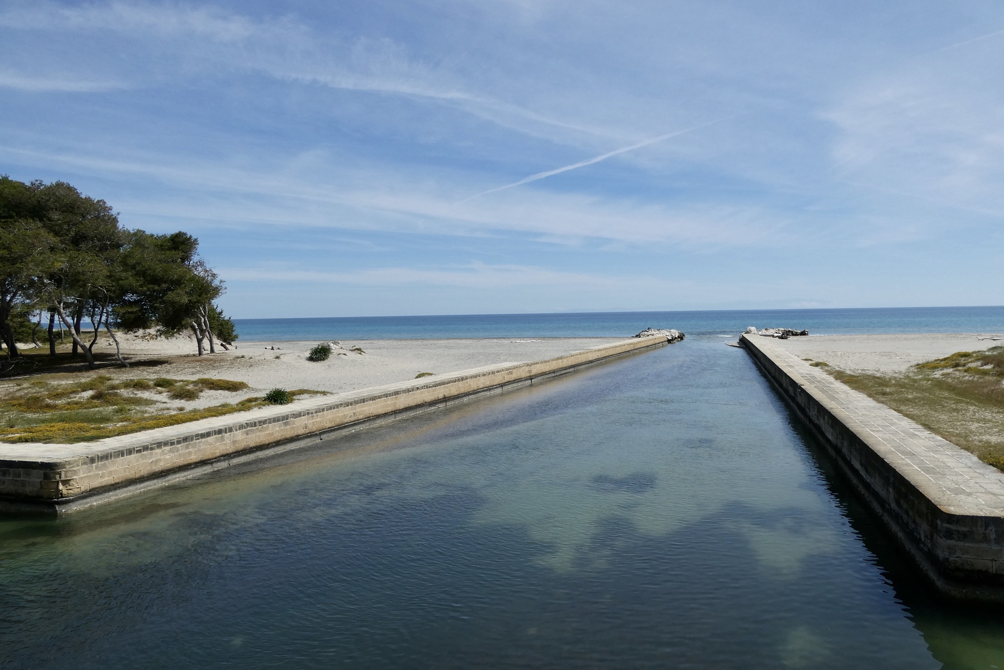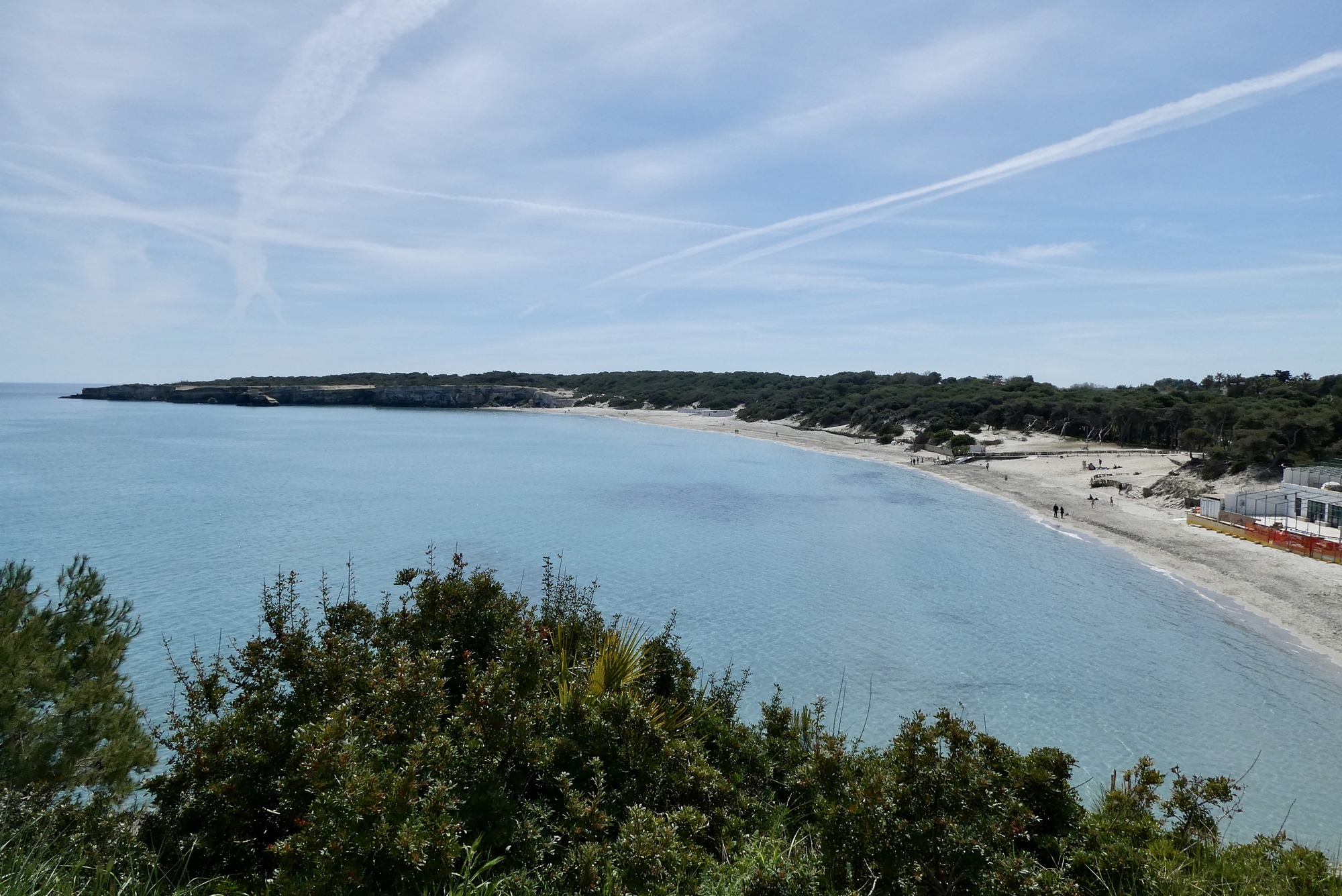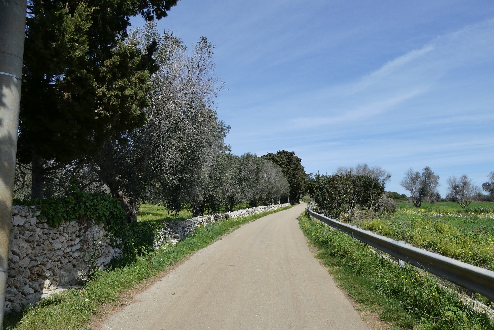 The destination today was Lecce, known as the Florence of the South it is city renown for its baroque architecture. It was a short day, and with few exceptions was fairly unremarkable. The first ten miles were inland, initially on cycle roads and then on a low traffic state provincial road. There was one brief sea sighting along the way, at Ponte dei Laghi Alimini, where the waters of the Adriatic flow into Lago Alìmini Grande.