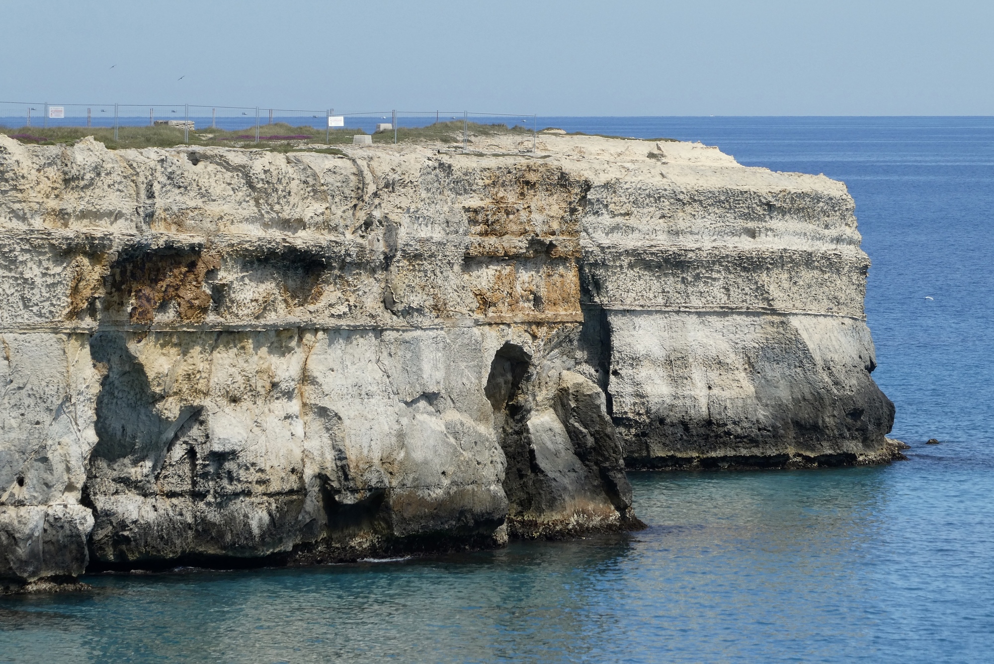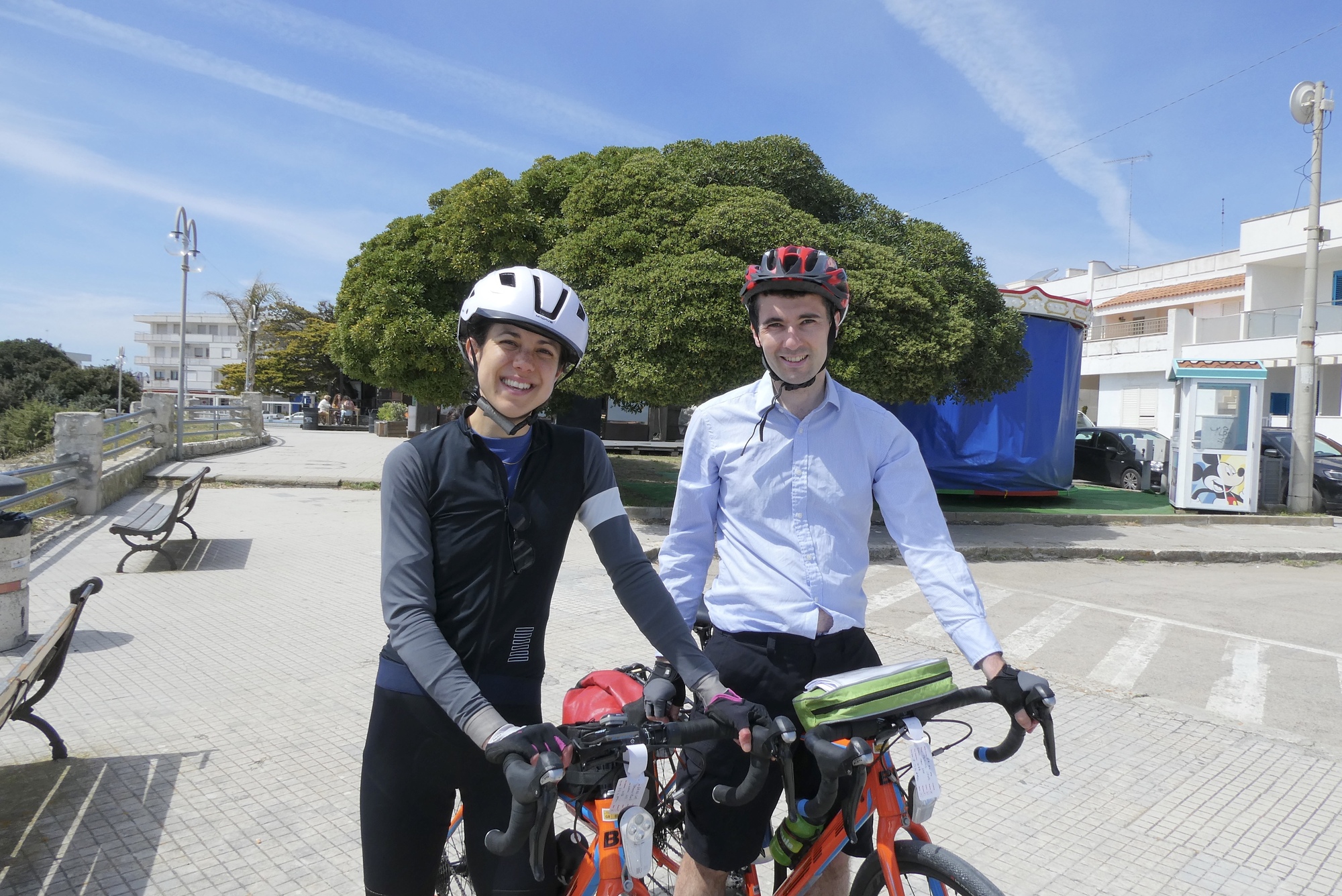 I finally reached the coast at Torre del’Orso, a fairly lively town with a nice sandy beach along the cove. Although I’d been layered up most of the morning, there were several young boys splashing about in the sea. The scene called to mind the two cyclists I’d met this morning who’d gone for a morning swim before checking out of the hotel and heading to Lecce. And just like that, there they were - Helena and Edmund, young Brits from Winchester on a 5-day self-guided tour of Puglia. Along with the usual topics of conversation, Helena pointed out Albania, it’s snow-capped mountains barely visible on this partly cloudy day. And she shared the interesting fact that snow was once brought over on ships from Albania to Puglia. Indeed, a later google search affirmed her story - in the 18th century snow was shipped over, stored in cisterns, and used to cool medicines.