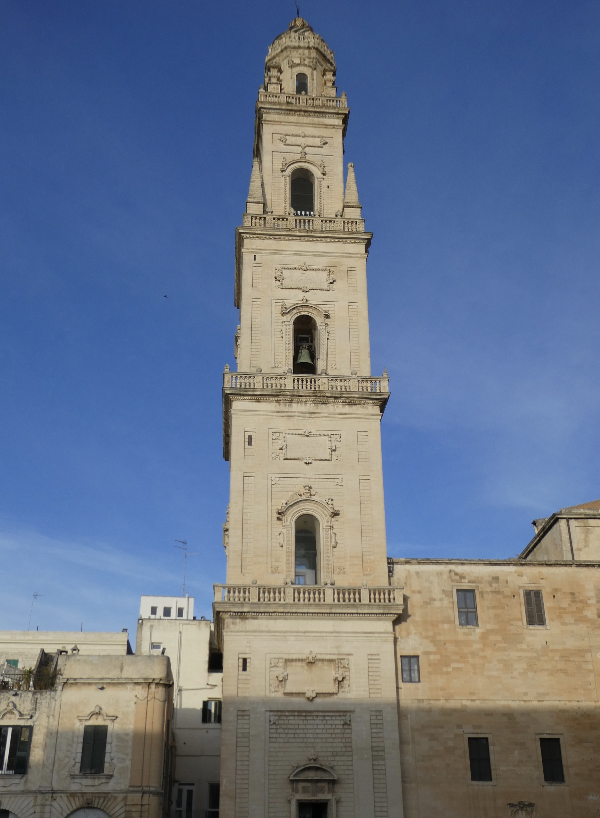 The conundrum is that I do enjoy learning about the origins and history of a place, of appreciating the finer details of great cathedrals, art and artifacts. So today, I took an organized walking tour through the streets of Lecce. It was a new experience. I learned much about the history of Lecce and the many cultures who once ruled here. I came to appreciate baroque architecture as more storytelling and theatre than religion, fascinated by the stories embedded in intricate façade of Basilica di Santa Croce. And I garnered numerous small bits of lore that I’ll probably remember far longer than the name of Basilica di Santa Croce – such that railings on Italian balconies are curved outward at the bottom to accommodate the shape of women’s dress skirts.