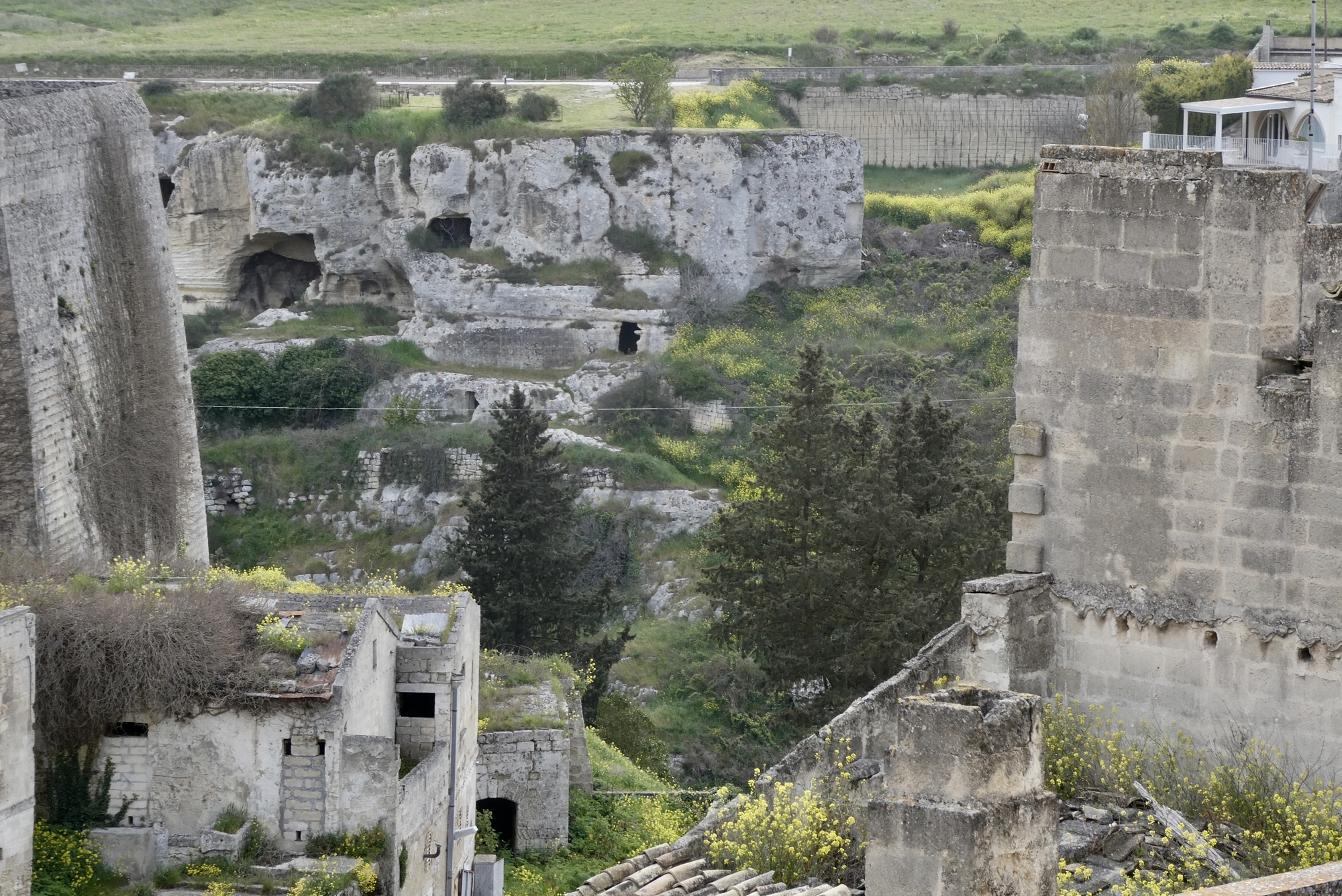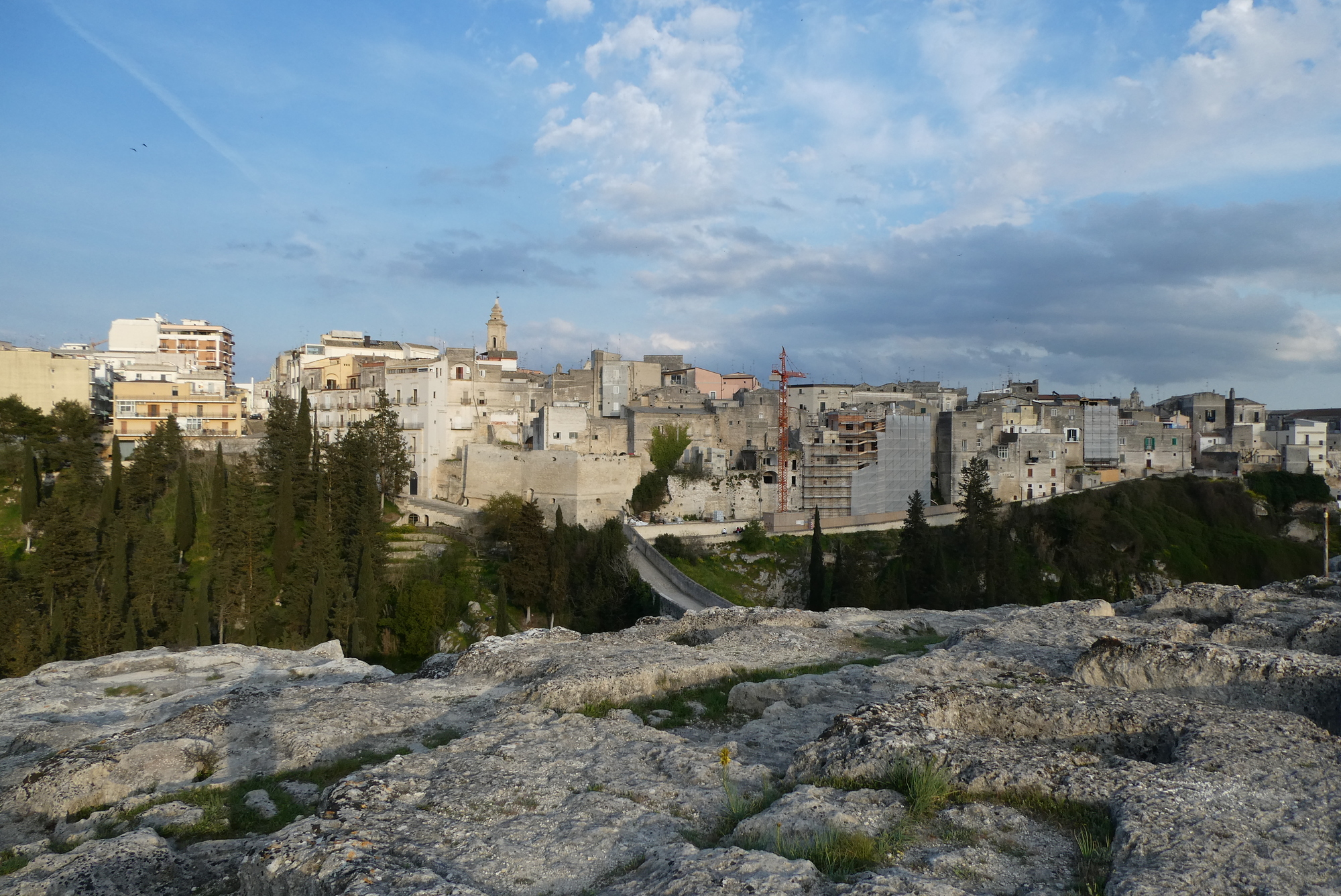 View of Gravina in Puglia from Botromagno Hill. Notice the lack of any barriers to keep you from plunging into the ravine, either accidentally or on purpose