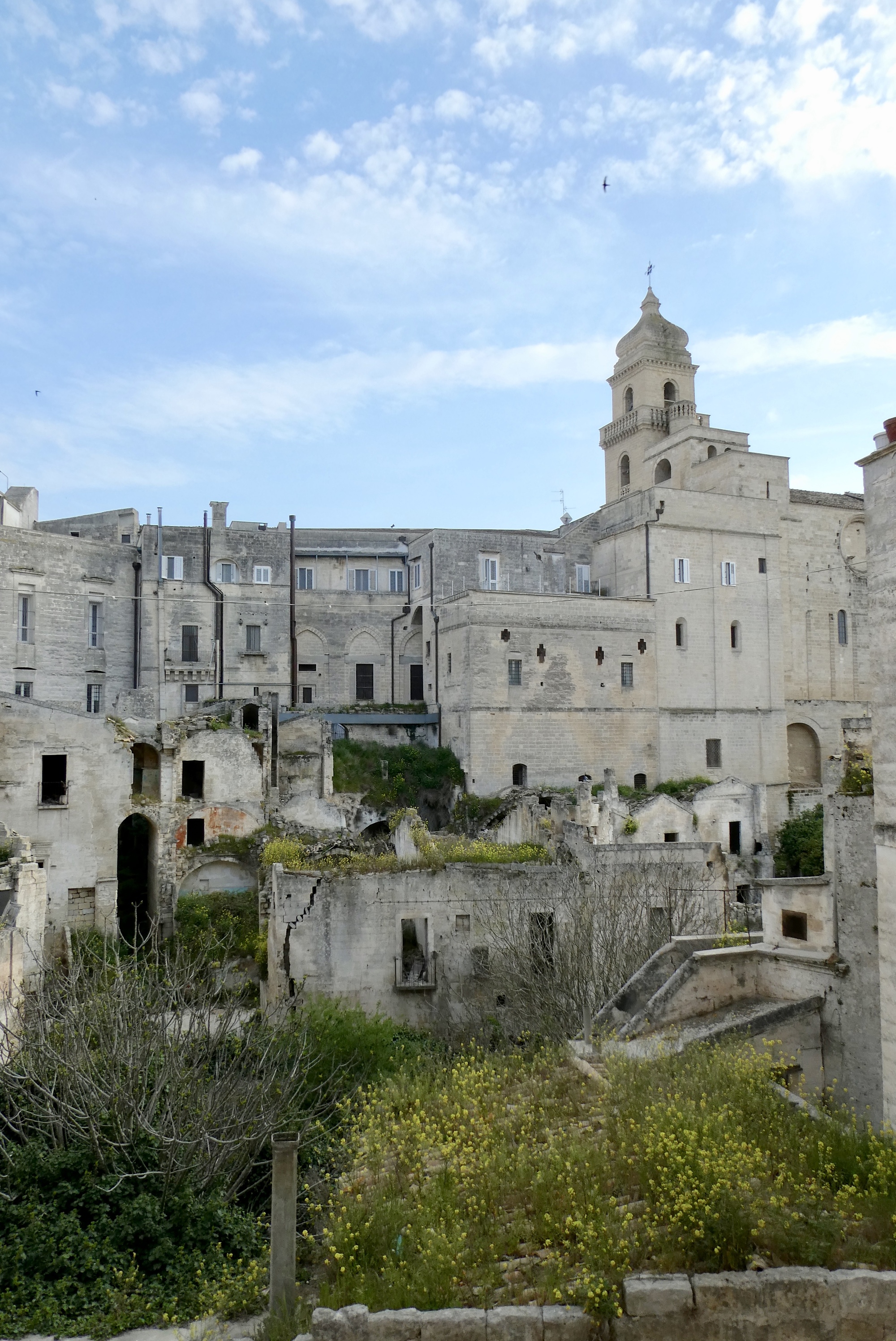 The old town is a maze of narrow, stone-paved streets that twist and turn at all angles, often leading to small plazas with multiple outlets. Almost every car has evidence of a too-close encounter with another vehicle, wall, or building. The town features several churches of historical interest, notably the Basilica Concattedrale di Santa Maria Assunta, (Gravina Cathedral) and the Chiesa Rupestre di San Basilio, (Saint Basilio Cave Church). Short on time, I visited neither
