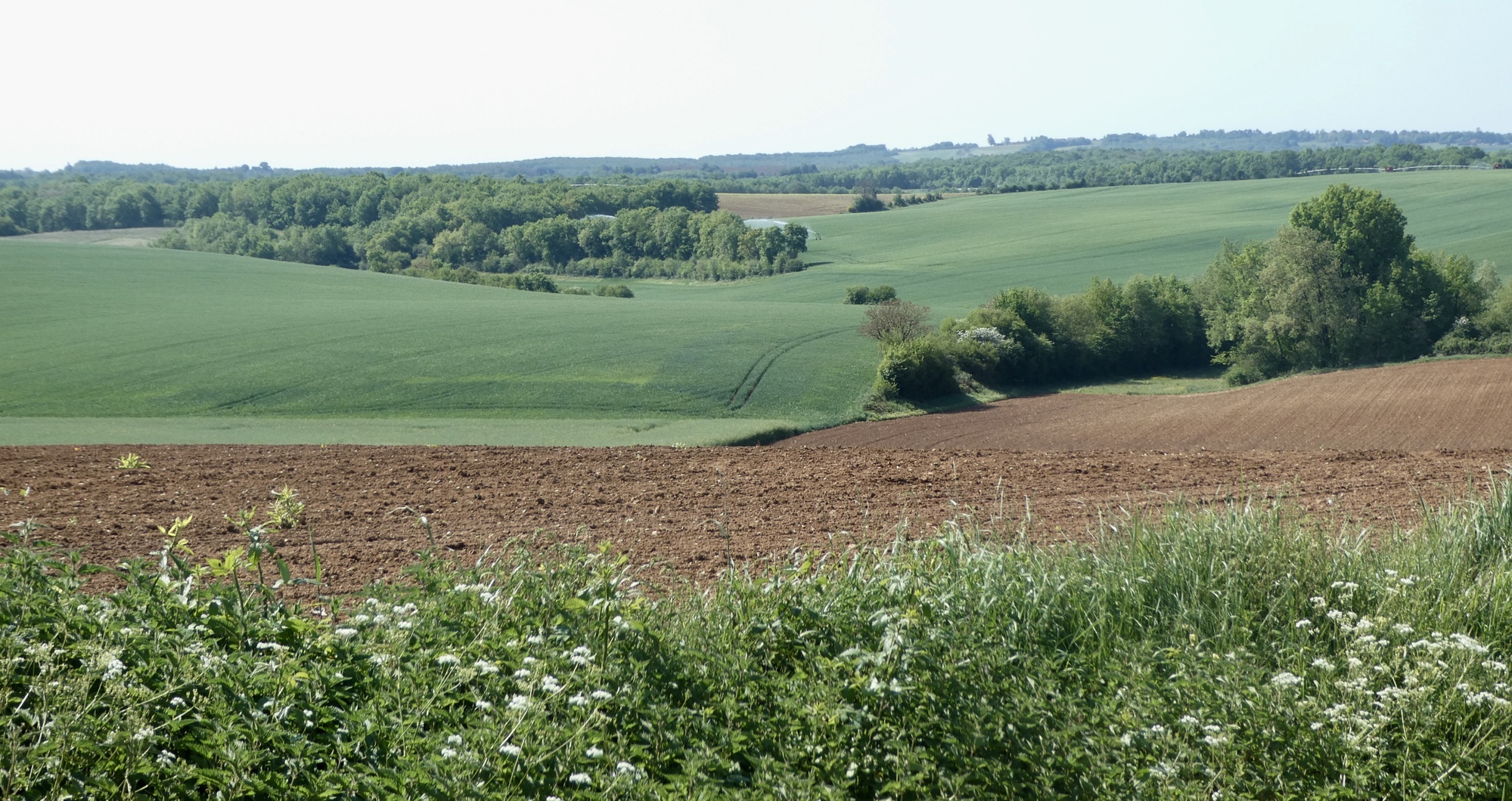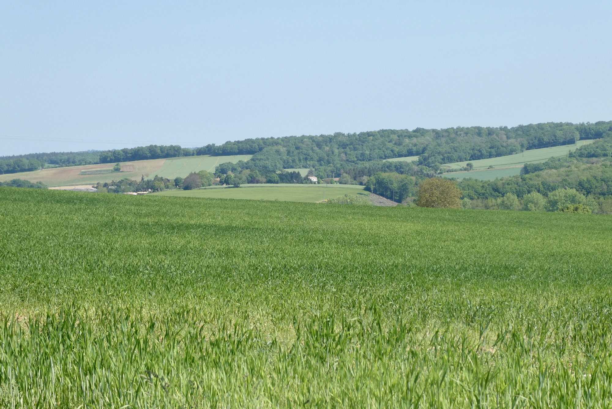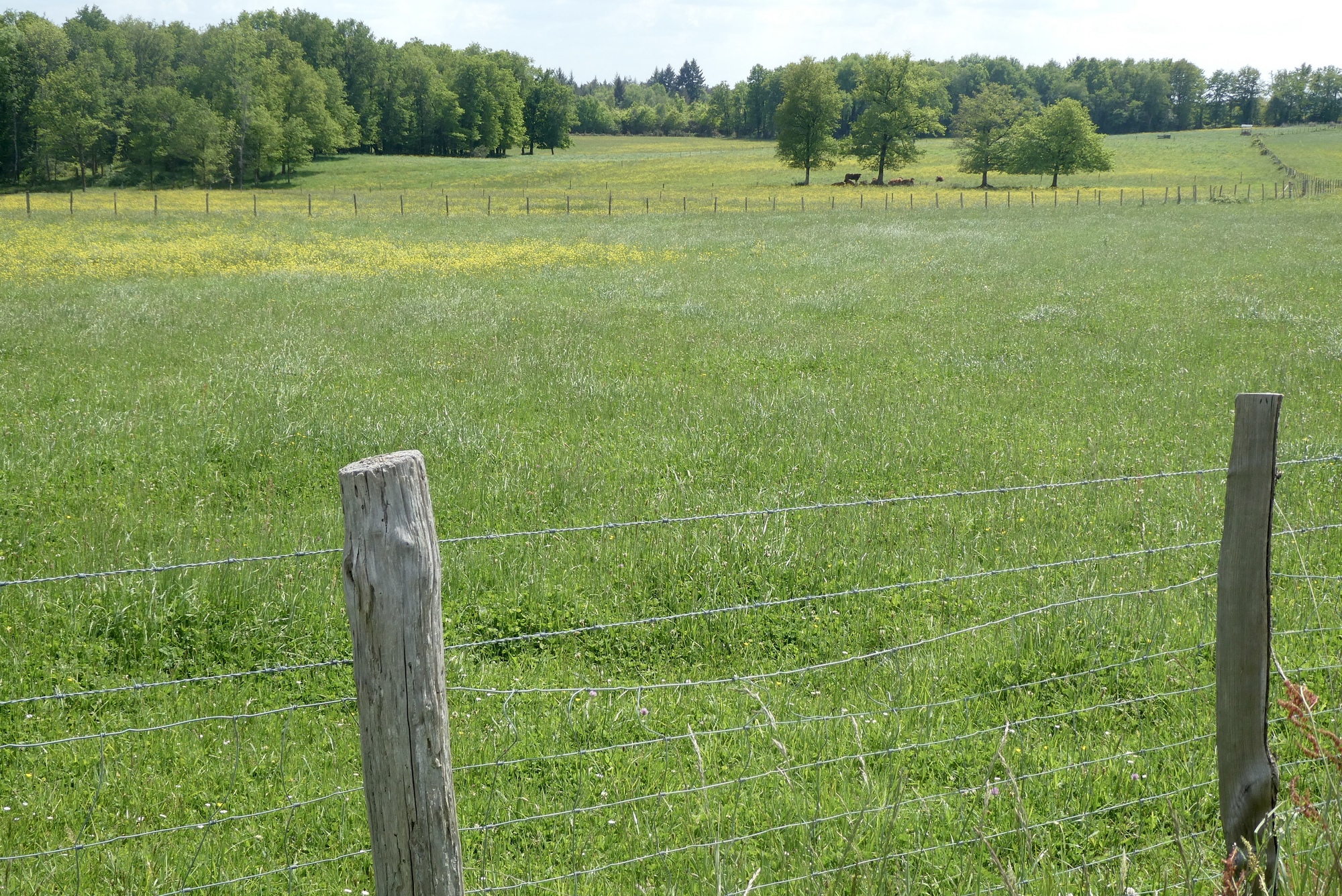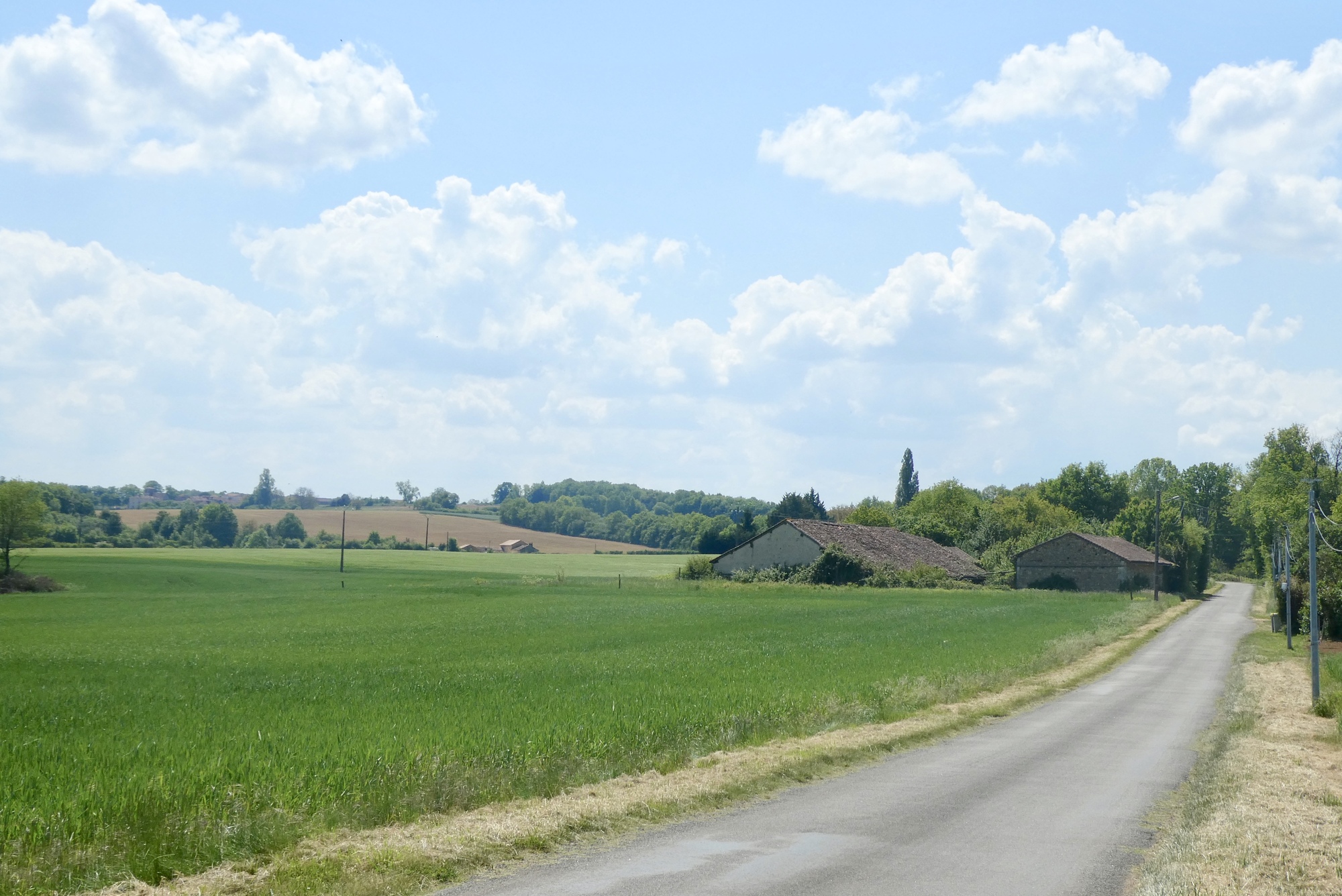 From my little online research, the Périgord-Limoiusin regional park was created in March 1998 and is located on the northwestern outskirts of the Massif Central. Covering over 1800 sq km, it has a diverse landscape of agricultural fields and wooded areas that flank the western foothills of the Massif Central. As I am learning in real life, most of the ridges/foothills seem to run north-south, so my travels eastward necessarily entail a lot of ups and downs, through woods, fields, and farmland.