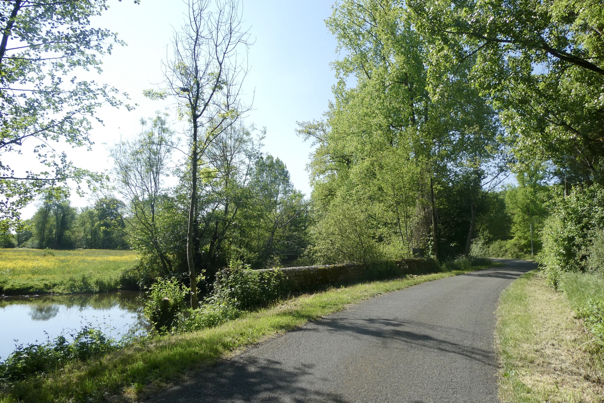 Unlike national or state parks in the US, most of the land in the French regional parks is privately owned. Small towns are scattered throughout and, less often, larger cities. People live and work in the park, but today everyone seemed to be enjoying Victory Day and traffic was extremely light. Although I usually seek out the smaller roads when designing my routes, I found myself enjoying the low-traffic larger roads with their gentler ups and down. However, the bigger roads tend to be less interesting and it was nice to be back on the small byways for the last twelve miles – more work, but more fun.