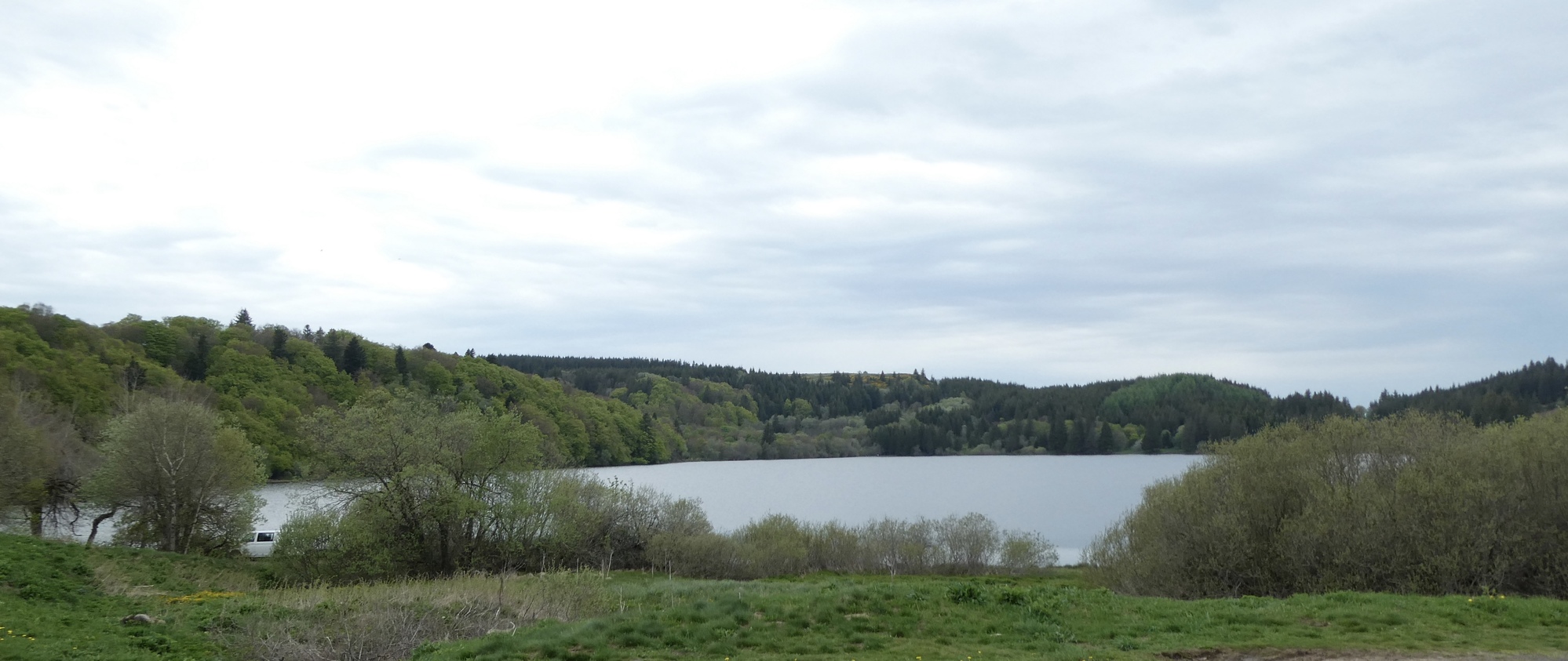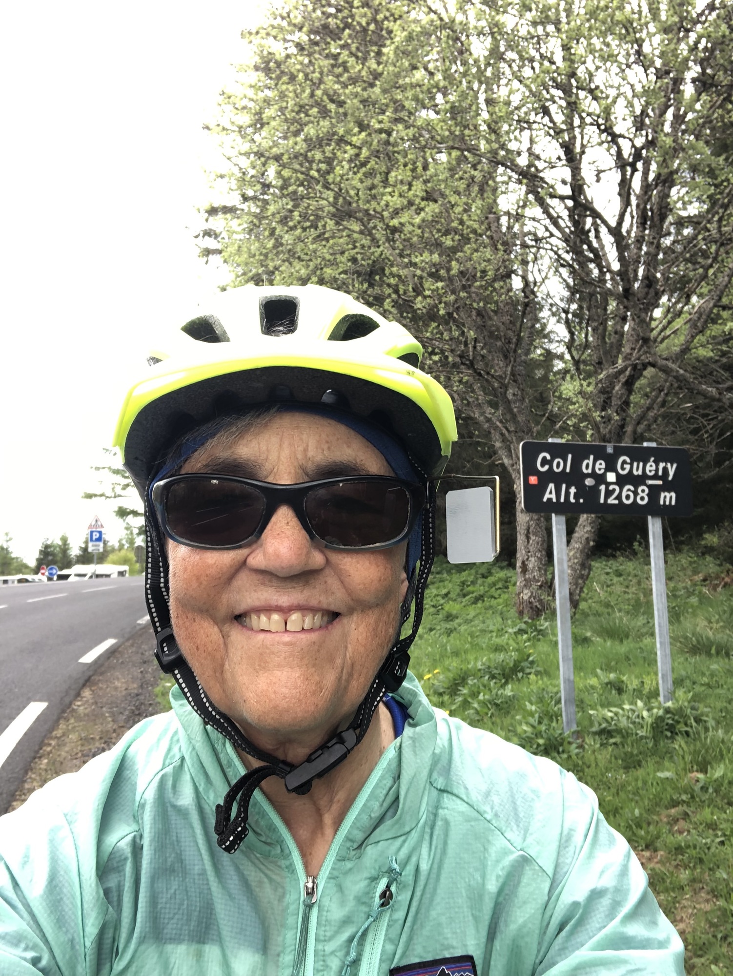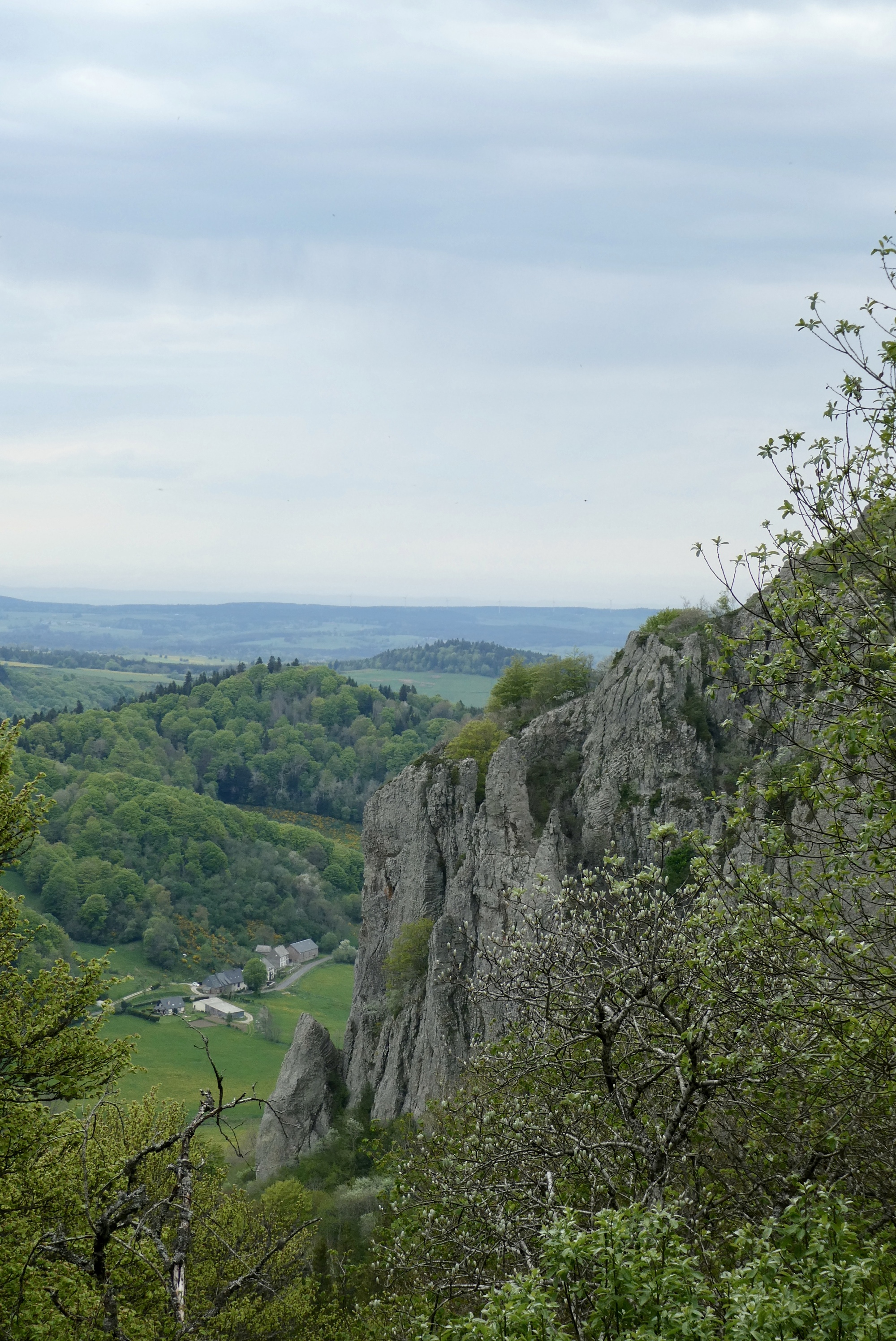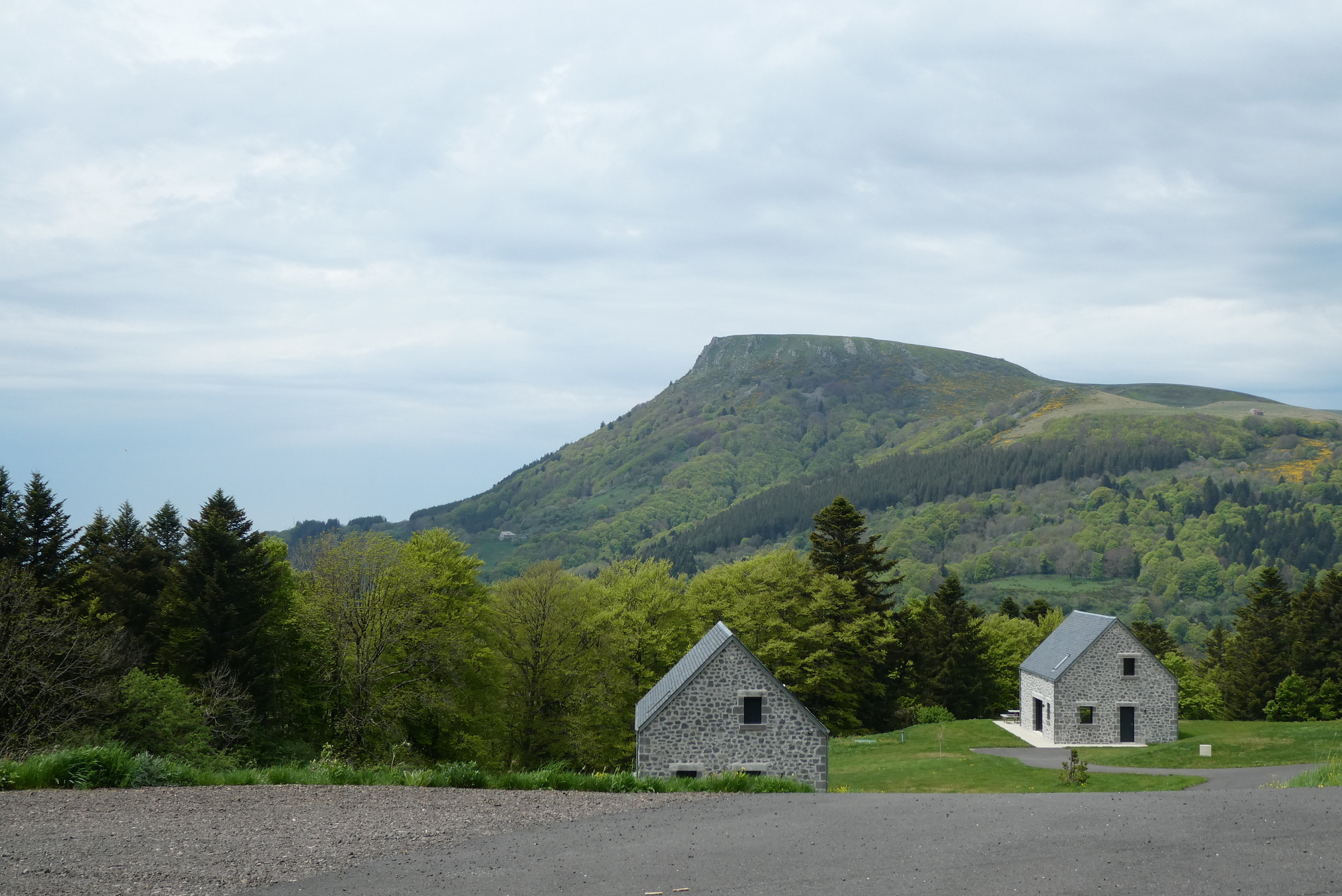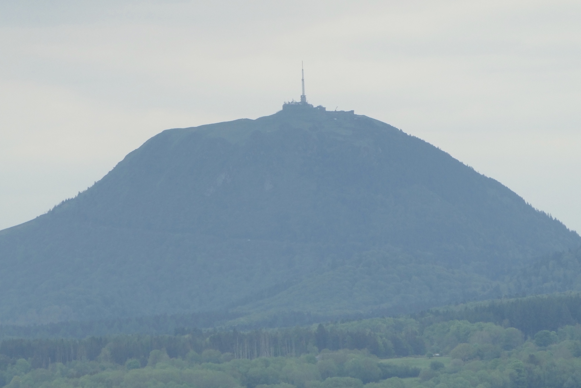 The climb continued on past Mont-Dore, on an excellent road that had no doubt been spiffed up for the 2020 TdF. Most of the route was tree-lined but occasionally opened up to a one of volcanic cinder cones that give the park its name. After five miles I reached Lake Guercy, a wonderful fishing lake formed millions of years ago when lava flow blocked one of the high mountains springs. After a just bit more climbing I came to the top – and was delighted to find I’d ascended the Col de Guercy - I'd obviously done little of my own research on today's route. Thus, when I started downhill I almost passed by the parking lot populated with tour buses, deciding only at almost the last minute to pull into a viewing area. And boy am I glad I did – an unbelievable view over the valley dominated by the volcanic cone Roches Tuilière and Sanadoire. I was gobsmacked.