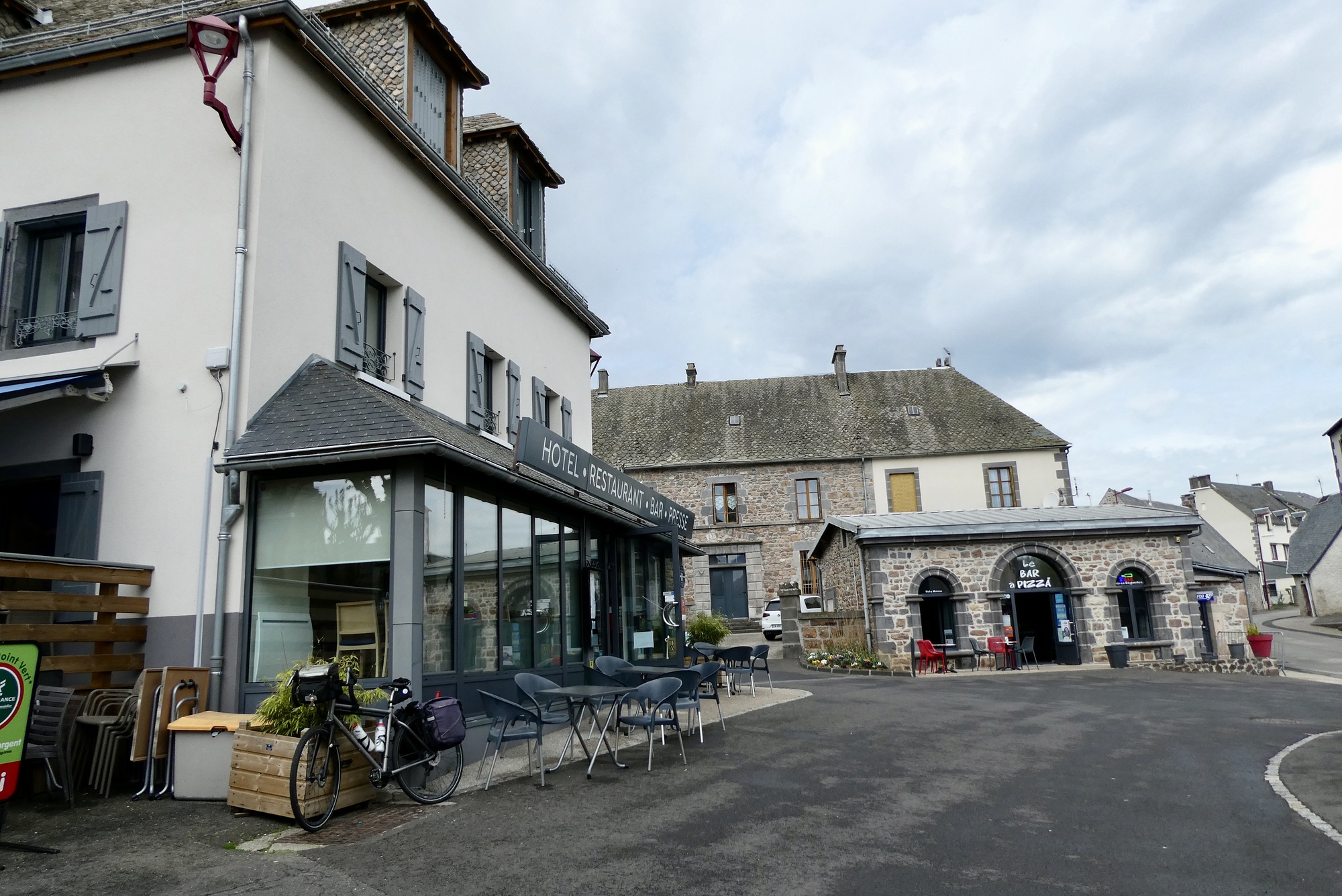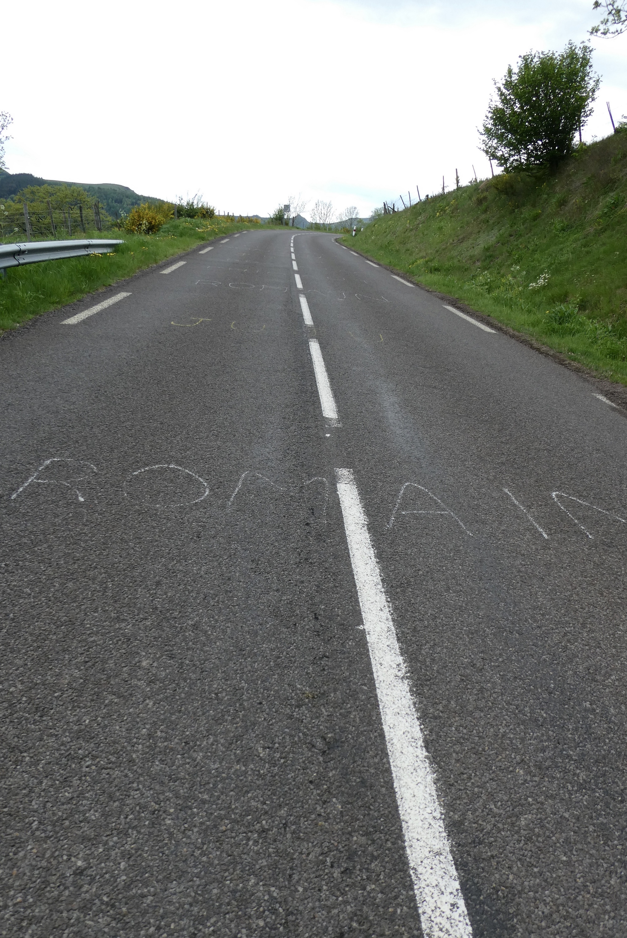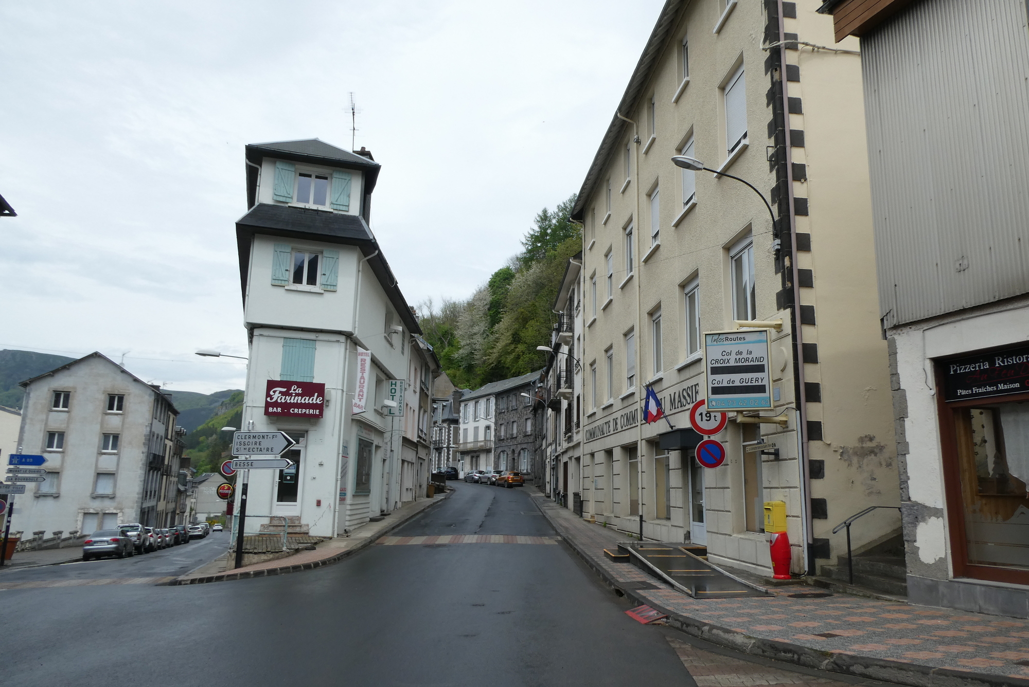 The five mile descent through the valley to Orcival was a sheer delight, both in terms of the ride and the views. It was a low-traffic route taken by the TdF on their up the Col de Guercy and the roads still bore the words of support for the French rider Romaine Bardet. The small town of Orcival was just a dip and bend in the road as I kept heading down to my Logis hotel at a small crossroads in the middle of nowhere. The rain held off until I was about a mile from the hotel - I could have stayed completely dry had I taken few photo stops - but the real downpour did not begin until I was safely inside.