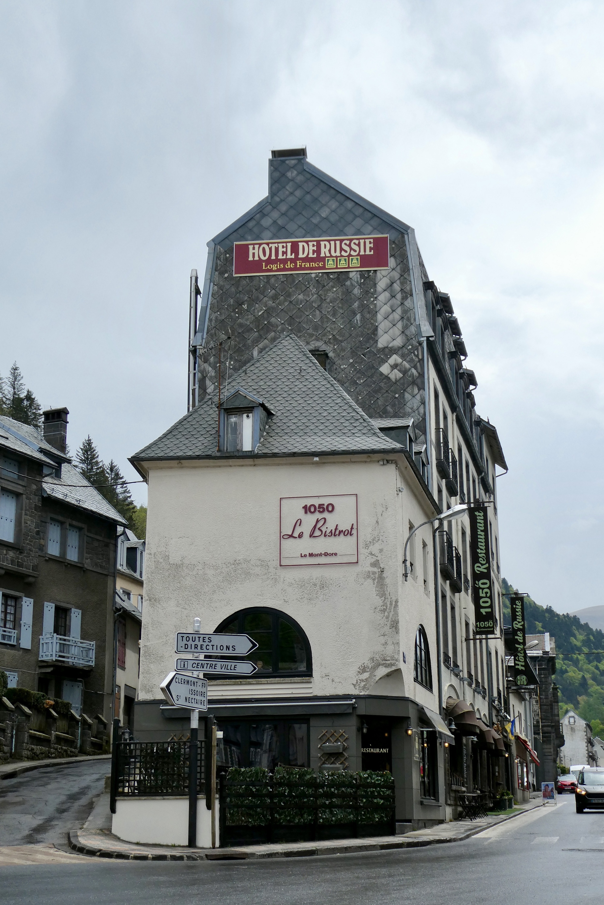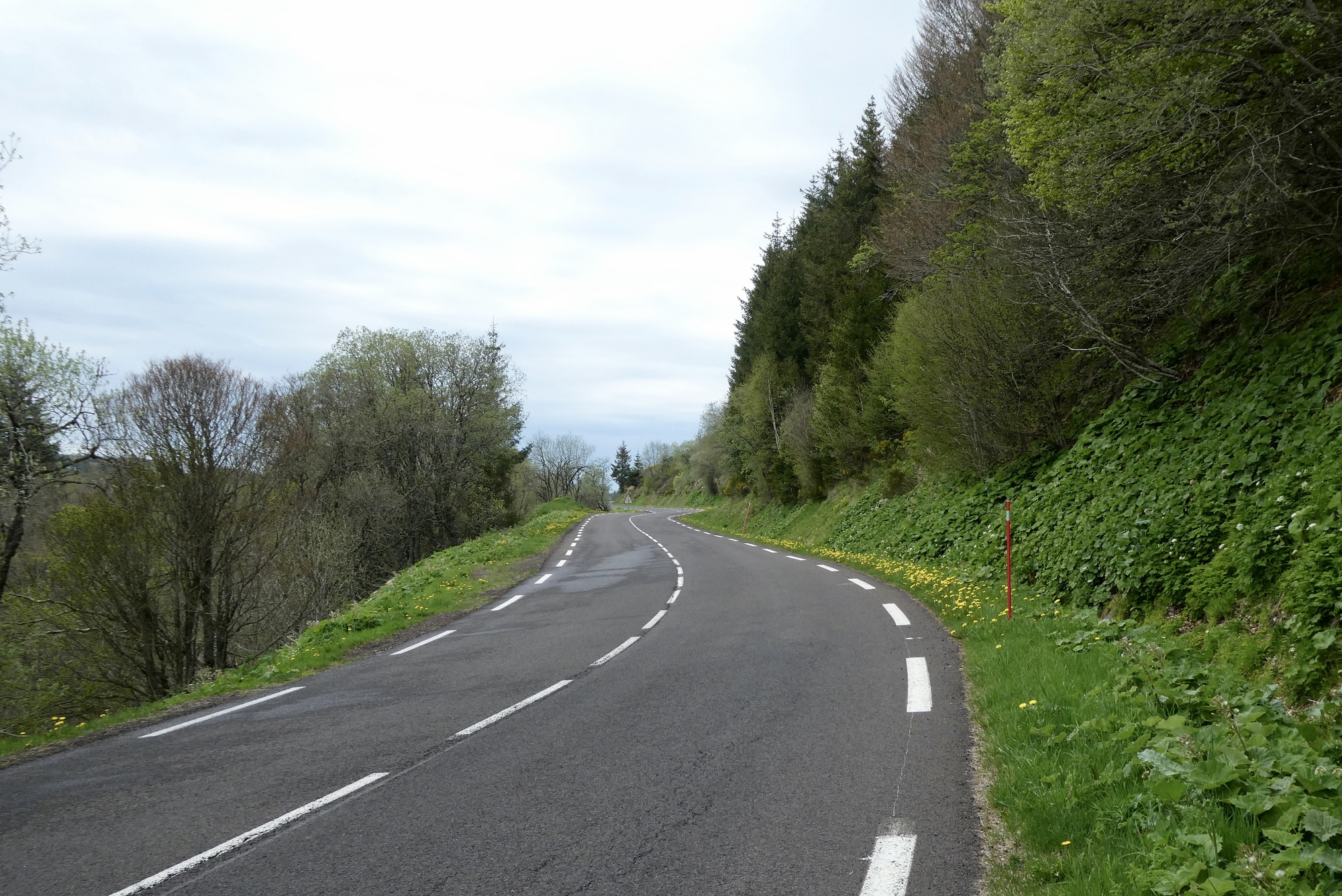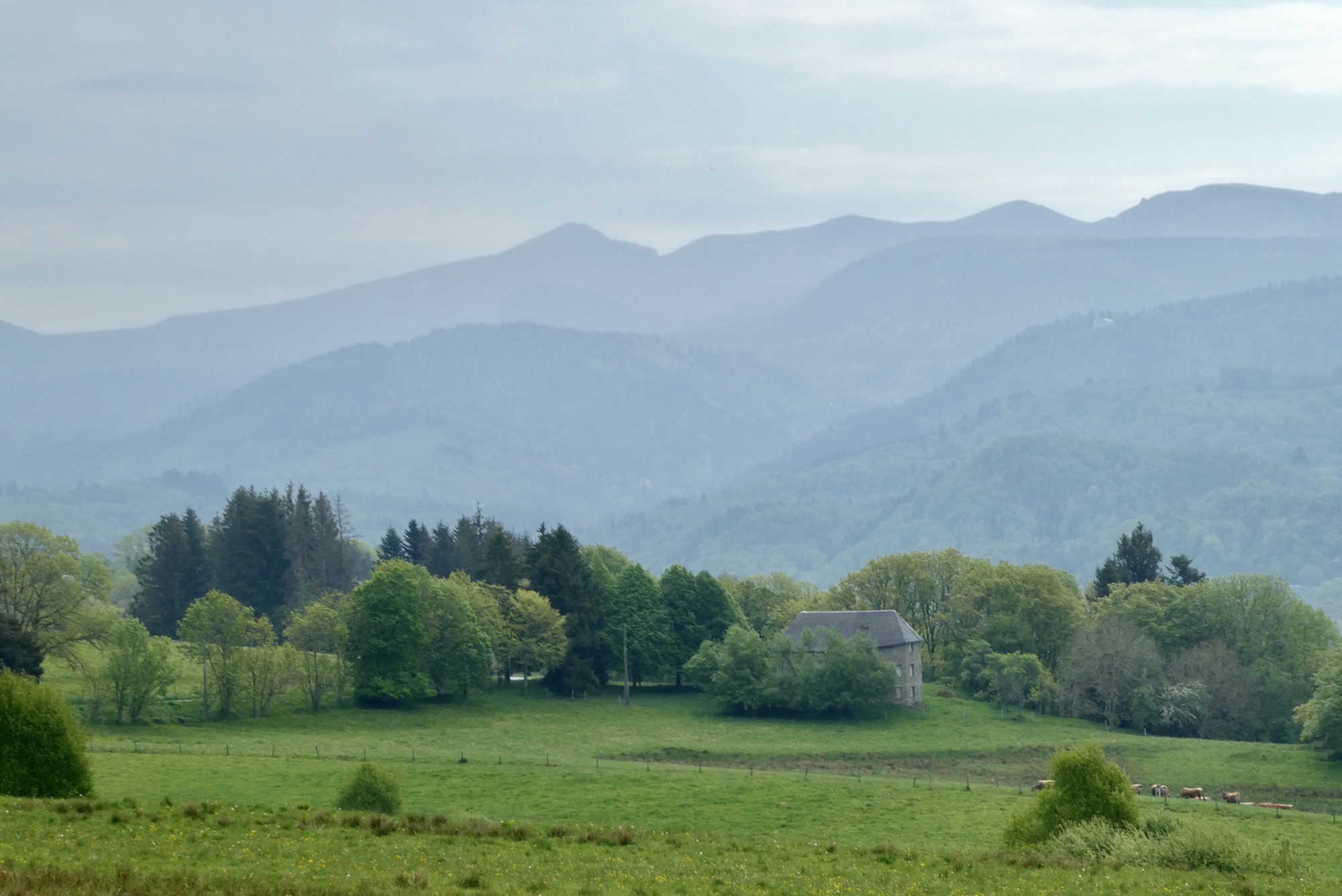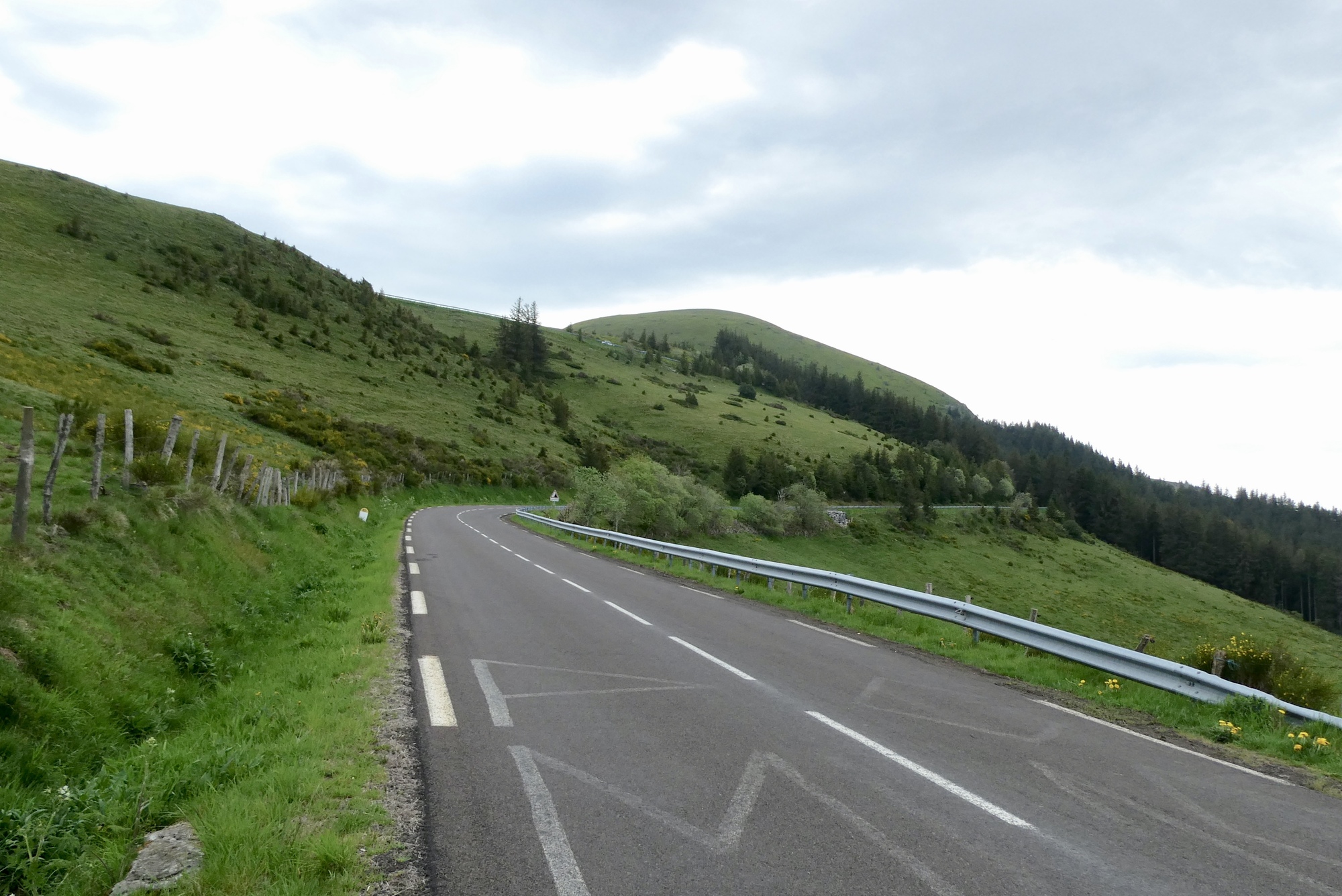 The five mile descent through the valley to Orcival was a sheer delight, both in terms of the ride and the views. It was a low-traffic route taken by the TdF on their up the Col de Guercy and the roads still bore the words of support for the French rider Romaine Bardet. The small town of Orcival was just a dip and bend in the road as I kept heading down to my Logis hotel at a small crossroads in the middle of nowhere. The rain held off until I was about a mile from the hotel - I could have stayed completely dry had I taken few photo stops - but the real downpour did not begin until I was safely inside.