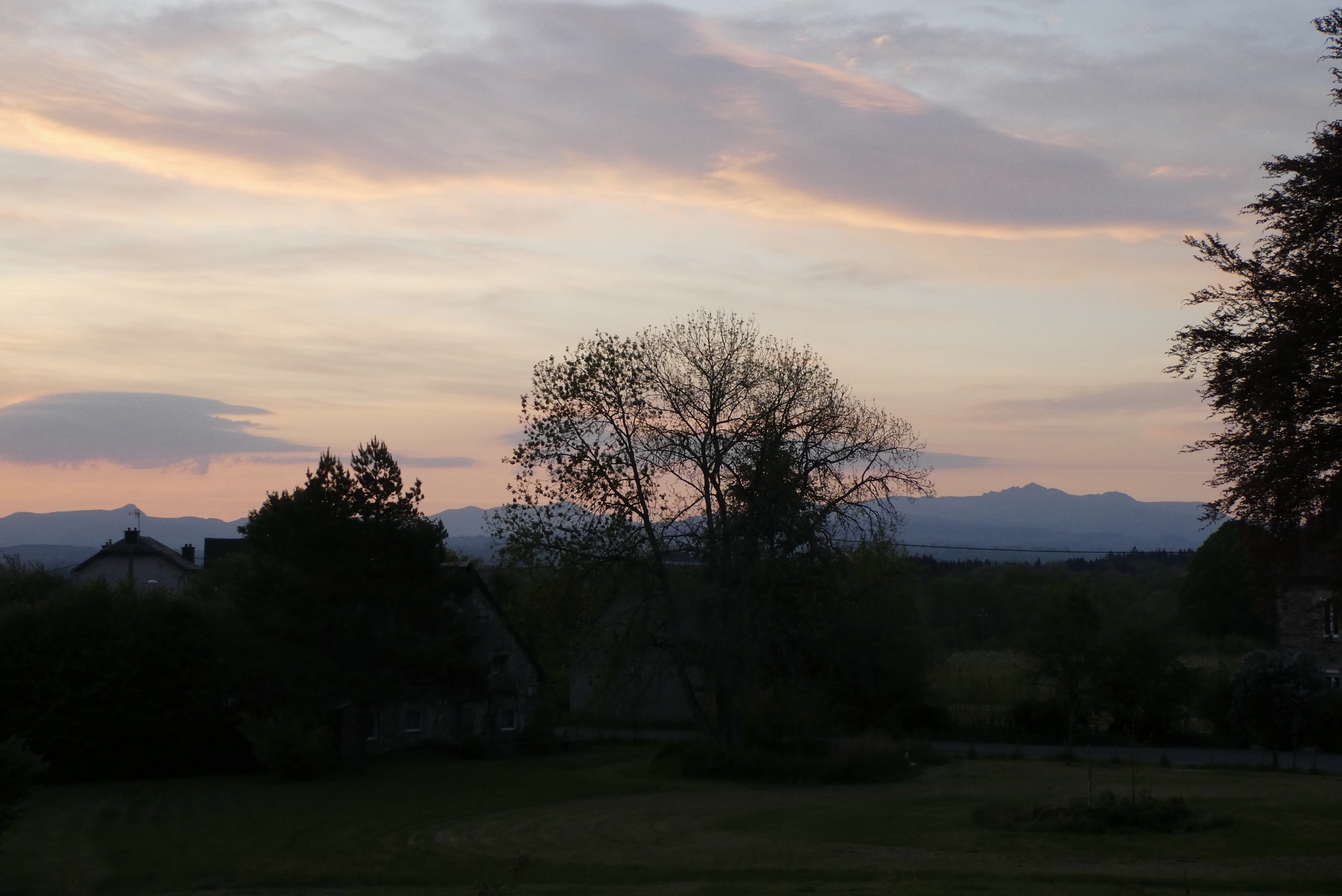 I did get back to sleep, but not for long – rising early enough to catch the sunrise over Puy de Dome and the Massif Central. The weather forecast was for periods of light rain all day, with temperatures in low 60s – not the best forecast for a route filled with gobsmacking scenery. The route started with a series of short climbs and descents that overall gained about 500 ft in elevation before swooping down into Saint-Sauveur-de-Montagut where I stopped for a warming coffee to ease the chill brought on by the light rains that had started just as I entered Parc naturel régional des Volcans d'Auvergne.