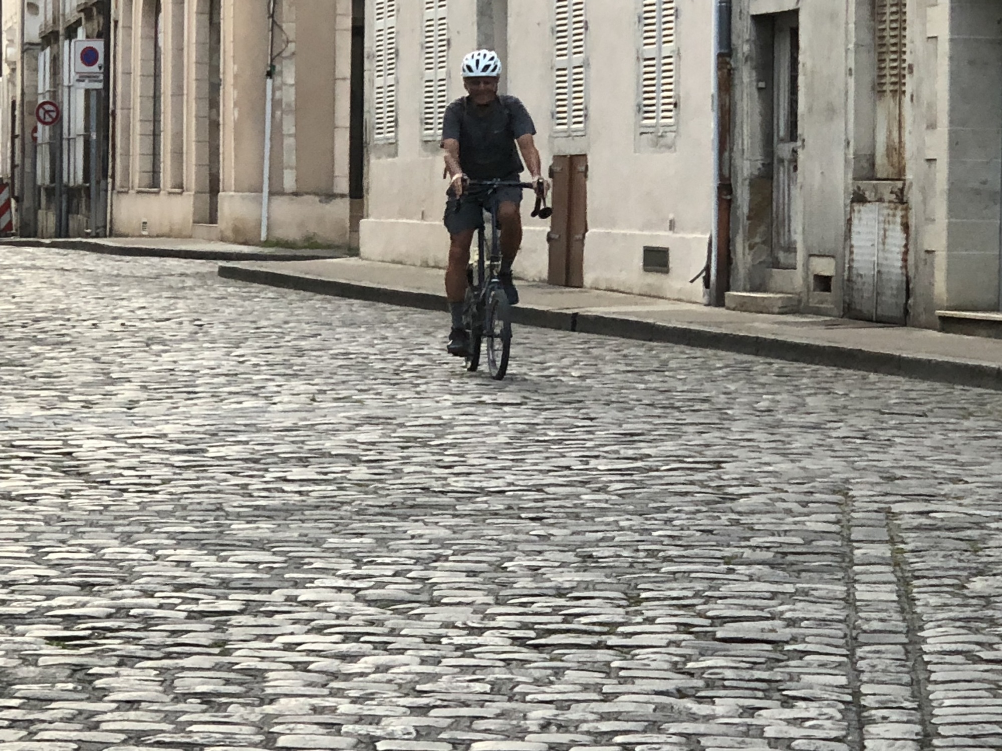 The big event today was lunch with Cycle Blazer Keith Klein and his wife Susan, who live outside of Dijon. But first on the agenda was laundry. I cycled over to Scott and Rachael’s who had offered me the use of their studio washing machine. I located their apartment by name on RWGPS headed over with my goods, wondering why they had booked lodging almost a mile out of town. Well it turns out they didn’t – my directions had led me to an intersection nowhere near their apartment. After a couple of phone calls to get me sorted out, I made my way back to last night’s restaurant where Scott flagged me down and sent me in Rachel’s direction while he headed off for a walk around town. Rachael was waiting just a few blocks away, ready to leave for a morning hike after getting me situated with the washer. But we couldn’t stop yakking – about anything and everything – it was so wonderful to just hang out with a kindred spirit. It was only after the washing was finished and the clothes hung out to dry that Racheal left for her walk and I returned to my Beaune home to catch up on the journal and get ready for lunch.