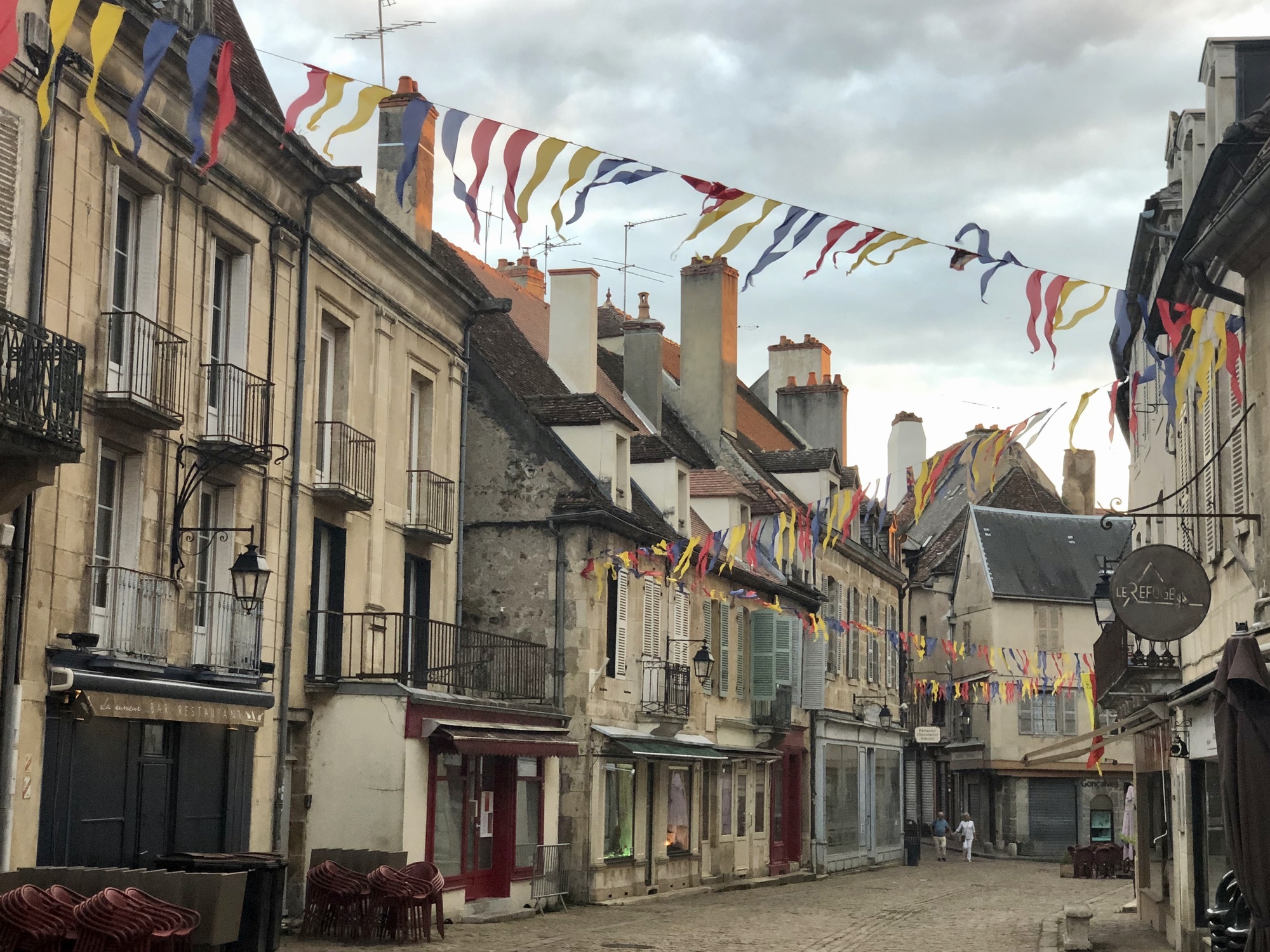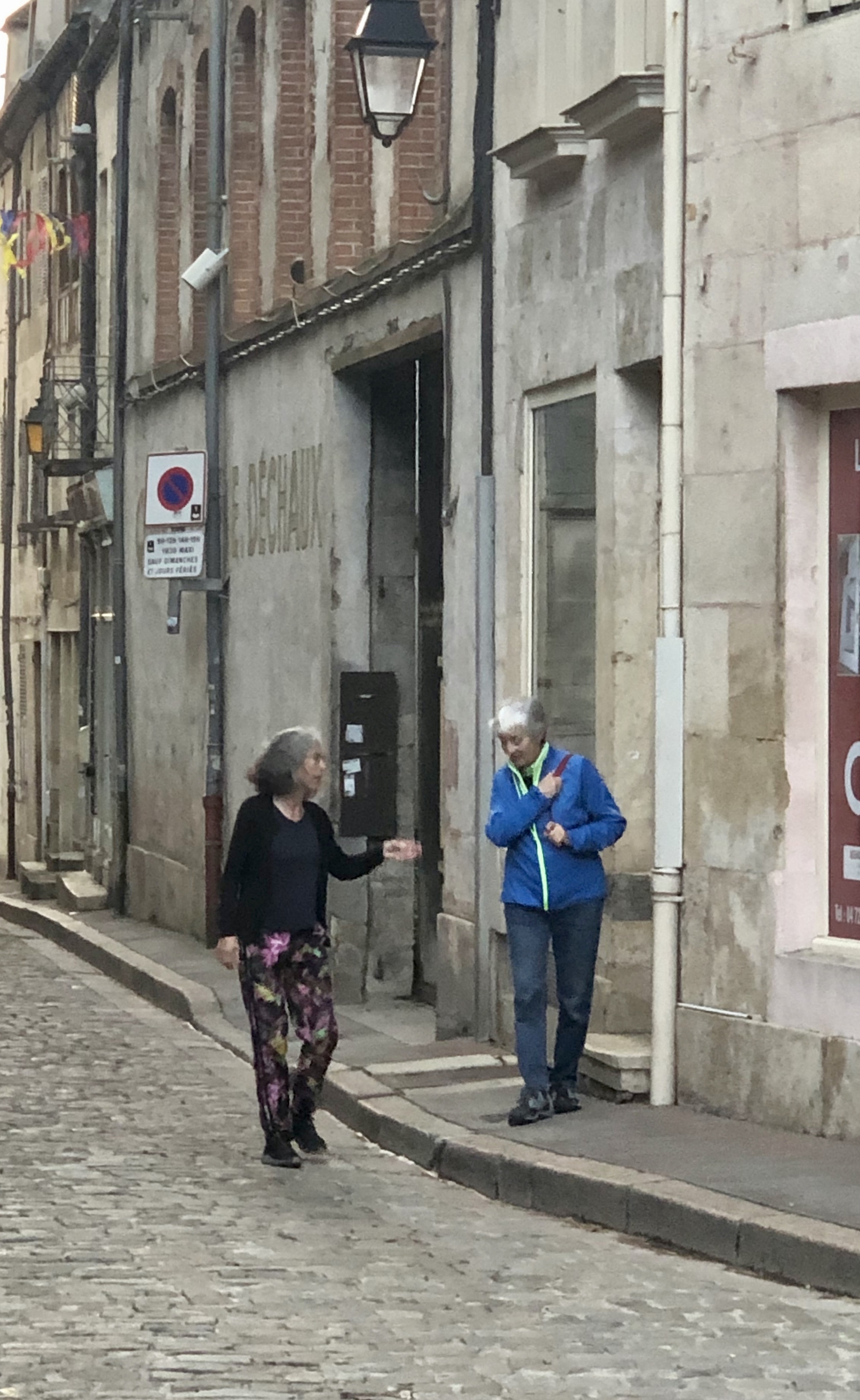 The major discussion at breakfast this morning was the weather. Predictions for the region were for rain showers all day, with severe thunderstorms passing through mid-morning. Scott had designed a short, 22 mile route to Semur-en-Auxois and comparing predictions for the two cities it appeared there might be a window we could catch around eleven and, with luck, ride dry to Semur. Suzanne and Janos, the most impervious to rain among the group, chose to ignore the predictions - they donned their rain gear and were under way shortly after nine am. I decided to wait with Scott and Rachael until our 11 am check-out time, and retreated to my room for more journaling.