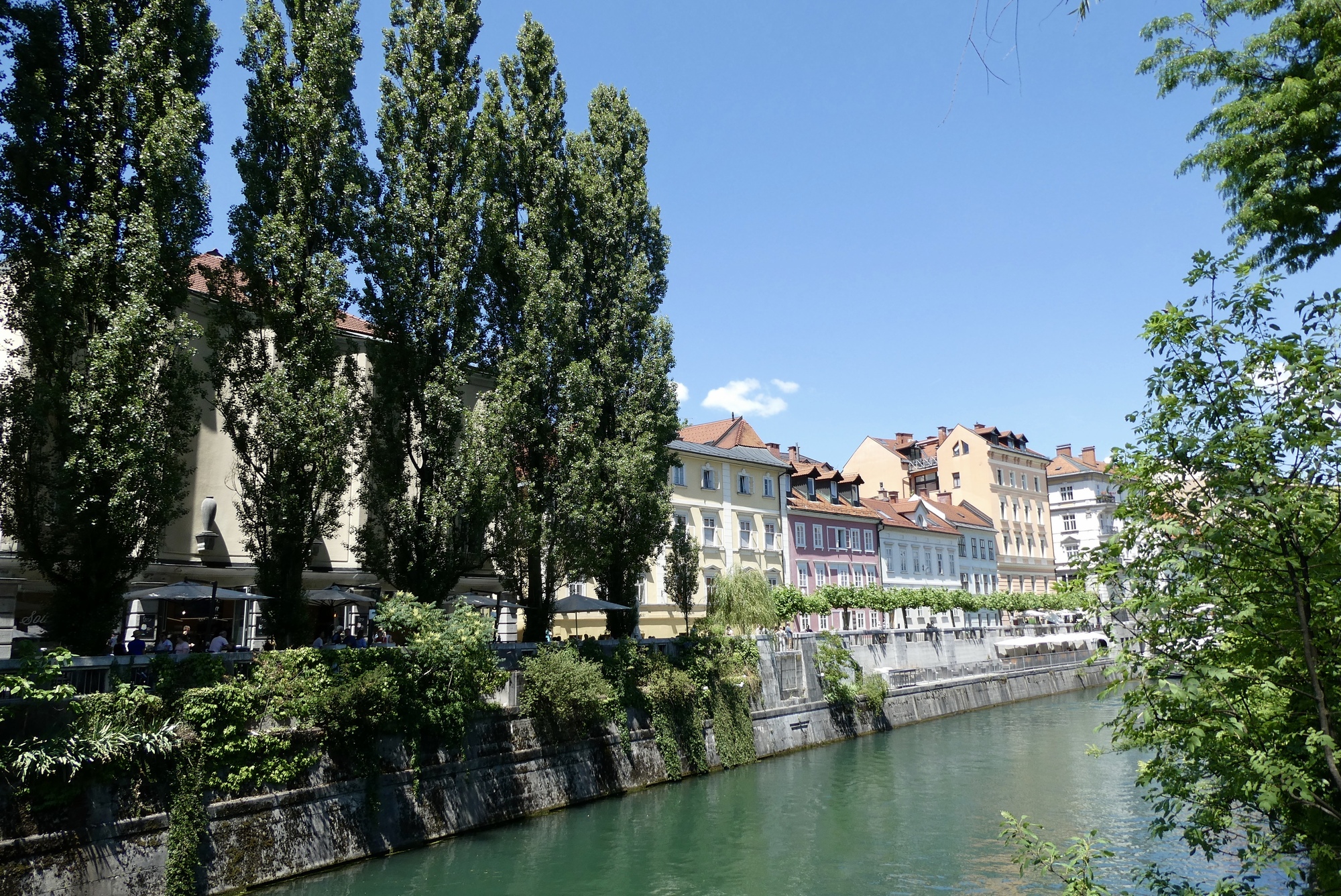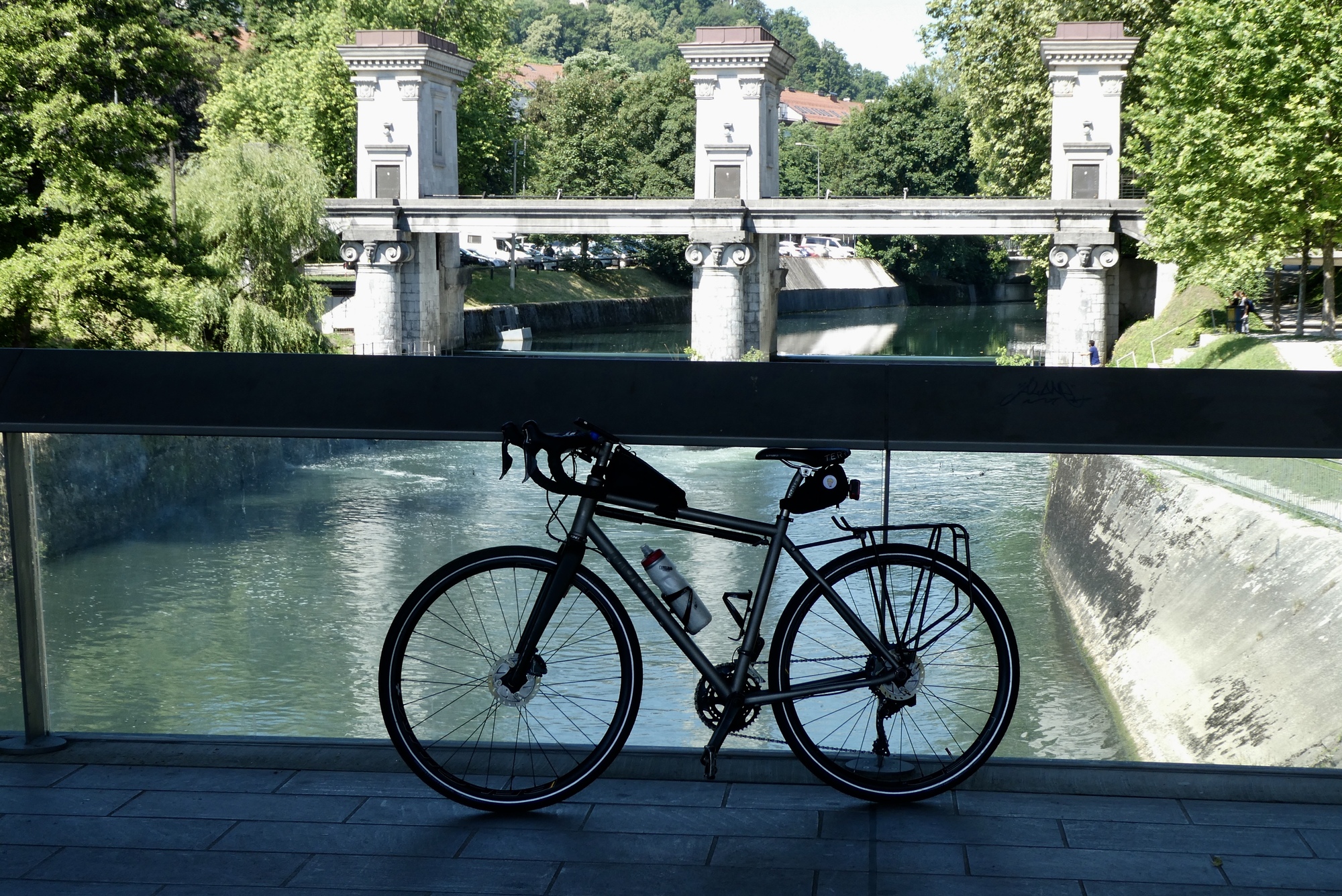 After breakfast, I took Vivien George for a test ride to see the goings on at the Maraton Franja bike race. The city has a wonderful network of bike lanes and it was an easy jaunt to race headquarters at the BTC City shopping area. It turned out, however, that I arrived between race starts – the group of professional riders had already departed while the amateurs were not due to depart for another hour. I moseyed through vendor area, stopping at the tents of the great Slovenian cyclists Tadej Pogačar and Primož Roglič. However, my search for a Slovenia bike jersey was for naught and I decided to move on. My route back to the hotel took me along the Ljubljanica River and over Zmajski Most, or the Dragon Bridge. Vivien George passed her test ride with flying colors, leaving me the afternoon to explore a bit of Ljbuljana on foot.