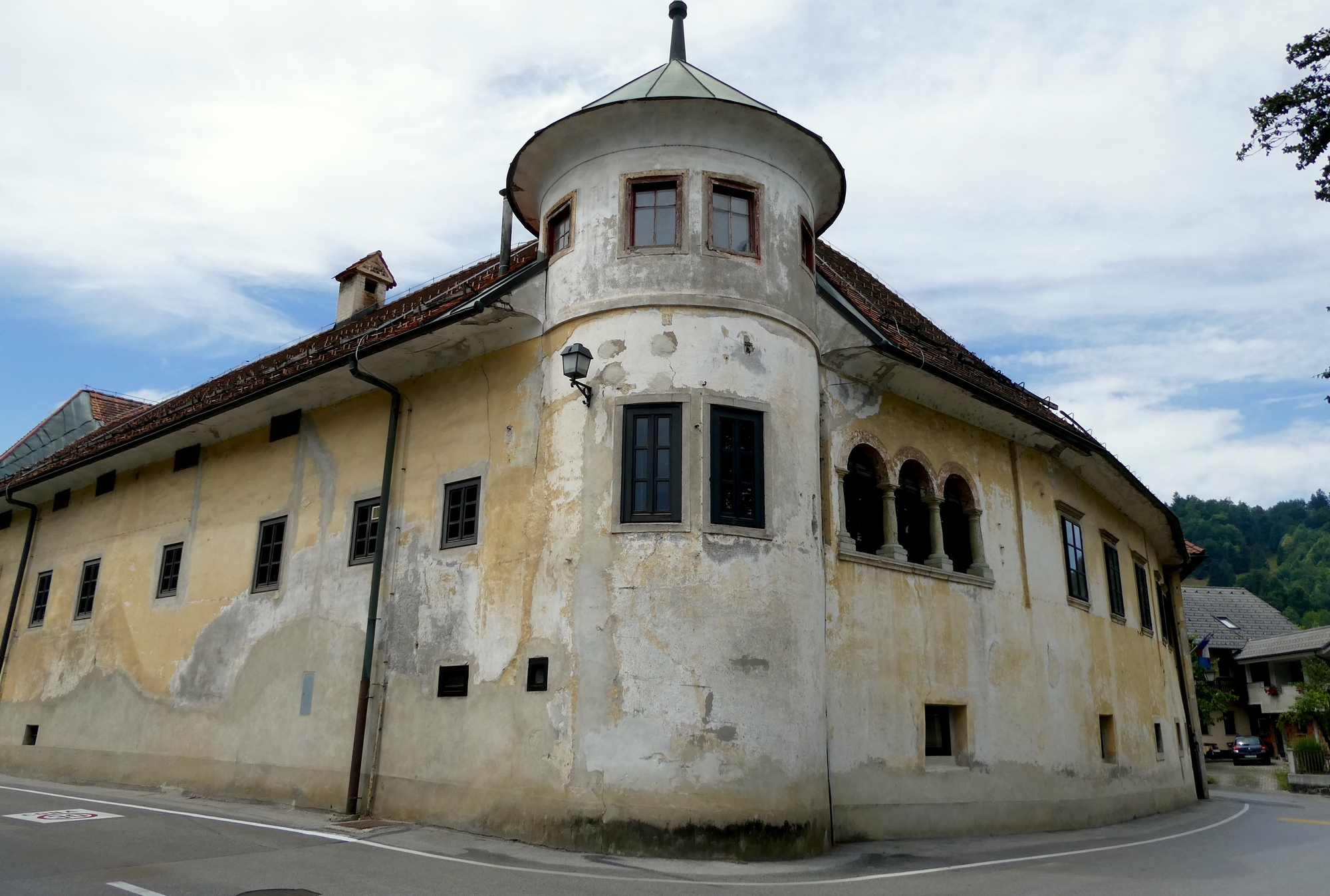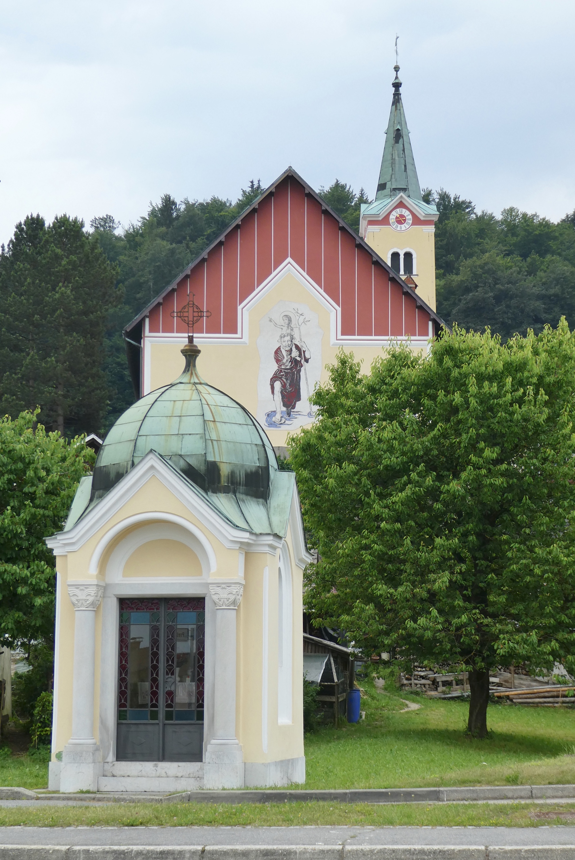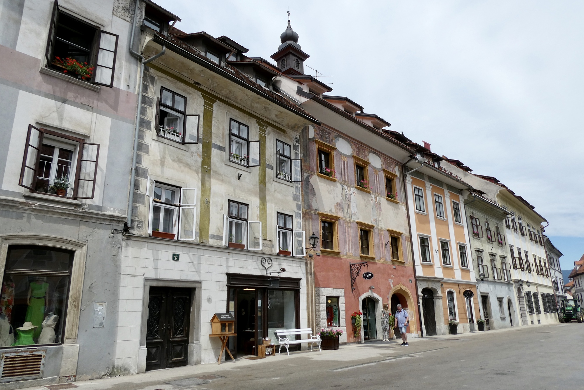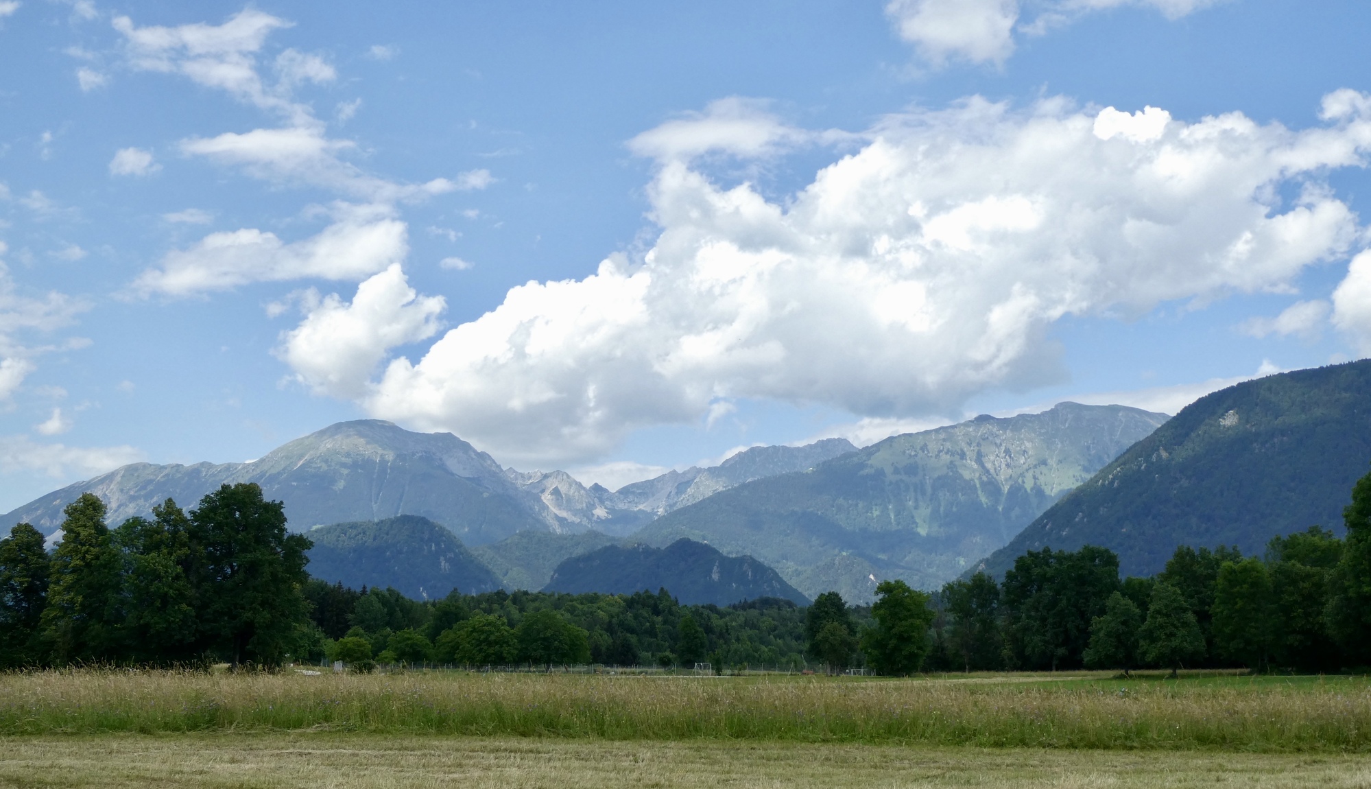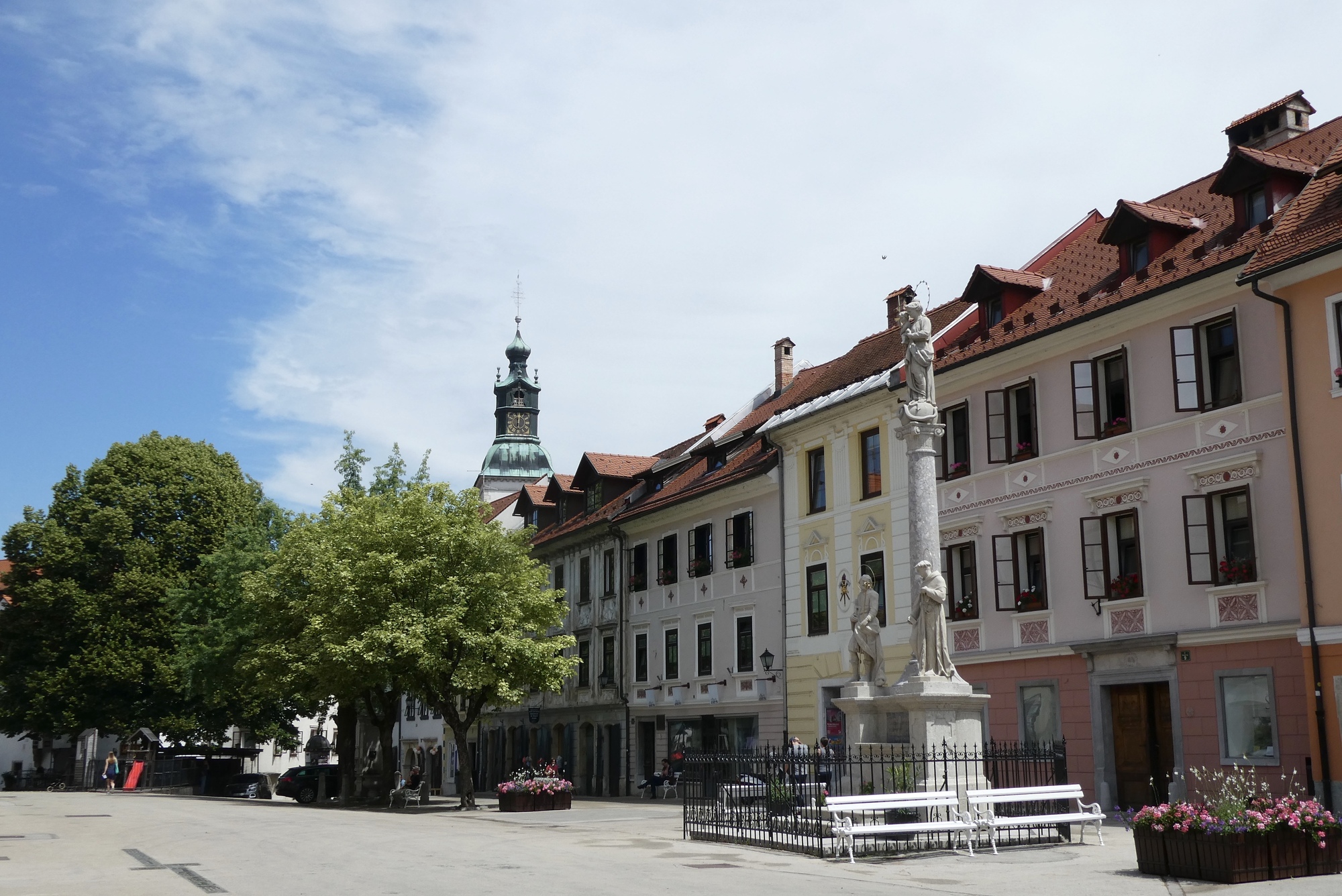 About ten miles into the ride, including the detour, I cleared the sprawl of Ljubljana and was I in the rural outskirts, passing through small farmsteads and villages. The day was cloudy and the Julian peaks were barely visible in the distance. Rain showers were predicted for later this afternoon so I didn’t tarry too much. However, by the time I reached Škofja Loka, blue skies had begun to appear and the sun was trying to poke through. I stopped for coffee and a treat, enjoying the little sunshine and a parade of schoolchildren on a local field trip. After a two-week break, it was great to be back on the road.